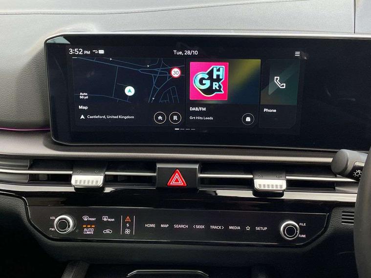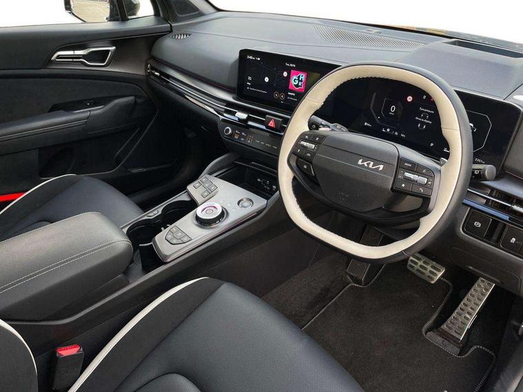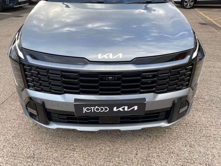 12.3" Driver display screen, 12.3" Touchscreen navigation system, 360 degree around view monitor, Blind spot collision avoidance assist, Blind spot view monitor, Bluetooth connection, Customisable head-up display, Digital key 2.0, Drive mode selector, Driver attention warning, E-call, Emergency stop signalling system, Forward collision avoidance assist 2.0, Front and rear parking sensors, Highway Driving Assist (HDA 2.0), Intelligent speed limit assist, Kia Connect (UVO), Lane Following Assist (LFA), Lane keep assist, Low washer fluid warning, Motor driven power steering, Over the air (OTA) functionality, Parking collision avoidance assist (PCA), Rear cross traffic collision avoidance assist (RCCA), Reversing camera, Safe exit warning (SEW), Smart cruise control with stop and go functionality, Smart power tailgate, Speed limiter, Trip computer, Windscreen washer level indicator, Wireless apple car play/android Auto, Wireless Smartphone charger, DAB Radio with MP3, Front passenger 1x USB-C port, Harman Kardon premium sound system with 8 speakers, Rear passenger 2x USB-C port, Steering wheel mounted audio controls, USB-C port for connection of a media device, Auto dimming rear view mirror, Automatic defog system, Automatic headlight control system, Black and body coloured bumpers, Body colour exterior door handles, Body colour radiator upper garnish and door garnish, Dual LED headlights with adaptive driving beam, Electric front and rear windows with front one touch function, Electrically adjustable/heated/folding door mirrors with LED indicators, Front and rear body colour skid plates, Gloss black door mirrors, Gloss black radiator grille, Gloss black wheel arches, Glossy black roof rails, GT-Line exterior styling, Heated rear window, High beam assist, LED daytime running lights, LED front fog lamps, LED High mounted stop light, LED rear lights, Panoramic sunroof with tilting and sliding function with electric blind, Privacy glass in rear windows and tailgate, Rain sensing wipers, Rear fog lamp, Rear roof spoiler, Rear side wing doors, Rear wiper, Satin finished beltline, Silver window surround, Trailer stability assist, 12V power socket in front and luggage compartment, 3 seat bench in 2nd row, 3 x passenger assist grips, 40/20/40 split folding rear seat, All-round height adjustable headrests, Alloy pedals, Automatic air conditioning, Black headlining, Centre console storage box, Cupholders in rear armrest, Customisable ambient lighting, Door courtesy lamps, Driver and front passenger sunvisors with illuminated vanity mirrors, Drivers seat power lumbar support, Electric adjustable driver seat with memory function, Electric adjustable front passenger seat, Front and rear door storage, Front seat and rear pockets, Gear shift indicator, Glovebox, GT-Line Interior Styling, Heated front and outer rear seats, Heated steering wheel, ISOFIX Child seat top tethers and anchor fixings outer rear seats, Leather steering wheel, Leather/suede upholstery, LED front cabin light, LED interior personal lamp, LED lighting in overhead console, LED rear reading lights, Luggage area LED light, Luggage area load cover, Luggage area parcel shelf, Luggage board, Luggage compartment under floor storage, Luggage net hooks, Manual adjust steering wheel, Metal paint interior door handles, Paddle shift controls, Rear air conditioning, Rear cabin light, Rear coat hooks, Single front passenger seat, Ventilated front seats, Ventilation ducts to rear compartment, Active front headrests, All round 3-point seatbelts, Anti-lock braking system (ABS), Dual front side airbags, Dual horn, Dynamic brake control, Electronic parking brake with auto hold function, Electronic stability control with downhill brake control, Front passenger airbag cut-off switch, Front seatbelt pretensioners + load limiters, Height adjustable front seatbelts, Hill start assist control (HAC), Impact sensing auto door unlocking, Multi collision brake assist, Rear airbags, Rear door child safety locks, Rear seat alert system, Seatbelt reminder warning, Traction control, Twin curtain airbags, Twin front airbags, Tyre pressure monitoring system, Vehicle stability management, Customisable automatic door locking, Customisable automatic door unlocking, Door deadlocks, Engine Start/Stop Button with Smart Entry System, Locking wheel nuts, Smart key with motion sensor, Speed sensitive auto door locking, Thatcham category 2 security alarm and immobiliser, Visible vehicle identification number, 18" GT-Line alloy wheels, Tyre mobility kit,