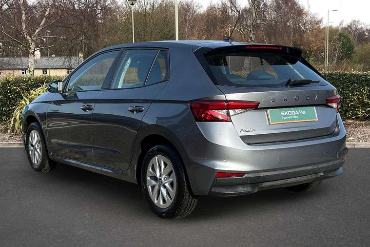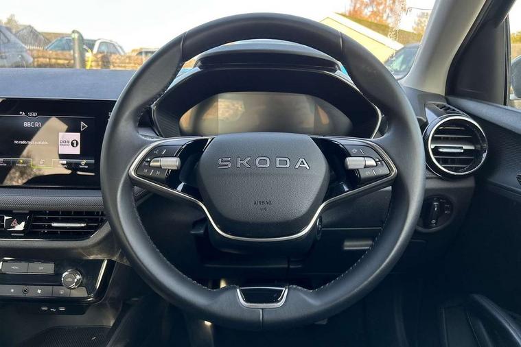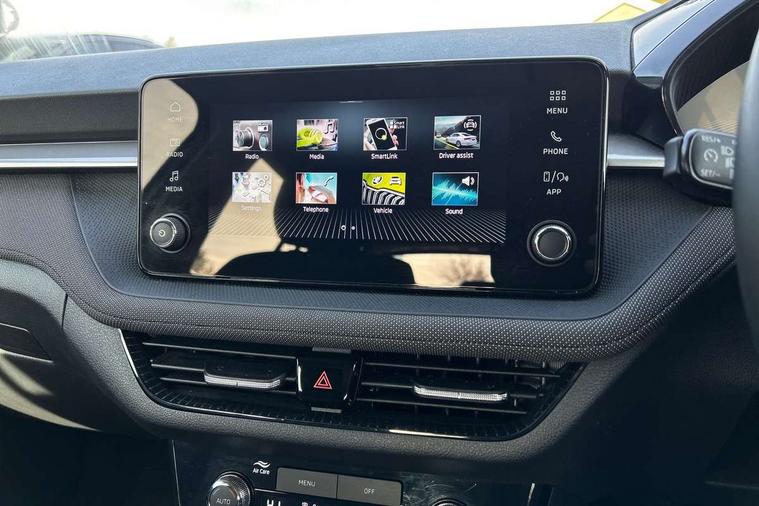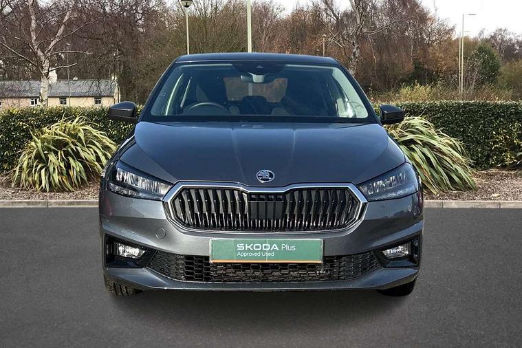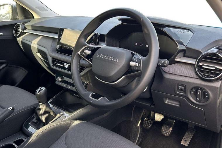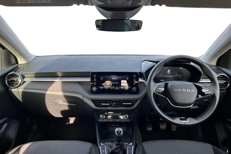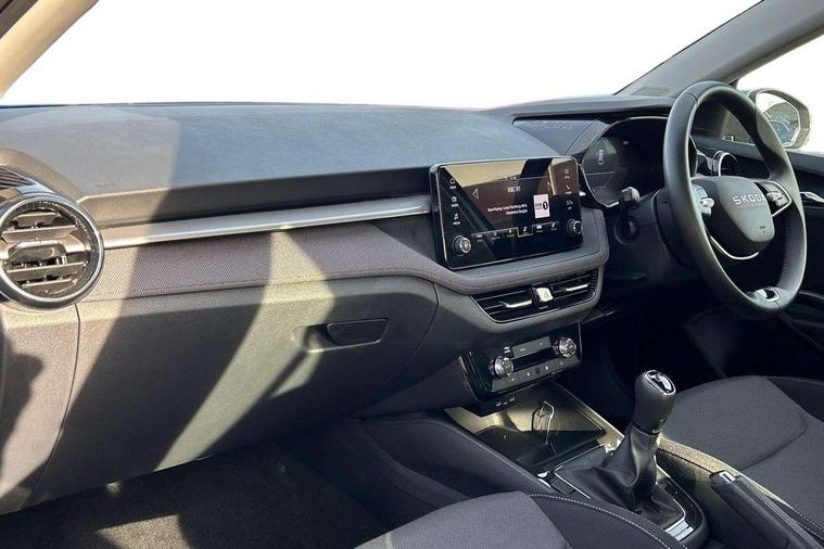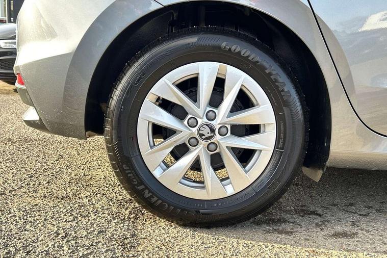 8" Digital instrument display, Advanced driver attention and drowsiness monitor, Bluetooth connection, Electromechanical power steering, Exterior temperature gauge, Service interval indicator, Traffic sign recognition, Wireless SmartLink for Apple CarPlay and Android Auto, 6 Speakers (4 in front and 2 in rear), 8.25" Skoda infotainment touchscreen display, Auxiliary socket for external MP3 player, DAB digital radio reception, Auto dimming rear view mirror, Body colour door mirrors, Body coloured bumpers, Door mirror integrated indicators, Front and rear electric windows, Front window wiper intermittent control, Headlight range control - Automatic, Ice scraper in fuel cap, LED 3rd brake light, LED daytime running lights with coming and leaving home feature, LED rear lights, Rear LED fog light, Rear side wing doors, Rear window wiper with washing nozzles, Roof mounted spoiler, SKODA tailgate lettering in chrome, Unique dark chrome design logo on alloy wheels, 2 reading lights in front and 2 reading lights in rear, 3 rear headrests, Backrest split and folding, Central console with removable cup holder and storage box, Chrome handbrake release button, Dual zone air conditioning with climatronic electronic control, Fabric upholstery, Front centre armrest, Gearshift knob/handle in leather, Grain satin black interior door handles, Hand brake lever handle in leather, Height adjustable front headrests, Height adjustable front seats, Height adjustable steering wheel, ISOFIX and TopTether anchorage points to the outer rear seats, ISOFIX and TopTether on the front passenger seat, Luggage compartment lighting, Manually adjustable lumbar support in front seats, Pollen filter, Rear seat bench unsplit, Single front passenger seat, Skoda lettering on steering wheel, Storm grey headlining, Sun visors with mirror and airbag label on passenger side, Textile floor mats, Ticket holder, Umbrella in drivers door, 3-point height adjustable front seats belts with pretensioner and force limiter, Automatic warning lights in case of crash, Driver and passengers airbag with switch off function, e-Call+, ESC including ABS, MSR, ASR, EDS, HBA and XDS, Front and rear seat belt warning, FRONT ASSIST (AEB City and AEB Inter Urban), Front side airbags, Head airbags, One tone horn, Pedestrian protection, Three rear 3-points safety seat belts with pretensioner and force limiter including stop function for outer rear seat belts, Tyre pressure monitoring system, Anti-theft alarm system including immobiliser, interior monitoring, backup horn, and towing protection, Central locking with radio remote control, interior controls, SAFE function and 2 foldable keys, Black painted air vents, Grain satin black central console cover, Metallic grey upper decorative trim, Satin black door and side trim panel in front, Textile Kota grey lower decorative inserts, Anti-theft wheel bolts protection, Super-low rolling resistance tyres,
