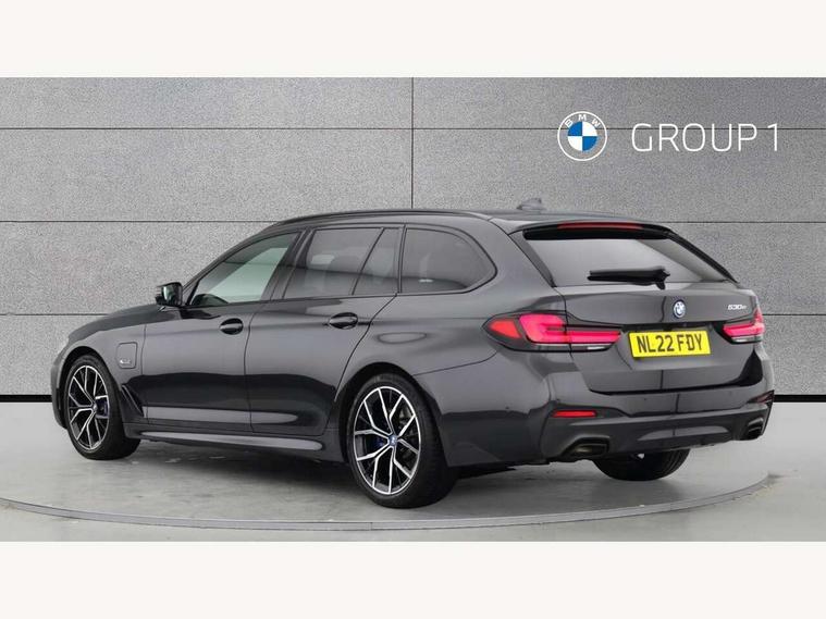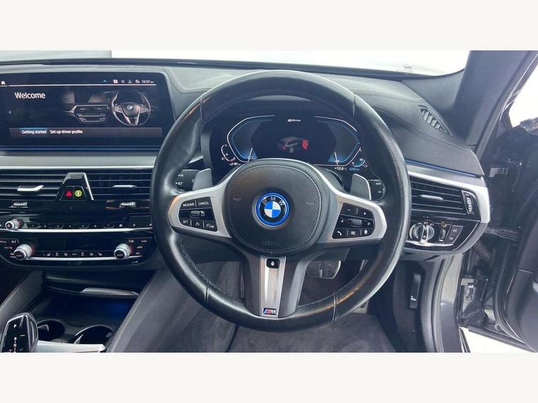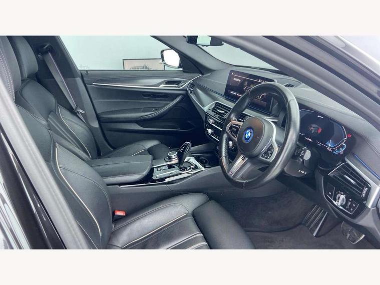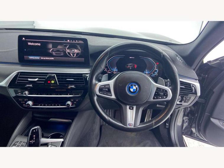 32GB hard disc drive (HDD) memory, Active Guard, BMW Live Cockpit Professional sat nav system with 12.3" instrument display and high resolution control display, BMW Teleservices, Brake pad wear indicator, Cruise control with brake assist, Digital Instrument display with hybrid specific functions, Driving experience switch specific to 530e/530e xDrive, eCall emergency call system, Electric boot lid - electrically opening/closing rear tailgate, Electric Power Steering (EPS) with Servotronic, Electronic display of drivetrain information and battery range and temperature, iDrive controller with shortcut buttons, Intelligent emergency call, Multifunctional instrument panel, Oil sensor for level and grade, On board computer inc. average speed, fuel consumption, liquid crystal Info display, journey computer, outside temperature display, personal profile, On-board diagnosis - OBD, Powered by Operating System 7.0, Service interval indicator, Speed limiting function, Stop/start button, XtraBoost driving mode, 5 metre standard charge cable, AC Fast charge cable, Charging flap in front side panel - left, Drive performance control with ECO PRO comfort + sport mode, eDrive exterior sound, Electric motor, Engine cover with twin turbo designation, Standard Charging cable (Mode 2) for home socket, Steptronic transmission with gearshift paddles on steering wheel, DAB Digital radio, Favourite buttons, "Electrified by i" exterior badging on charging flap, Acoustic glazing, All round anti-corrosion system, Aluminium radiator, Automatic windscreen wipers and automatic headlight, Automatically dimming rear view mirror, BMW Individual high gloss shadow line includes exterior mirror frame, window frame surround, B pillar finish, air breather in high gloss black, BMW roundel with BMW i blue surround on steering wheel, wheel centre caps, tailgate and bonnet, Body colour door handles, Body coloured bumpers, Door handle illumination, Dynamic brake lights with LED technology, Electric front and rear windows with fingertip open/close + anti-trap facility and comfort closing function, Electrically adjustable and heated exterior mirrors includes integrated direction indicators and automatic parking function, Folding exterior side mirror with auto- dimming, Follow me home headlight function, Heated windscreen washer jets, High gloss black active air stream kidney grille, High gloss shadow line roof rails, Independent opening for tailgate window, LED daytime running lights, LED third brake light, M designation on front side panels, left and right in chrome, Rear side wing doors, Rear wiper, Trapezoidal visible exhaust tailpipes, 12V power socket in front and rear, 3 seat bench in 2nd row, 40/20/40 split folding rear seats with additional mechanism in luggage compartment, Anthracite headlining, Armrest - front and rear integrated door trim, centre console includes storage compartment, rear centre includes 2 cupholders, Child seat ISOFIX attachment with rear outer seats includes top tether, Cup holders (2 front and 2 rear), Front and rear footwell lights, Front reading lights, Height and length adjustable steering column and activation via lateral lever on the steering column, Illuminated charging socket with visual display of charge status, Lockable glove compartment with light, M door sill finishers, M specific pedals, M specific velour floor mats, Multifunction controls for leather steering wheel, Rear headrests, Retractable luggage compartment dividing net, Single front passenger seat, Stationary cooling, Three spoke sport M leather steering wheel, Ambient lighting pack - 5 Series, Connected package professional - 5 Series, M Aerodynamic pack - 5 Series, Acoustic protection for pedestrians, Airbags - driver/front passenger, rear and side, first and second row seats head airbags, front passenger seat airbag deactivation, Anti-lock braking system (ABS), Automatic Stability Control (ASC), Brake assist function, Brake energy regeneration, Cornering brake control (CBC), Crash sensor activating central locking release, hazard warning lights, fuel cut off and interior lighting, Deformation zones - front and rear with door reinforcements and bumpers up to 2.5 mph, DSC - Dynamic Stability Control, Dynamic brake control, Dynamic Traction Control - DTC, Electromechanical parking brake with automatic drive away release and auto hold function, Electronic brake force distribution, Engine drag torque control, Front and rear brake discs with interior ventilation, Front head restraints with anti-whiplash, Hill start assist, M Sport brakes in high gloss blue painted brake callipers with M designation, Mechanical child proof lock on rear doors, Rear door child safety locks, Side impact protection, Three point seat belts for all four seats, Two tone horn, Tyre pressure indicator, Warning triangle and first aid kit, Alarm system (Thatcham 1) with remote control and electronic engine immobiliser, Locking wheel bolts, Tyre repair kit,