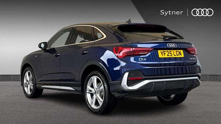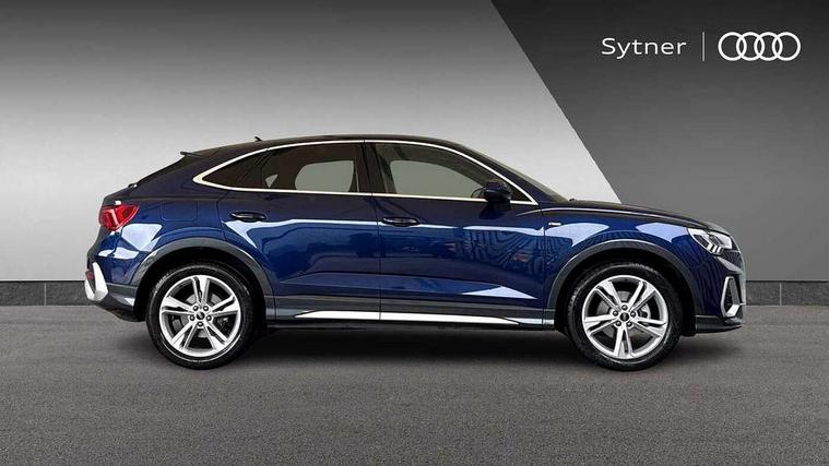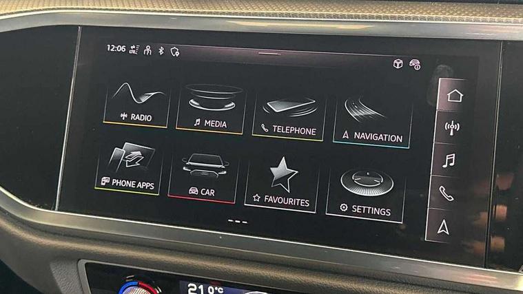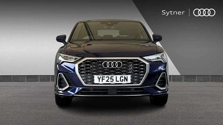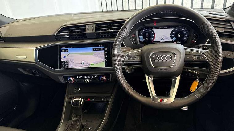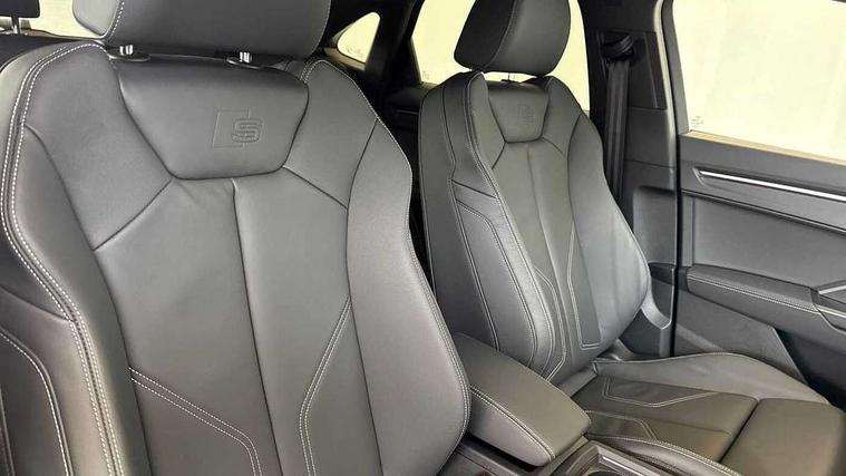 Audi connect safety and service, Audi drive select, Audi lane departure warning, Audi Virtual Cockpit - 10.25" display, Bluetooth interface, Camera based traffic sign recognition, Distraction and Fatigue warning, Legal emergency call, MMI Navigation Plus with high resolution 10.1 inch touchscreen colour display, Power operated tailgate, Progressive steering, Service interval indicator, Smartphone interface includes wireless Apple carplay/Android Auto, Start stop system with recuperation, Voice control system with natural language interaction, Sports suspension, 2 USB-C ports with charge and data functions, 6 passive loudspeakers, DAB digital radio module, Acoustic windscreen, Aluminium window trim, Auto dimming door mirrors, Auto dimming frameless rear view mirror, Diffuser grille in grained matt black, Diffuser trim in selenite silver, Electrically folding, adjustable and heated door mirrors with integrated LED side indicators and kerb view function for passenger side, Front and rear electric windows, Front fog lights, Front side air inlets in selenite silver, Front underbody protection in manhattan grey paint finish, Grille surround in aluminium silver matt, High gloss black finish B and C pillars, LED Dynamic rear indicators, LED headlights with LED daytime running lights, LED rear lights, LED third brake light, Privacy glass dark tinted rear and rear-side windows (from B-pillar backwards), Radiator grille in anthracite black with inlay in matt aluminium silver, Rain and light sensors, Rear side wing doors, Rear underbody protection in matt black, Rear wiper, S line badges on front wings, S line front and rear bumpers and side skirts in contrasting Manhattan grey paint finish, Side skirt insert in matt Platinium grey, Variable front intermittent wipers, 12V socket in rear centre console, 3 seat bench in 2nd row, 3 spoke leather multifunction steering wheel features S badging and grips in perforated leather with contrast stitching, 40:20:40 folding with manual adjustment for 60:40 forwards/backwards position and backrest angle, Adjustable rear seat bench/backrest with centre armrest and cupholder, Black cloth headlining, Dual zone electronic climate control, Electric lumbar support, Front and rear black floor mats with contrast stitching, Front and rear headrests, Front centre armrest, Height and reach adjustable steering wheel, Illuminated door sill trims with S logo, ISOFIX child seat mounting for front passenger with airbag deactivation and outer rear seat including top tether attachment point for outer rear seats, Luggage compartment sill protection in stainless steel, Manual front seats with height adjustment, Perforated leather gearknob, Single front passenger seat, Stainless steel pedals, Twin leather upholstery with front sport seats + S embossing, Non smoking pack - Q3, 3x3 point rear seatbelts, 6 airbags - Driver, front passenger, curtain and side windows, Audi pre-sense front with pedestrain and cyclist recognition, Electrically operated child locks on rear doors, Electromechanical parking brake, Electronic stabilisation control including ABS, ASR and EDL, Front seatbelt reminder, Hill descent control, Hill hold assist, Pre sense basic, Seatbelt monitoring, Tyre pressure warning, Warning triangle and first aid kit, Anti theft wheel bolts, Immobiliser, Remote central locking, Thatcham approved category 1 anti theft alarm, Aluminium look interior elements, Dark matt brushed aluminium inlay, Detail dashboard around MMI touch colour display in glass look, black with surround in aluminium look, Leatherette door armrest,