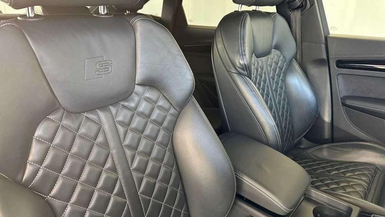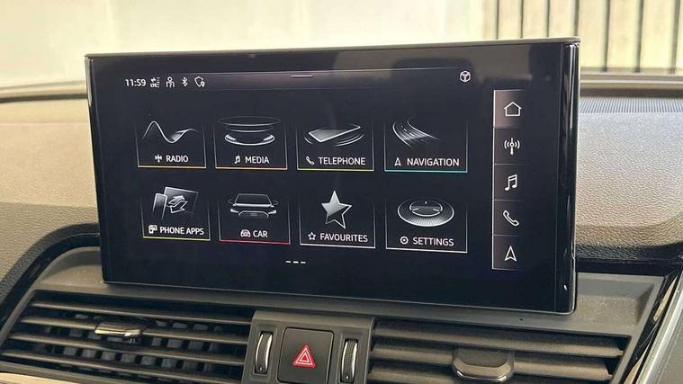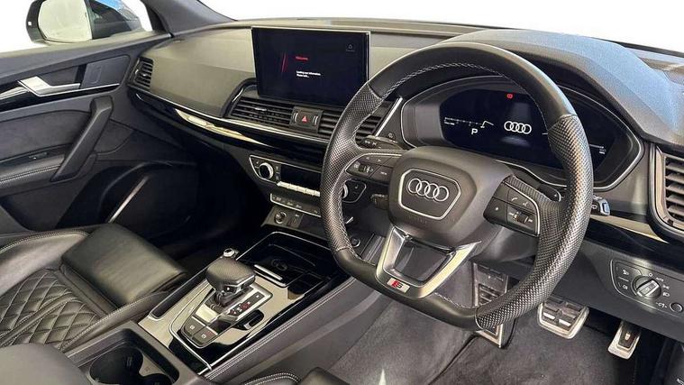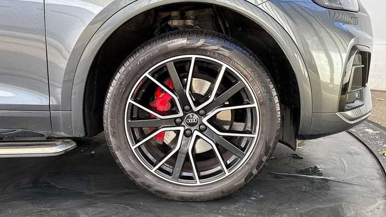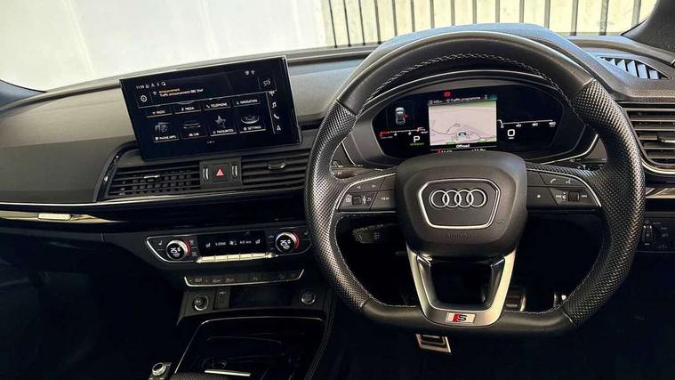 Audi connect safety and service (e-call), Audi connect with Amazon Alexa Integration, Audi drive select, Audi virtual cockpit plus with 12.3" screen and three different layout designs, Audi wireless smartphone interface, Automatic start-stop system with coasting functionality and efficiency programme, Bluetooth interface, Electro - mechanical power assisted steering, MMI navigation plus with 10.1" touch screen, Power tailgate, Reversing camera, Service interval indicator, Voice control system with Audi hotword activation "Hey Audi", Diesel particulate filter, Quattro on demand, S line sports suspension, 2 x USB charging port with aux input socket, DAB Digital radio, Acoustic windscreen, Audi beam with Audi rings logo, Audi matrix LED headlights with dynamic front and rear indicators, Audi rings at front and rear in black, Audi rings decal on rear doors, Auto dimming door mirrors, Auto dimming rear view mirror, Automatic headlights and windscreen wipers, Black door mirrors, Black roof rails, Body colour underbody protection, Chrome plated exhaust trims, Daytime running lights, Door sills in Selenite silver, Electric adjustable/heated/folding door mirrors, Front air inlet surrounds in aluminium, Front and rear electric windows, Headlight washers, High gloss black B pillar trims and triangular rear door trim, High level LED brake light, Rear chrome trim strip below lights, Rear privacy glass and rear side windows, Rear side wing doors, Rear spoiler, Rear wiper, Roof bars, Without model and engine badging at rear, 3 rear headrests, 4 way electric lumbar support for driver and front passenger, 40:20:40 split folding 3 rear bench seat in 2nd row with rear centre armrest, Black cloth headlining, Comfort front centre armrest, Contrast stitching on seats, steering wheel and gear lever gaiter, Deluxe 3 zone electronic climate control, Electrically adjustable front seats, Fine Nappa leather upholstery with diamond pattern contrast stitching + front sport seats with S embossed logo, Front head restraints, Front/rear floor mats, Gear lever in black leather, Heated front seats, Height/reach adjustable steering column, Illuminated door sill trims with S logo, ISOFIX child seat mounting and top tether, Rear seat bench plus, Removable luggage compartment floor, Single front passenger seat, Stainless steel pedals, Sunvisors with vanity mirrors, Trunk roller cover, Artificial leather pack - Q5, Black styling package - Q5 Edition 1, Extended LED Interior multi coloured Lighting Pack - Q5, 3 point seatbelts on all seats, 6 airbags - Driver, front passenger, curtain and side airbags, Electrically operated child locks on rear doors, Electromechanical parking brake, Electronic stabilisation control including ABS, ASR and EDL, Front and rear brake calipers painted in red, Front passenger airbag deactivation, Hill descent control, Hill hold assist, Multi collision brake assist, Pop-up bonnet for pedestrian protection, Pre sense city, Seat belt force limiter, Seatbelt monitoring, Tyre pressure warning, Warning triangle and first aid kit, Anti theft alarm, Anti-theft wheel bolts, Keyless Go access/ignition system, Remote central locking, Piano black finish inlay,