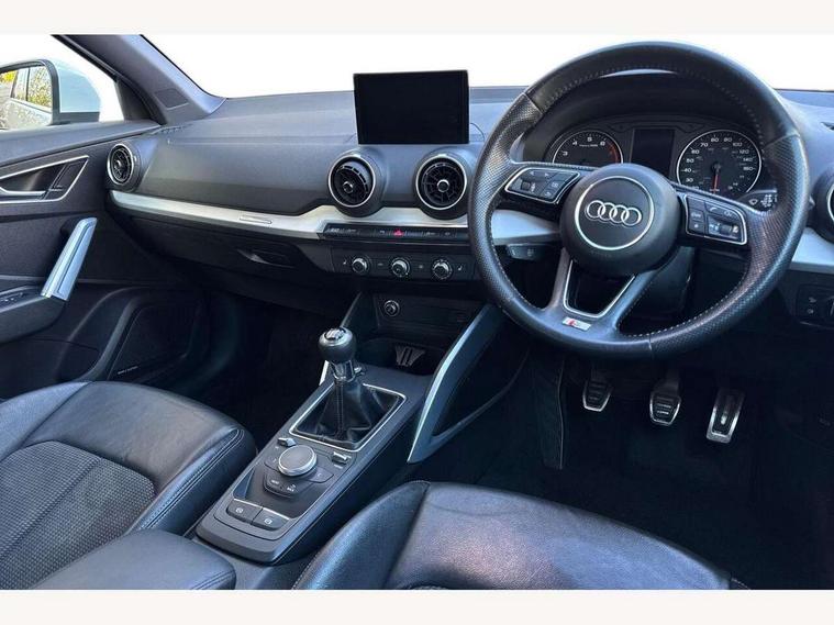 Audi drive select, Audi smartphone interface, Automatic start/stop system with recuperation, Bluetooth interface includes bluetooth audio streaming, MMI - Multi Media Interface control system, MMI SD card Navigation, Power operated tailgate, Progressive steering, Service interval indicator, Voice control system, Audi music interface - apple iPod, apple iPhone, USB storage media, compatible MP3 players, 2 x USB charging points and 1 x Aux-in, CD Drive, DAB digital radio reception, MMI radio plus with 7" colour MMI screen and MMI controller, Black window trims, Chrome exhaust tailpipe, Electrically adjustable and heated door mirrors with integrated LED side indicators, Front and rear electric windows, Front underbody guard and rear diffuser trim in selenite silver, Front windscreen with grey tinted sunband, Headlight washers, Interior mirror, LED headlights with LED rear lights + dynamic rear indicators, LED indicator lights, Rain and light sensors, Rear wiper, S Line badges on the front wings, S Line body styling - front and rear bumpers, side skirts, radiator grille, rear diffuser insert and front air intakes, Black cloth headlining, Floor mats with contrast stitching, Front centre armrest, Front headrests, Front sport seats with S embossed logo, Height/reach adjust steering wheel, Illuminated door sill trims with S logo, ISOFIX child seat mounting with top tether and electrically operated child lock, Manual seat adjustment including seat height adjustment for front seats, Stainless steel pedals, Storage compartments - Glovebox, cupholder compartment in centre console, storage compartment in rear centre console, front and rear door pockets, Three rear headrests, Connectivity pack - Q2, Non smoking pack - Q2, 3x3 point rear seatbelts, 6 airbags - Front, curtain and front side airbags, Electromechanical parking brake, Electronic stabilisation control including ABS, ASR and EDL, Extended and proactive pedestrian protection, Hill hold assist, Multi collision brake assist, Pre-sense front with pedestrian recognition, Seatbelt monitoring, Tyre pressure warning light, Warning triangle and first aid kit, Anti theft alarm, Anti theft wheel bolts, Central locking system with remote control key, Aluminium interior element, Matt brushed aluminium fascia and door trim inlays,