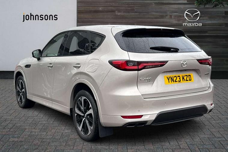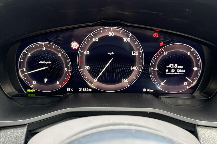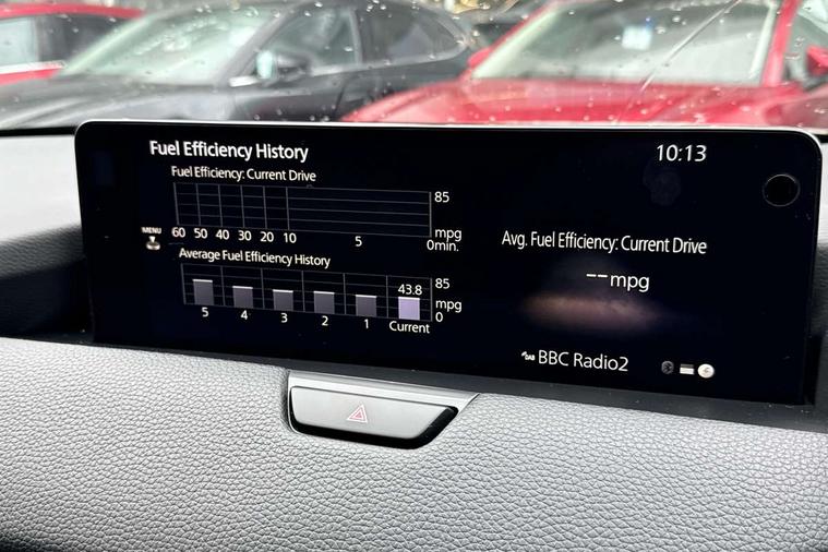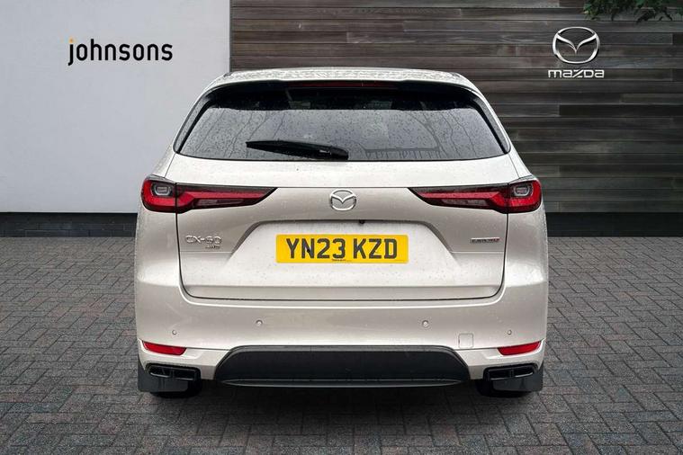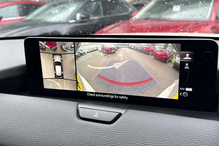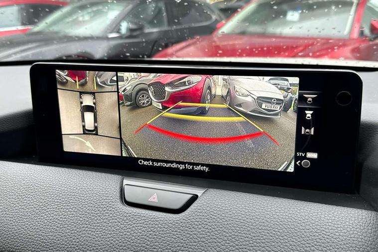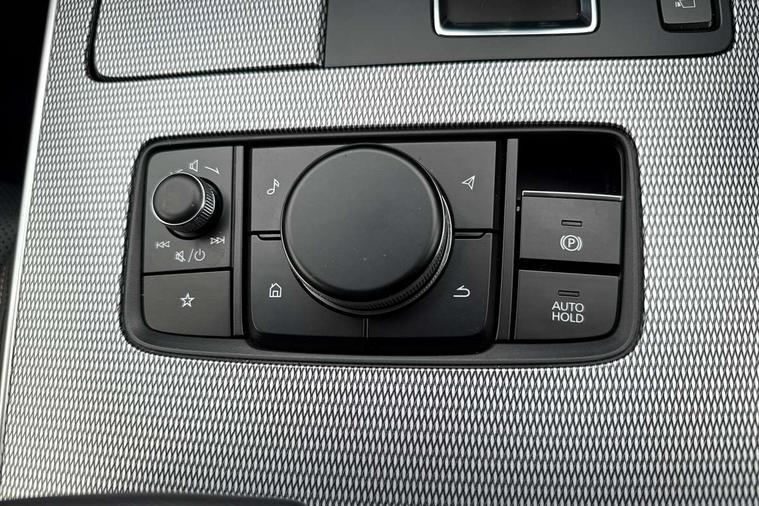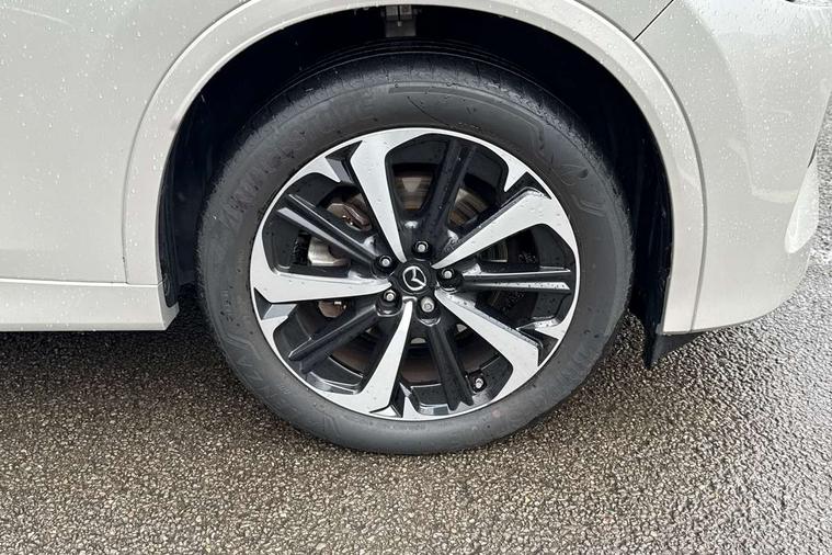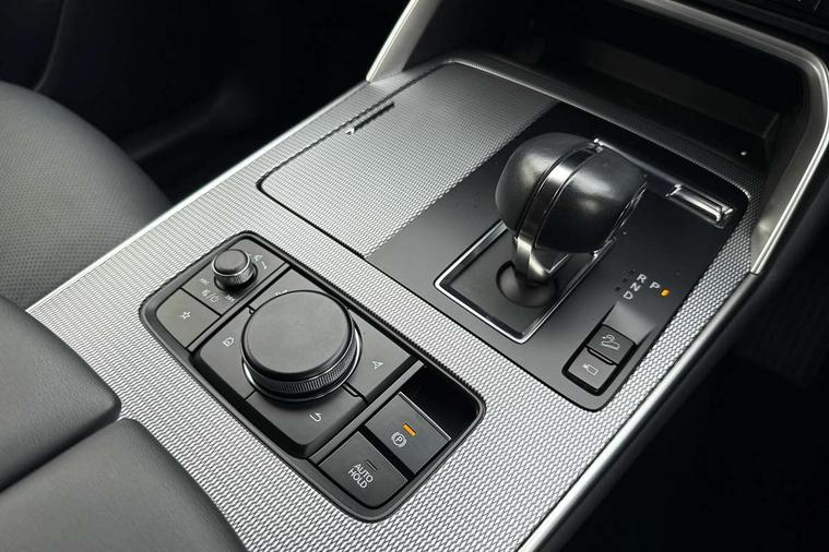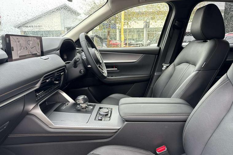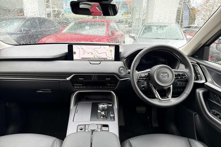 Emergency lane keeping with blind spot assist, Low washer fluid warning light, 12.3" Colour entertainment centre display with mazda connect infotainment, 12.3" TFT Colour display, Adjustable speed limiter, Black faux leather vinyl dashboard with titanium piping, Blind spot assist, Blind spot monitoring with rear cross traffic alert, Cruise control, Distance alert system, Driver attention alert system, Driver Monitoring with personal identification, E-call with GPS, Emergency stop signalling system, Exit warning function, Front and rear parking sensors, Ingress / Egress support and automatic driver position guide, Integrated bluetooth, Intelligent speed assist, Kinematic posture control, Lane keep assist system (LAS) with Lane departure warning system (LDWS), Mazda Driver Personalisation System, Mazda Navigation System with european mapping, Multimedia Commander, PAS, Power lift gate with handsfree function, Power start/stop button, Reversing camera with static guide lines, Speed alert, Traffic sign recognition, Trip computer, Windscreen projected colour active driving display, Wireless apple car play/android Auto, Internal Combustion Engine Sound Emulator, Mi-Drive (Normal, Sport, Off-road, Towing and EV mode), Paddle shift, AM/FM and DAB radio, Bose surround sound system with 12 Speaker, Bose center point, Bass match and audio pilot technology, Steering wheel mounted audio/bluetooth controls, USB-C inputs (x2 front and x2 rear), Auto dimming driver's door mirror, Automatic headlight levelling, B-pillar and C-pillar garnishes in gloss black finish, Body colour roof spoiler, Body coloured bumpers, Body coloured wheel arch and side mouldings, Coming/leaving home lighting function, Dark plated headlight lense, Dark plating finish signature wing in front grille, Dark plating front side garnish, Differentiated front bumper design to accentuate the intake, Dusk sensing headlights, Electric front/rear windows with one touch auto up/down, Electrically adjustable, heated auto power folding door mirrors with memory, Frameless auto dimming interior rear view mirror, Front kodo turn signal, Front wiper de-icer, Gloss black door mirrors, Headlight washers, High beam control, Honeycomb radiator grille in gloss black, LED 3rd brake light, LED headlamps, LED rear signature combination lamps, Rain sensing front wipers with adjustable sensitivity and speed, Rear side wing doors, Rear wiper, Roof pillars and roof lining finished in lighter colour to soften the overall look, Signature LED daytime running lights, Silver decoration panel, 12v power outlet - front, 12V socket in boot, 3 height adjustable rear headrests, 3 seat bench in 2nd row, 40/20/40 split folding rear seats with quick levers in the boot, Ambient lighting, Cargo net, Chrome interior trim accents with steering wheel centre bezel, surround of engine start / stop button and glove box handle, Door panel trim vinyl leather with armrest, Driver and front passenger two rear grab handles with rear coat hooks, Driver and front passenger visors with covered vanity mirror and driver ticket holder, Driver seat electric tilt, slide, recline, height and lumbar adjustment, Driver, front passenger and two rear door pockets, Driver/passenger front seatback pockets, Dual zone climate control air conditioning with rear air vents, Electric telescopic and tilt adjustment steering wheel, Folding rear centre armrest with two cup holders, Front centre storage with two cupholders, Front down lamp with front and rear foot lamps, Front headrests, Front passengers seat electric slide, recline, height and lumbar adjustment, Front seat ventilation with 3-stage setting, Glovebox illumination, Heated front seats with 3 stage setting, Heated leather wrapped steering wheel, Heated outer rear seats with 3-stage setting, ISOFIX child seat anchorage points attached on outer rear seats, Karakuri tonneau cover, Leather upholstery, Leather wrapped gear shift knob, LED illumination luggage compartment, Practical and spacious front centre armrest storage, Rear seat recline function for rear passenger comfort, Remote fold down rear seats, Remote pre-heating/cooling, Roof mounted sunglasses holder, Single front passenger seat, 3 point ELR front seat belts x2 with pretensioners, 3 point ELR rear seat belts, Active bonnet, Anti-lock braking system (ABS), Drivers knee airbag, DSC - Dynamic Stability Control, Electronic parking brake with auto disengage function and auto hold function, Front and rear curtain airbags, Front dual stage driver and single stage front passenger airbags, Front passenger airbag cut-off switch, Front side airbags, Front smart city brake support, Hill decent control, Hill launch assist, Manual rear child locks, Seatbelt reminder for driver/front passenger and rear seats, Traction control, Tyre pressure monitoring system (TPMS), Remote central locking with deadlocking and automatic door lock when driving, Smart keyless entry, Thatcham accredited alarm and immobiliser, Black centre console panel, Dashboard panel - Black Vinyl, 20" Black metallic alloy wheels, Emergency tyre repair kit,