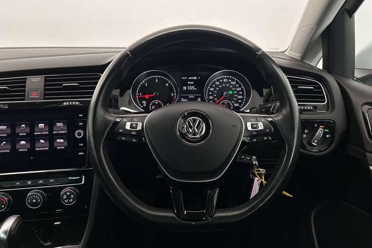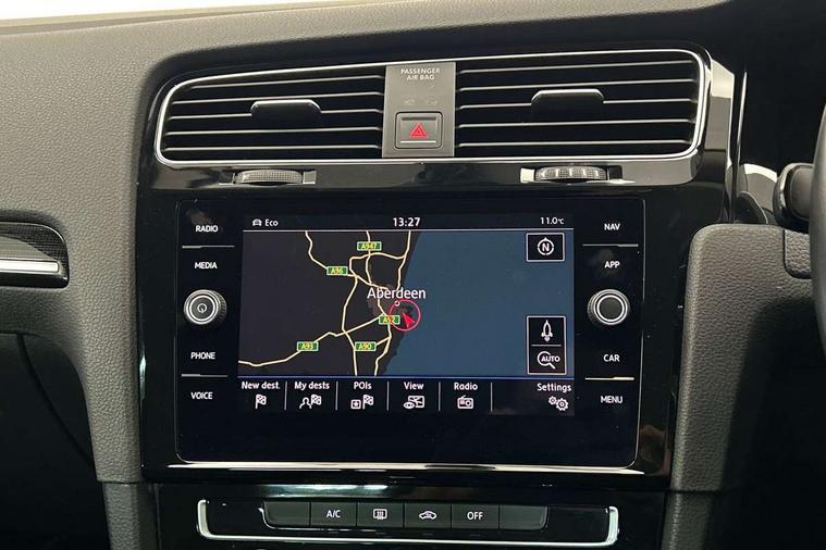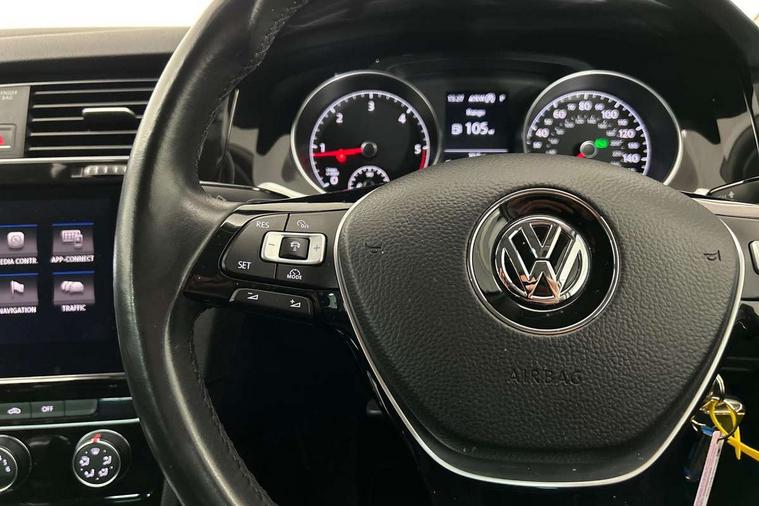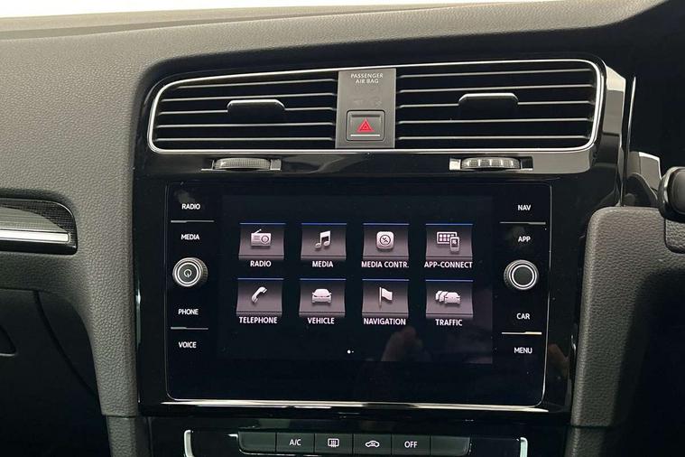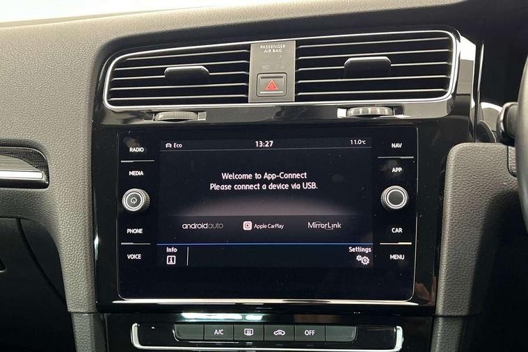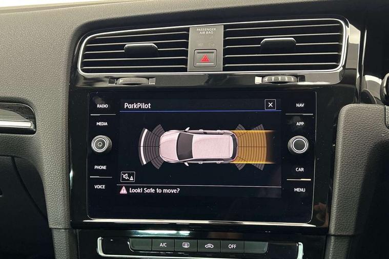 'Lights On' Reminder warning buzzer, 8" touch screen, Adaptive Cruise Control with pedestrian detection and speed limiter, App-Connect, Bluetooth hands free telephone connection, Brake pad wear indicator warning light, Driver alert system, Driver profile selection, Exterior temperature gauge, Front assistant collision mitigation, Instrument cluster in white, Multifunction computer, PAS - speed related, Rev counter, Trip and service interval display, Ultrasonic front and rear optical and audible parking sensors, Warning buzzer and light for front seatbelts unfastened, Diesel particulate filter, Lowered sports suspension, XDS electronic differential lock, CD/MP3/WMA, USB and SD card reader, aux-in, Composition media system, DAB Digital radio, Auto dimming rear view mirror, Automatic coming/leaving home lighting function, Automatic headlights, Black front air intake and radiator grille with chrome insert, Black rear diffuser, Body colour bumpers, Body colour door handles, Body colour door mirrors, Chrome grille surround, Electric front windows, Electric rear windows, Electrically adjustable and heated door mirrors, Heat insulated tinted glass 65% light absorbing from B pillar back, Heated rear windscreen, LED daytime running lights, LED front fog lights with static cornering light function, LED rear lights, Rain sensor, Rear roof spoiler, Rear windscreen washer and wiper with interval delay, 12V socket in luggage compartment, 3 rear headrests, 3 spoke steering wheel, 60/40 split folding rear seat, Bag hook in luggage compartment, Boot lashing points, Cooled glovebox, Courtesy light delay, Cover for storage compartment in centre, Dust/pollen filter, Front + rear carpet mats, Front centre armrest with storage box and rear air vents, Front passenger drawer stowage, Front passenger seat height adjust, Front seat back storage pockets, Gearshift paddles, Grab handles, Height adjustable driver's seat, Height/reach adjust steering wheel, Illuminated vanity mirrors, Isofix preparation for 2 rear child seats, Load through provision with rear centre armrest and cupholders x2, Luggage compartment cover, Luggage compartment lighting, Multifunction leather steering wheel with leather gear knob/handbrake grip, Overhead storage box, Pearl grey headlining, Storage box in luggage compartment, Storage compartments in doors, Sun visors, Variable boot floor, height adjustable and removable, Ambient lighting pack - Golf, Mirror pack - Golf, 3 point height adj front seatbelts + pretensioners, 3 rear 3 point seatbelts, ABS, Automatic post collision braking, Child locks on rear doors, Driver/Front Passenger airbags, Driver/Passenger whiplash optimised head restraints, Drivers knee airbag, Electronic parking brake with auto hold, ESP with EDL + ASR, Front and rear curtain airbags, Front passenger airbag deactivation, Front side airbags, Pre crash system, Tyre pressure monitor, Alarm with interior protection, Electronic engine immobiliser, Remote central locking with 2 remote folding keys, Chrome-plated light switch surround, Piano black centre console, Tumbler decorative inserts, Steel space saver spare wheel,