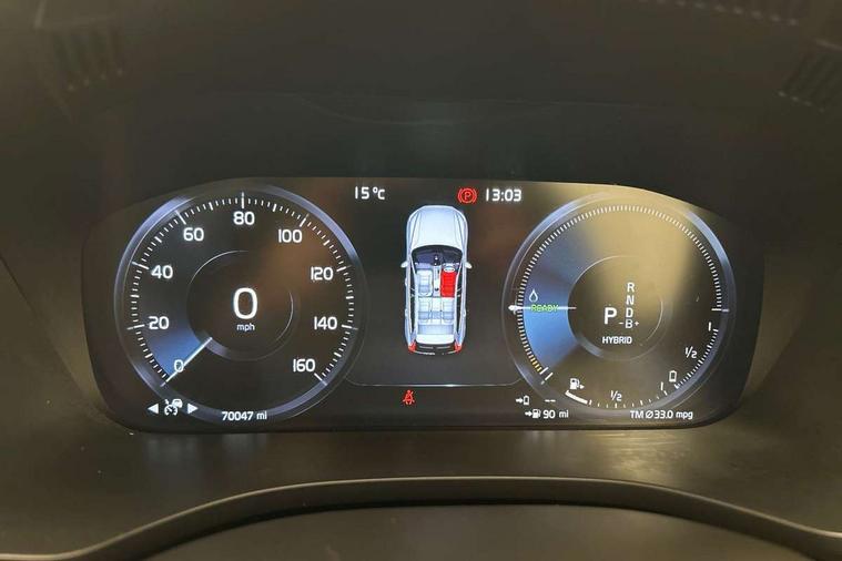 12.3" Active TFT crystal driver's instrument display, 9" Touch screen, Adjustable steering wheel force, Bluetooth hands free telephone kit, Drive mode selector, Front collision warning with full auto brake, Intelligent driver information system (IDIS), Lane keep assist with driver alert control, Oncoming Lane Mitigation, Power tailgate, Remote fuel flap release, Road Edge Detection, Service interval indicator, Speed limiter, Speed sensitive steering, Trip computer, Voice control system, Volvo on call, Active four-C chassis + four corner adaptive damper with electronic rear air suspension, Recharging port located in nearside front wing, DAB Digital radio, Active bending headlights with adaptive shadow technology, Adaptive brake lights with high level LED brake lights, Aluminium tread plates, Auto dimming interior + exterior mirrors, Body colour door mirrors, Chrome front lower bumper, Chrome lower door mouldings, Chrome side window trim, Dual integrated exhaust pipes, Electric folding door mirrors, Electric front+rear windows, Electrically adjustable and heated door mirrors, Headlamp cleaning system, Headlamp levelling, Heated aqua blades, High gloss black grille with chrome inserts, Home safe and approach lighting, Illuminated side steps, LED Headlights + Active high beam incorporating daytime running lights, Power glass tilt and slide panoramic sunroof with sun curtain, Rain sensor with automatic windscreen wiper activation, Rear wiper, Roof antenna, Roof spoiler, Silver roof rails, Tinted windscreen, Visible VIN plate, 12V power point in luggage area, 12V socket in front + rear tunnel console, 2 zone electronic climate control with air quality system, 3 spoke leather steering wheel with chrome trim, 60/40 split folding rear seat, A-pillar parking ticket holder, Auxiliary Fuel Burning Heater, B Pillar ventilation, Bright metal luggage threshold, Centre armrest storage illumination, Centre console cupholders and storage, Charge cable bag, Door ambient lighting, Electric drivers seat with memory, height adjust and multi directional lumbar support + mirrors memory, Electric front cushion extensions and side support, Electrically adjustable passenger with height adjust and multi directional lumbar support, Floor mats, Front and rear door pockets, Front footwell illumination, Front reading lights, Glovebox illumination, Head restraints for all seats, Heated front seats, Heated steering wheel, Height/reach adjustable steering column, High gloss black steering wheel remote infotainment controls, Illuminated driver/passenger vanity mirrors, Illuminated front cupholder, Illuminated luggage compartment, Illuminated tailgate, Load cover, Lockable glovebox, Massage function for front seats, Multicolour theatre lights, Nappa Leather Key Integrated Remote, Orrefors Crystal gear lever knob, Perforated and ventilated nappa leather upholstery, Pollen filter, Rear armrest / integral cup holders / storage tray, Rear footwell illumination, Rear seat concealed storage, Underfloor stowage compartment, Vanity mirror with ticket holder, WHIPS - Whiplash Protection System, 5 three point seatbelts, ABS/EBD, City safety with steering support with Pedestrian + cyclist + large animal detection + front collision warning with full auto brake, Curtain airbags, Drivers knee airbag, DSTC-Dynamic Stability and Traction Control, Dual stage driver/passenger airbags, EBA, Electronic parking brake with auto hold, Fasten seatbelt reminder, First aid kit, Hill descent control, Hill start assist, Hydraulic Brake Assist (HBA), Passenger airbag deactivate switch, Road sign information display, Run off Road Protection, Seatbelt pre-tensioners, SIPS airbags, Tyre pressure monitor, Warning triangle, Anti-theft alarm including immobiliser/volume sensor + level sensor, Key integrated remote control central locking + fuel flap with deadlocking system and auto open/close power windows, Locking wheel nuts, Private locking for tailgate, Tailored instrument panel with contrast stitching, Tyre sealant kit + 12v compressor,