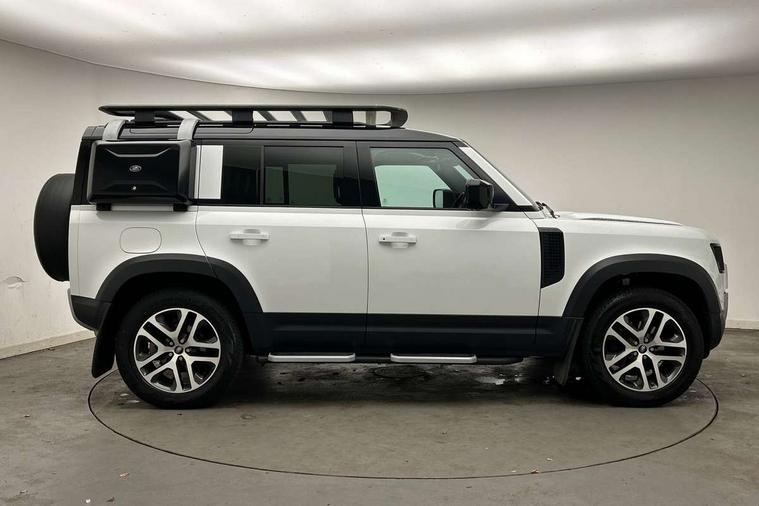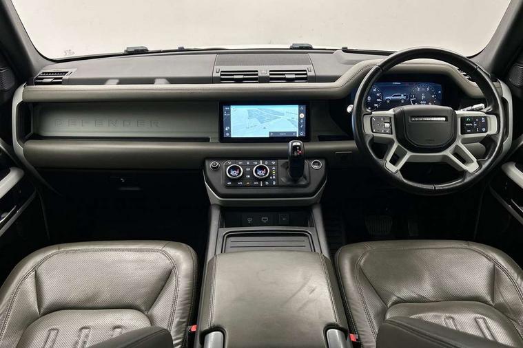 10" touch screen, 360 degree parking aid, 3D Surround Camera with 360 View, 180 Rear View, Front Traffic Detection, Forward Vehicle Guidance, Tow Hitch Assist and clear sight Ground View, Adaptive cruise control, Android Auto, Apple CarPlay, Blind spot assist, Bluetooth system, Clear exit monitor, Click and go integrated base unit, Connected navigation pro, Driver condition monitor, Interactive driver display, Lane keep assist, PAS, Pivi Pro connected navigation system with upgraded Infotainment, Rear collision monitor, Rear traffic monitor, Traffic sign recognition with adaptive speed limiter, Trip computer, Wade Sensing, Adaptive dynamics, Electronic air suspension, DAB Radio (Digital Audio Broadcasting), Automatic headlight levelling, Automatic headlights, ClearSight interior rear view mirror, Front fog lights, Heated windscreen, LED tail lights, Matrix LED headlights with signature DRL, Power fold, auto-dimming, heated door mirrors with memory and approach lights, Puddle lights, Rain sensing windscreen wipers, Signature graphic (with interior storage), Sliding panoramic roof, Standard treadplates, 14 way heated and cooled electric adjustable memory front seats with 4 way manual headrests, Air quality sensor, Cabin air ionisation, Carpet mats, Electric reach + rake adjustable steering column, Extended leather upgrade, Front passenger isofix child seat attachment, Heated steering wheel, Leather gearshift, Leather steering wheel, Loadspace cover, Morzine headlining, Multifunction steering wheel, Rear headrests, Rear ISOFIX, Sunvisors with illuminated vanity mirrors, Three-zone Climate Control with Rear Cooling Assist, Twin front cupholders with cover, Windsor leather upholstery, Online pack with data plan - Defender, 7 three point seatbelts, ABS, Driver and passenger airbags, Emergency braking, ESP + traction control, TPMS (Tyre pressure monitoring system), Alarm, Immobiliser, Intrusion sensor, Keyless entry and go, Locking wheel nuts, Remote locking,