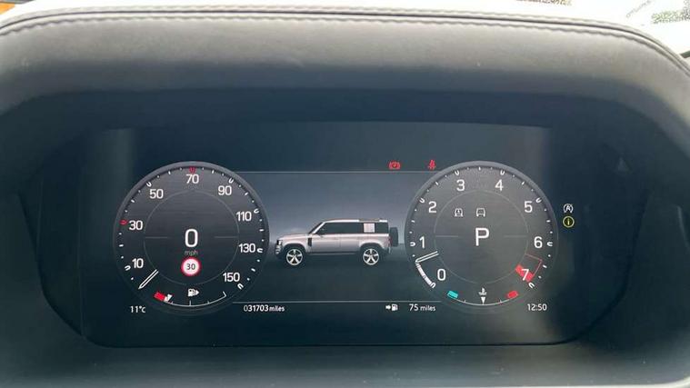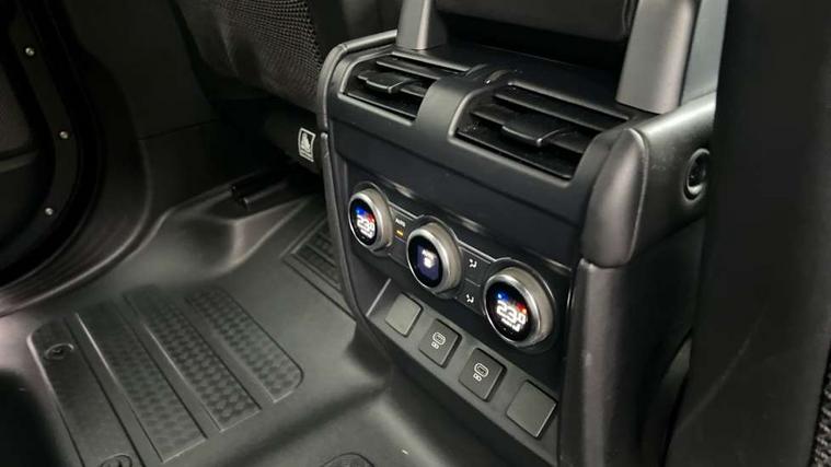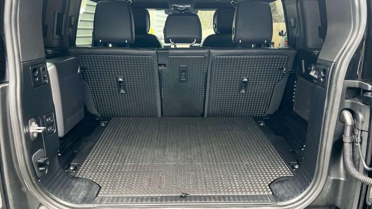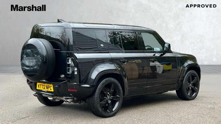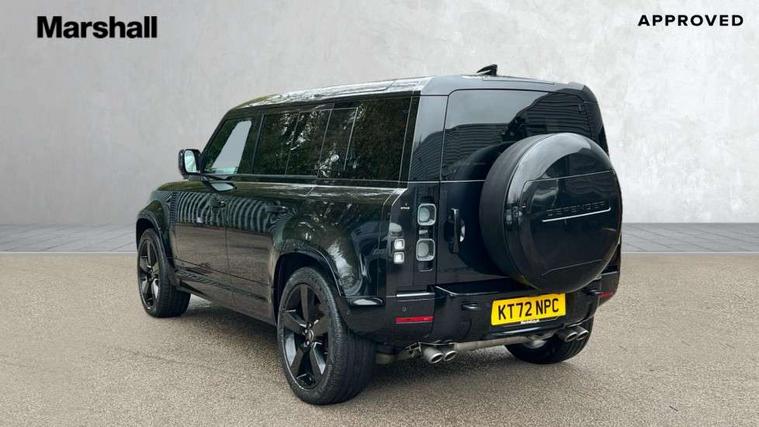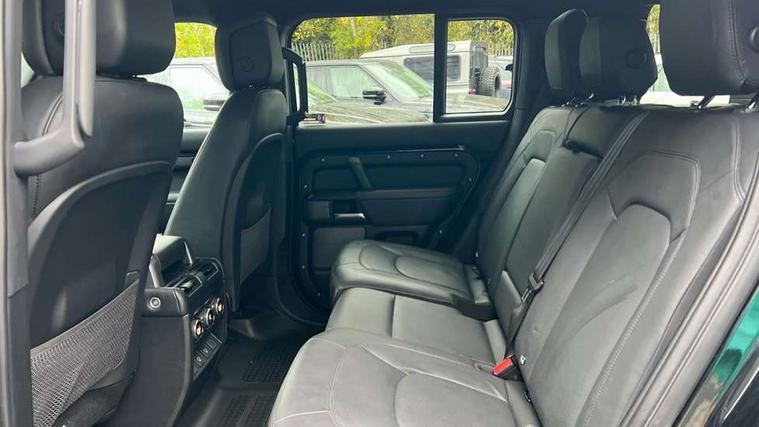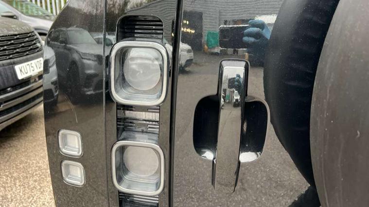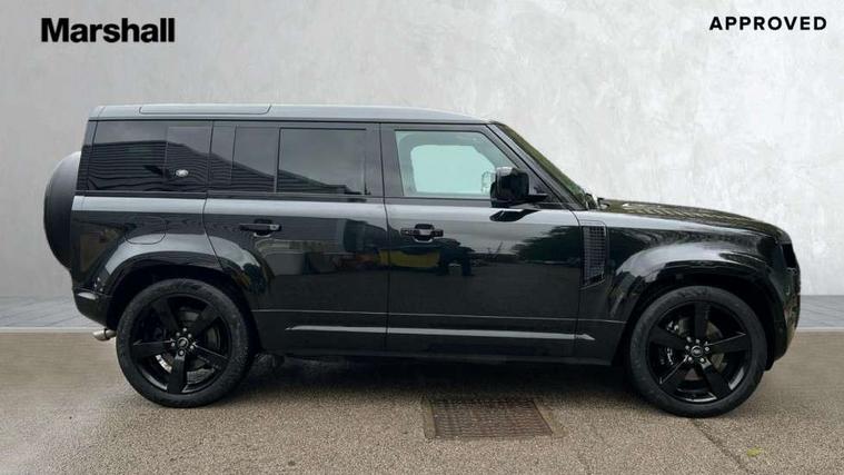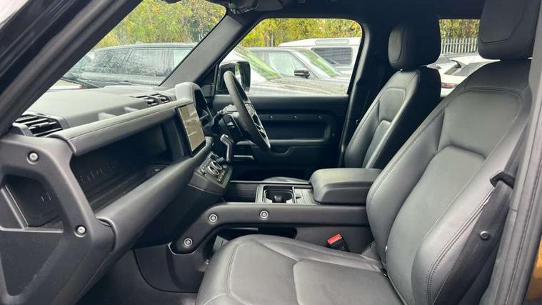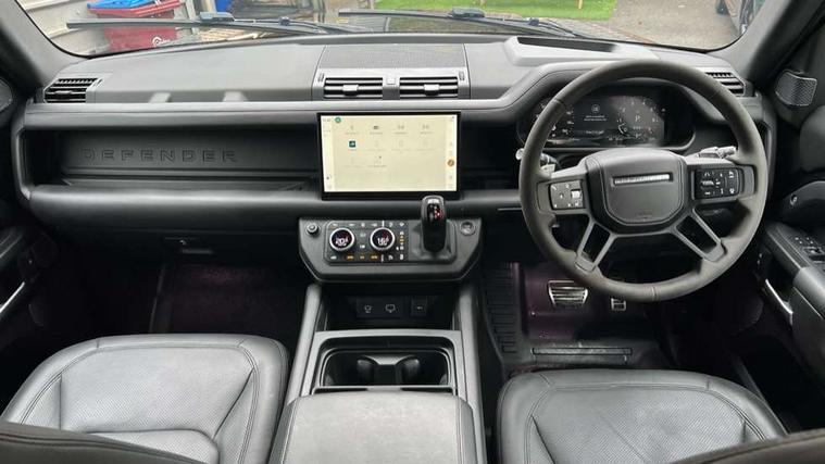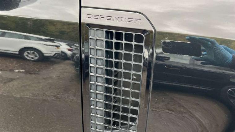 11.4" touchscreen, 360 degree parking aid, 3D Surround Camera with 360 View, 180 Rear View, Front Traffic Detection, Forward Vehicle Guidance, Tow Hitch Assist and clear sight Ground View, Adaptive cruise control, Android Auto, Apple CarPlay, Assisted tailgate with soft close, Blind spot assist, Bluetooth system, Brake pad wear indicator, Clear exit monitor, Connected navigation pro, Driver condition monitor, Electric power assisted steering (EPAS), Garage door opener (Homelink), Head up Display, Lane keep assist, Push button start, Rear collision monitor, Rear traffic monitor, Traffic sign recognition with adaptive speed limiter, Trip computer, Wade Sensing, Wireless device charging with phone signal booster, 8 speed automatic transmission, Adaptive dynamics, All terrain progress control, All wheel drive system, Configurable Terrain Response, Electronic active differential with brake torque vectoring, Electronic air suspension, Terrain Response 2 with dynamic program, Twin speed transfer box, DAB Radio (Digital Audio Broadcasting), Meridian 700w surround sound audio system with 15 speakers, Pivi pro connected, Advanced tow assist, Automatic headlight levelling, Automatic headlights, Centre high mounted stop light, ClearSight interior rear view mirror, Darkened LED tail lights, Electric heated/power fold door mirrors with approach lights and auto dimming driver side, Electric windows with one touch open/close and anti-trap, Electrically deployable towbar, Follow me home lighting, Front fog lights, Headlamp power wash, Heated rear window with timer, Heated washer jets, Heated windscreen, Illuminated metal treadplates with V8 branding, Less roof rack or roof rails, Matrix LED headlights with signature DRL, Privacy glass, Puddle lights, Quad outboard mounted exhaust pipes, Rain sensing windscreen wipers, Rear fog lights, Rear side wing doors, Rear wiper, Side hinged tailgate, Signature graphic (with interior storage), Sliding panoramic roof, Solar attenuating windscreen, Trailer stability assist, V8 badge, 12V power socket in loadspace, 14 way heated and cooled electric adjustable memory front seats with 4 way manual headrests, 3 seat bench in 2nd row, 40:20:40 folding, heated rear seats with centre armrest, Air quality sensor, Alpine lights, Bright metal pedals, Cabin Air Purification plus, Domestic plug socket, Durable rubber cabin flooring, Durable rubber loadspace flooring, Ebony morzine headlining, Electric cabin pre conditioning, Electric reach + rake adjustable steering column, Extended leather upgrade, Footwell lights, Front centre console refrigerator compartment, Front passenger isofix child seat attachment, Heated steering wheel, Leather gearshift, Loadspace cover, Loadspace Hook, Multifunction steering wheel, Overhead stowage for sunglasses, Premium cabin lighting, Rear headrests, Rear ISOFIX, Rear reading lights, Satin chrome gearshift paddles, Single front passenger seat, Standard seat configuration, Storage glovebox, Suedecloth steering wheel, Sunvisors with illuminated vanity mirrors, Three-zone Climate Control with Rear Cooling Assist, Twin front cupholders with cover, Online pack with data plan - Defender, 5 x 3 point seatbelts, ABS, Brake hold function, Cornering brake control (CBC), Cross car beam in satin black powder coat brushed finish, Customer configurable autolock, DSC - Dynamic Stability Control, EBD - Electronic brakeforce distribution, Electric parking brake (EPB), Emergency brake assist, Emergency braking, ESP + traction control, Front airbags with passenger seat occupant detector, HDC - Hill descent control, Hill launch assist, Low traction launch, Power operated child locks, Remote for (e-Call, Optimised assistance call, InControl app, Climate, beep and flash and door), RSC - Roll stability control, Seat belt reminder, TPMS (Tyre pressure monitoring system), Activity key, Alarm, Immobiliser, Intrusion sensor, Keyless entry, Locking wheel nuts, Robustec veneer,
