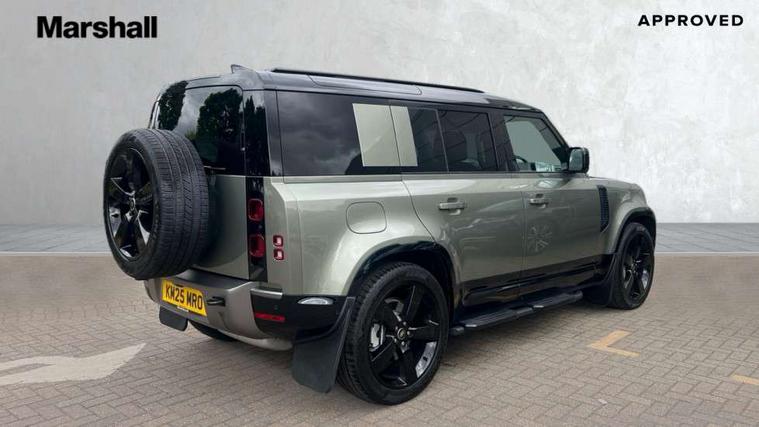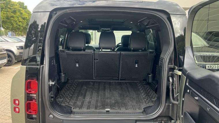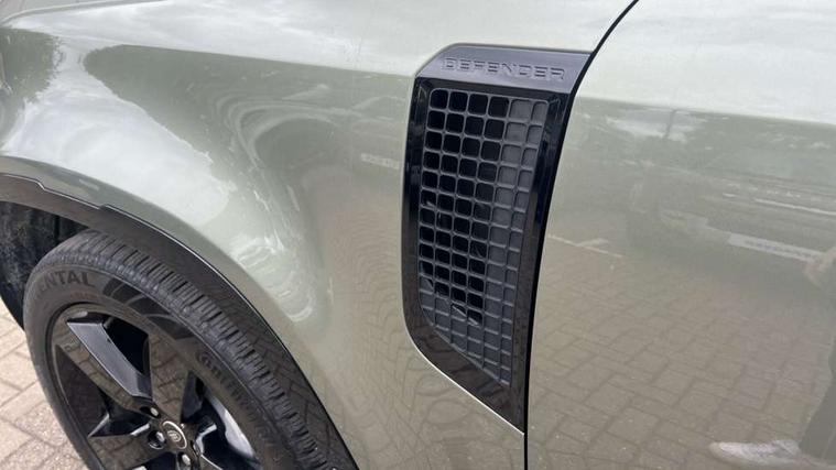 1 x USB-C (power only) & 1 x USB-C (power & data) in Row 1, 2 x USB-C in Row 2, 11.4" touchscreen, 2 x USB-C in Row 3, 360 degree parking aid, 3D Surround Camera with 360 View, 180 Rear View, Front Traffic Detection, Forward Vehicle Guidance, Tow Hitch Assist and clear sight Ground View, Adaptive cruise control, Android Auto, Apple CarPlay, Blind spot assist, Bluetooth system, Brake pad wear indicator, Clear exit monitor, Connected navigation pro, Driver condition monitor, Electric power assisted steering (EPAS), Interactive driver display, Lane keep assist, Push button start, Rear collision monitor, Rear traffic monitor, Traffic sign recognition with adaptive speed limiter, Trip computer, Wireless device charging, 8 speed automatic transmission, All wheel drive system, Twin speed transfer box, DAB Radio (Digital Audio Broadcasting), Meridian 700w surround sound audio system with 15 speakers, Pivi pro connected, Automatic headlight levelling, Automatic headlights, Black exposed rear recovery eyes, Body coloured bonnet, Centre high mounted stop light, Electric heated/power fold door mirrors with approach lights and auto dimming driver side, Electric windows with one touch open/close and anti-trap, Follow me home lighting, Front fog lights, Heated rear window with timer, Heated windscreen, Illuminated metal treadplates with brand name script, LED tail lights, Matrix LED headlights with signature DRL, Privacy glass, Puddle lights, Rain sensing windscreen wipers, Rear fog lights, Rear side wing doors, Rear wiper, Side hinged tailgate, Sliding panoramic roof, Standard tail door, Trailer stability assist, X-Dynamic badge, 12V power socket in loadspace, 2 seat bench in 3rd row, 3 seat bench in 2nd row, Alpine lights, Configurable cabin lighting, Durable rubber cabin flooring, Durable rubber loadspace flooring, Electric reach + rake adjustable steering column, Electrically adjustable steering column, Extended leather upgrade, Footwell lights, Front head restraints, Front passenger isofix child seat attachment, Heated steering wheel, Loadspace cover, Loadspace Hook, Multifunction steering wheel, No flat load floor storage, Overhead stowage for sunglasses, Rear headrests, Rear ISOFIX, Rear reading lights, Single front passenger seat, Soft close tail door, Storage glovebox, Sunvisors with illuminated vanity mirrors, Twin front cupholders, Air suspension pack - Defender SE/HSE/X-Dynamic SE/X-Dynamic HSE, Non-smoker package, Online pack with data plan - Defender, 7 three point seatbelts, ABS, Brake hold function, Cornering brake control (CBC), Customer configurable autolock, Driver and passenger airbags, DSC - Dynamic Stability Control, EBD - Electronic brakeforce distribution, Electric parking brake (EPB), Emergency brake assist, Emergency braking, ESP + traction control, Front airbags with passenger seat occupant detector, HDC - Hill descent control, Hill launch assist, Low traction launch, Power operated child locks, Remote for (e-Call, Optimised assistance call, InControl app, Climate, beep and flash and door), RSC - Roll stability control, Seat belt reminder, TPMS (Tyre pressure monitoring system), Alarm, Immobiliser, Intrusion sensor, Keyless entry, Locking wheel nuts, Secure tracker pro,