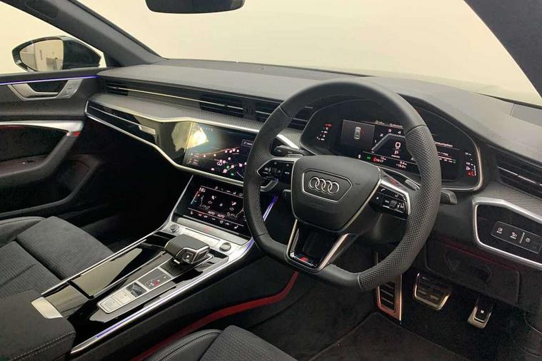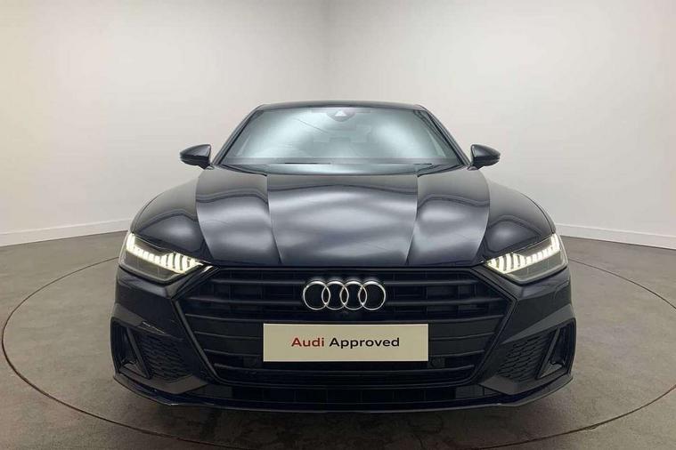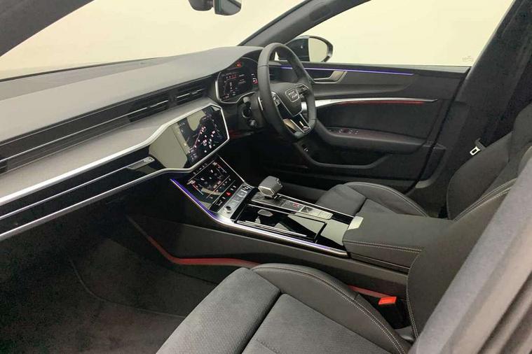 Carbon twill inlays, LED interior ambient lighting pack - A7, Non smoking pack - A7, 20" 5 double arm design Audi sport cast aluminium high seen matt titanium look alloy wheels, Anti theft alarm with tow away protection, Anti-theft wheel bolts and wheel loosening detection, Immobiliser, Keyless Go, Preparation for tracking system, Remote central locking, Audi music interface - 2 USB ports with charger and data functions, Audi sound system with 6 channel amplifier, 180 watt amplifying capacity and 10 loudspeakers including subwoofer, Auxiliary input socket, DAB digital radio module, 3 point seatbelts on all seats, Audi pre-sense front, Driver and passenger airbags, Electromechanical parking brake, Electronic stabilisation control including ABS, ASR and EDL, Extended pedestrian protection measures, Hill hold assist, Manual child lock in rear doors, Seatbelt monitoring, Tyre pressure warning light, Warning triangle and first aid kit, Coming/leaving home animations in front and rear, Electrically adjustable, heated and folding door mirrors with driver memory function and integrated LED indicators, Frameless auto dimming interior rear view mirror, Front and rear electric windows, Gloss black exterior mirror housings, Gloss black highlights on the exterior area of the Audi Single frame, Gloss black highlights on the front and rear bumpers, Gloss black highlights on the radiator grille, Gloss black highlights on the side windows trim strips, HD Matrix LED headlights with dynamic front and rear indicators, Headlight washers, Heat insulating glass in side and rear windows, LED rear lights, Rain and light sensors, Rear side wing doors, Rear wiper, Retractable rear spoiler, S line air inlet design with inlay in high gloss black, S Line badge on front fender, S line badge on front grille, S Line Black rear diffuser with chrome inlays and rear grille, S Line side skirts, Signature LED daytime running lights, Third brake light, Towbar preparation, Windscreen with heat-insulating glass, 2 zone deluxe electronic climate control, 4-way electric lumbar support, 40/20/40 split folding 3 seater rear seat bench with rear centre armrest, Black cloth headlining, Electrically adjustable front seats - driver seat with memory, Front and rear headrests, Front centre armrest, Heated front seats, Height/reach adjust steering wheel, Illuminated door sill trims with S logo, Illuminated sun visors with vanity mirrors, ISOFIX child seat mounting and top tether in front and outer rear seats with front passenger airbag deactivation, Leather gear knob, Leatherette upper instrument panel and door shoulders, Luggage compartment floor, S line front and rear floor mats with contrast stitching, Single front passenger seat, Stainless steel pedals and foot rest, Tool kit and car jack, Audi connect safety and service (e-call), Audi connect with Amazon Alexa Integration, Audi drive select, Audi parking system plus - acoustic and visual park assist system for front and rear, Audi smartphone interface, Audi virtual cockpit - 12.3" high resolution LCD digital instrument cluster display, Automatic start/stop system with coasting functionality, Bluetooth interface, Colour driver's information system display, Electric boot lid release, Lane departure warning system, MMI nav plus with MMI touch + 10.1" and 8.6" HD haptic touch screen/3D city models/country information/online map/route info and personal route assist, Operating buttons in black, glass look with haptic feedback, Power operated tailgate, Progressive steering, Rear view camera, Service indicator, Voice control system, 24 litre AdBlue tank, Diesel particulate filter, Sports suspension,