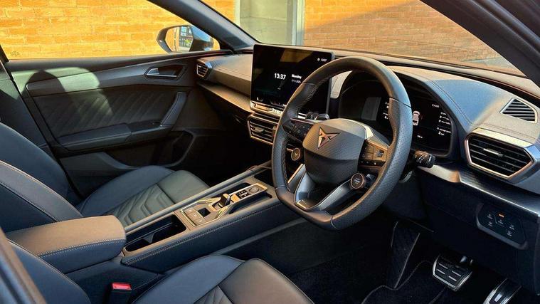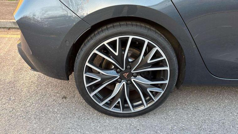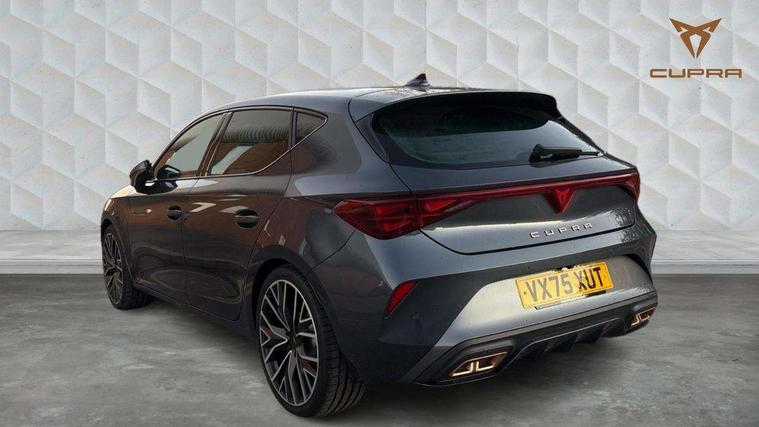 Adaptive cruise control with follow-to-stop and speed limiter, CUPRA mode drive profile selection with throttle response and gearshift mode, Digital cockpit, Driver alert system, Dynamic road sign display, E-call, Four x USB Type C ports (2 in front and 2 in rear), Front and rear parking sensors, Front assist with forward collision warning braking reaction to vehicles, pedestrians and cyclists, Front cross traffic assist, Full link smartphone integration with Mirror Link, wireless Apple CarPlay and wired Google Android Auto, Intelligent park assist, Lane change assist with emergency assist, Lockable tailgate, Rear view camera, RPM, trip computer, outside temp gauge, instrument light brightness, low fuel warning light, lights on reminder, gearshift indicator, Service interval indicator, Side and exit assist, Start/stop system with regenerative braking, Wireless phone charger, 10 amp mode 2 charging cable, 16 amp mode 3 charging cable, Auxiliary input socket, Auto dimming rear view mirror, Body colour door handles, Body coloured bumpers, Cupra matrix LED ultra headlight with variable light distribution, high definition LED w/signature w/ceremony, Cupra sports bumpers, Dark tinted rear windows, Electric front/rear windows, Electrically adjustable, heated and folding door mirrors, High beam assist, High-resolution matrix beam plus digital projection, LED front fog lamps with cornering function, LED rear fog lamp, Rain sensing wipers, Rear diffuser with copper simulated exhaust pipes, Rear side wing doors, Rear wash/wipe, Separate daytime running light with automatic headlight control and coming home feature, Third brake light, Welcome light with logo projector in door mirrors, 12v power supply in centre console, 3 seat bench in 2nd row, 5 headrests, 60/40 split rear bench seat with armrest, Ambient lighting (glovebox, footwell, ambient lighting multicoloured), Black headlining, Cupra sports pedals, CUPRA Supersports, heated steering wheel with satellite buttons, Electrically adjustable driver seat and lumbar support with memory function + manually adjustable passenger seat, Folding boot cover, Front and rear reading lights X 4, Front centre armrest, Heated front seats, Height/reach adjust steering wheel, Illuminated interior front door sills, Interior wraparound lighting, ISOFIX points in outer rear seats with top tether anchorage points, Leather upholstery, Single front passenger seat, Storage pockets on rear of front seats, Sunvisors with illuminated mirror, Three zone climate control, Dynamic and comfort pack - Leon Cupra, Media system plus with 12.9" display + navigation pack - Leon Cupra, 3 point seatbelts on all rear seats, ABS, Brake control system - ESC and brake booster, Child proof door locks, Cupra black brake calipers, Disc brakes in front, Driver and front passenger airbags with front passenger airbag de-activation, front side and curtain airbags, Electronic parking brake, Hill hold control, Pre-crash front and rear seat belt tensioner, window closure and hazard lights, Rear disc brakes, Seat belt reminder for front and rear seats, Tiredness recognition system, Tyre pressure monitoring system, Anti theft alarm system with interior monitoring in cab, backup horn and towing protection, KESSY Advanced - Keyless start, keyless entry, Locking wheel bolts, Chrome and copper interior detailing, 19" Mistral machined R black and silver alloy wheel with 91Y tyres, Breakdown kit, Tool kit,