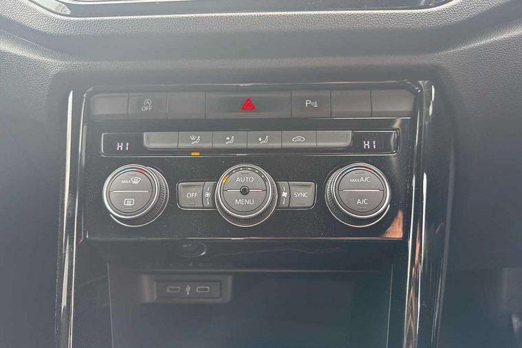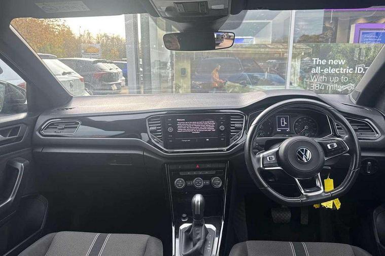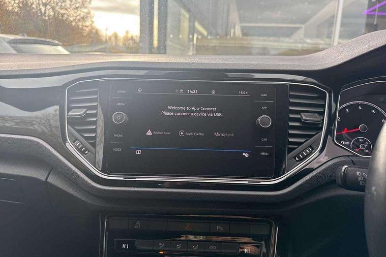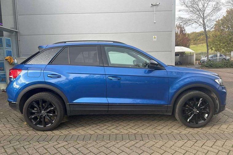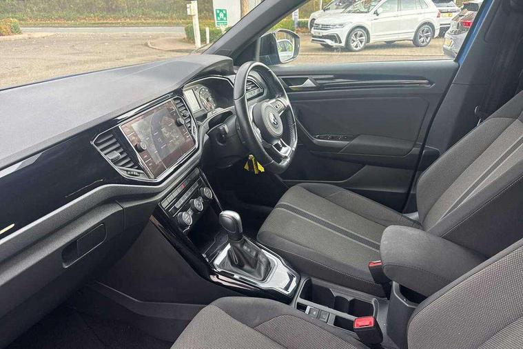 'Lights On' Reminder warning buzzer, Adaptive cruise control, Bluetooth telephone and audio connection for compatible devices, Car information display, Driver tips and journey analysis, Emergency call service, Lane assist with warning text instrument cluster, Modified key software - reduce switch off time for key status change to Long no motion, Multifunction camera, Multifunction computer with visual gear change recommendation for fuel consumption, Service interval indicator, Think blue trainer driver tips and journey analysis, Warning sound and light for doors and tailgate open, Warning sound and light for front seatbelts unfastened, Wireless app connect for apple carPlay, Battery regeneration during braking, Start/stop function with battery regeneration, DAB Digital radio, Diversity antenna for FM reception, Multi device interface (MDI) with USB connection, Music playback - MP3, WMA and AAC files, Premium USB cable in choice of either Apple or Android smartphone compatibility, SD card slot, Simultaneous pairing of 2 compatible mobile devices, Single CD player, glovebox mounted, SMS functionality - read, compose and send SMS messages using touch-screen display, Storage compartment with longitudinal and height adjustable in armrest and two rear air vents, Title and cover art display, USB-C Interface and USB charging socket, Auto dimming interior rear view mirror, Automatic coming/leaving home lighting function and daytime running lights, Automatic hazard lights activation under emergency braking, Black grained lower door protectors, Black grained wheel arches, Black roof rails, Body colour door handles, Body colour sports bumpers with silver metallic underbody fascia, Body coloured bumpers and radiator grille with chrome trim and front fog lamps with chrome bezel, Chrome trim on upper and lower radiator grille, Dusk sensor, Electrically foldable, adjustable and heated door mirrors with puddle lights and reverse activated kerb-view adjustment on passenger's door mirror, Exhaust tailpipes in black, External USB type C socket and charging sockets, Front and rear electric windows, Front windscreen wiper with intermittent wipe and 4 position delay, Fully galvanised body, Heated rear window, High level 3rd brake light, LED headlamps with automatic range adjustment and unique signature LED separate daytime running lights, LED rear number plate lights, LED tail lamp rear comination lamps, Privacy glass, Rain sensor, Rear tinted glass from B-pillar backwards approx 65% tinted, Rear wash/wipe with intermittent wipe setting, Trim strips on grille and vehicle side, Volkswagen roundel, 12V socket in centre console storage area, 3 rear head restraints, 4 load lashing points in luggage compartment, Black roof lining, Climate control - 2 zone electronic air conditioning with automatic air recirculation and allergy filter, Door and side trim panel, Drawer under drivers seat, Front centre armrest, Front cupholders x 2, Front seat back storage pockets, Glovebox, Height adjustable front seats, Height/reach adjust steering wheel, Instrument lighting, white adjustable panel illumination, Interior light in footwell, Isofix easy fit child seat preparation for 2 outer rear seats, Leather gearshift knob, Leather multi function sport steering wheel with gear change selection via paddle shift on steering wheel, LED interior light with switch off delay/dimmer and 2 front/rear LED reading lights, Load through provision with single cup holder when folded down, Luggage compartment cover, removable, Luggage compartment lighting, Split folding rear seat backrests with centre armrest, Storage compartment in left and right luggage area, Storage compartment in rear doors, Storage compartments in driver and front passenger doors, Sunvisors with illuminated vanity mirrors, White ambient lighting, Black decal on C-pillar pack - T-Roc, 3 rear three point seatbelts, ABS, Curtain airbags, Driver and front passenger safety-optimised head restraints, Drivers and front passengers airbags with passengers deactivation switch, Drivers seatbelt reminder, Electronic parking brake with auto hold, Electronic stability control (ESC) includes ASR, EDL, EDTC and trailer stabilisation function, Front assist with city emergency braking and pedestrian monitoring, Front seat side impact airbags, Predictive pedestrian protection, Rigid safety cell with front and rear crumple zones, Single tone horn, Three point height adjust front seatbelts + pretensioners, Tyre pressure loss indicator, Ventilated front and rear disc brakes, Volkswagen roadside assistance, Alarm with remote central locking and interior protection, Electronic engine immobiliser, Remote central locking with SAFELOCK, radio remote control with 2 remote control folding keys, Black decorative trims, Piano black decorative inserts in dash, centre console and door panel, 18" Arlo black diamond turned surface alloy wheels with low rolling resistance tyres and anti theft wheel bolts,