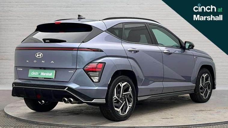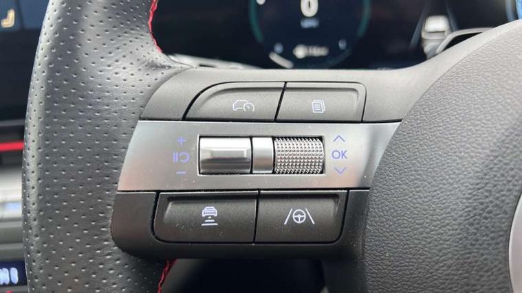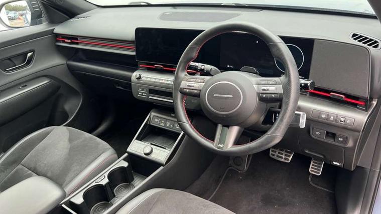 12.3" touchscreen centre console display satellite navigation with bluelink, live services and mapcare, Blind spot collision avoidance assist, Blind spot view monitor, Bluetooth connectivity with voice recognition, Digital clock, Driver status monitor (DSM), Driver supervision instrument cluster with 12.3" LCD display, eCall emergency call system, Feature on demand - Enabled, Forward collision avoidance assist (FCA 1.5) - Car, pededstrian, cycle and junction turning, Front parking sensor, HDA - Highway Drive Assist Level 1.5, Height adjustable power tailgate, Intelligent speed limit assist, Lane follow assist, Lane keep assist, Leading vehicle departure alert (LVDA), Parking Collision Avoidance Assist-Reverse (PCA-R), Parking distance warning - side, Parking system with rear camera and guidance system, PAS, Rear cross traffic collision avoidance (RCCA), Rear parking sensor, Roadside assistance, Safe exit warning (SEW), Smart cruise control with stop and go functionality, Surround view monitor, Windscreen washer fluid sensor and warning indicator, Wireless phone charging pad, Wireless Smartphone Integration includes Apple CarPlay and Android auto, 2 front USB C and 2 rear USB C charging points, Bose Premium Audio system with 7 premium speakers + subwoofer, DAB Digital radio, Steering wheel audio, phone and cruise controls, Auto dimming rear view mirror, Automatic headlights with dusk sensor, Automatic windscreen wipers with rain sensor, Body colour bumpers, Body colour exterior door handles, Body coloured wheel arch inserts, Door mirror LED indicator lights, Electric front windows with anti-trap mechanism and one touch control, Electric rear windows, Electrically adjustable and heated door mirrors, Gloss black door mirrors, Horizon centre LED DRL, LED projector headlights, LED upper and lower rear lights, Power folding door mirrors, Privacy glass - Rear windows and tailgate, Rear roof spoiler with integrated LED brake light, Rear side wing doors, Rear wiper, Roof rails, Solar glass with front door glass and windscreen, Tinted glass in front and rear doors, Windscreen auto defog function, 12V power outlet in front console, 2 zone climate control, 3 seat bench in 2nd row, 40/20/40 split folding rear seat, Adjustable head restraints, Aluminium pedals, Ambient lighting, Driver and passenger front seat pockets, Driver's seat electric adjustments, Driver's seat lumbar support, Driver/passenger sunvisors and illuminated vanity mirrors, Floor mats, Front passenger's seat electric adjustments, Heated front seats, Heated rear seats, Heated steering wheel, Height/reach adjustable steering column, Isofix rear child seat fastenings, Leather wrapped steering wheel, LED centre interior light, LED front interior light, Luggage compartment LED lighting, Luggage net, Luggage shelf, Metal paint effect interior door handles, N Line Alcantara/leather upholstery, Parcel shelf, Rear centre armrest, Rear centre console with air vents, Shift by wire SBW, Single front passenger seat, Ventilated front seats, Vertical adjustment rear head restraints, N Line exterior design pack - Kona, Trailer wiring package - Kona, Airbag - front, front side, curtain and centre front airbag, Anti-lock brake system (ABS), Childproof rear door locks, Downhill brake control, EBD + Brake Assist, Electric parking brake, Electronic stability control, Fasten seatbelt reminder, Fixed 3 point for second row centre passenger seatbelt, Front seatbelt pretensioners, Height adjustable front seatbelts, Hill start assist control (HAC), Passenger airbag deactivate switch, Rear seat alert, Traction control, Tyre pressure monitoring system, Alarm/immobiliser, Deadlocks, Folding key, Locking wheel nuts, Remote central locking, Smart key with keyless entry and engine start/stop button, Five year annual vehicle health checks, Temporary mobility kit (TMK),