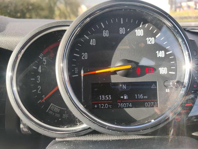 Acoustic seat-belt warning, Brake fluid level warning light, Brake pad wear indicator warning light, DTC - Dynamic traction control, Exterior temperature gauge, Intelligent emergency call, MINI TeleServices, Oil level indicator, On board computer, Push button starter, Service interval indicator, Servotronic PAS, Diesel particulate filter, Electronic differential lock, Performance Control, Auxiliary input socket, DAB digital radio module, 2 speed wipers+intermittent wipe, Anti dazzle mirror, Anti trapping/one touch open close front windows, Body colour scoop integrated into engine- compartment lid, Body coloured bumpers, Chrome bezels around rear lights and headlights, Chrome door handles, Chrome plated fuel cap, Chrome plated trim on bottom edge of window, Chrome strip on lower grille, Electric front windows, Electrically adjustable door mirrors, Flared wheel arches, Follow me home headlights, Green tinted heat insulating glass, Heated door mirrors/heated windscreen washers, Heated rear window with auto timer, High gloss black tailgate, Honeycomb radiator grille, Metal look door sill finishers, Rear wiper, Twin chromed exhaust pipes, White indicator lights, 2 rear head restraints, 4 boot load lashing points, 4 way manually adjustable passenger seat with height, reach, tilt, backrest and headrest, 6-way manually adjustable driver's seat, Active carbon filter, Air recirculation system, Auxiliary socket in centre console storage compartment, Centre console storage, Driver's seat height adjuster, Driver/passenger sunvisors, Front and rear cupholders, Front head restraints, Front interior light, Front passenger grab handle, Front seat backrest storage nets, Front sports seats, Gear/selector and handbrake in artificial leather, Internal chrome door handles, Isofix child seat preparation, Luggage compartment lighting, Reach + rake adjustable steering column, Rear grab handles, Rear storage trays, Split folding rear seats, Storage compartments in doors, Toolkit in luggage compartment, Vanity mirrors, 3 point seatbelts, ABS/EBD, ASC+T, Cornering brake control (CBC), Crash Sensor - activates hazard/interior lighting + unlocks doors, Driver and passenger airbags, Driver/front passenger side airbags, DSC - Dynamic Stability Control, Fuel cut off safety device, Head airbags, Hill start assist, Passenger airbag deactivation system, Seatbelt pretensioners, Tyre pressure warning, Ventilated front disc brakes, Drive away door locking, Locking wheel bolts, Remote central locking/doors+fuel cap+tailgate, Second remote key, Thatcham category 1 alarm + immobiliser,