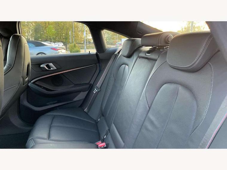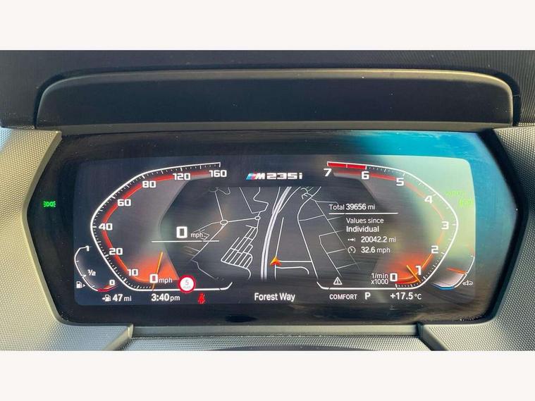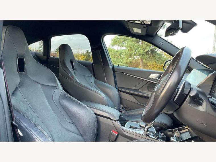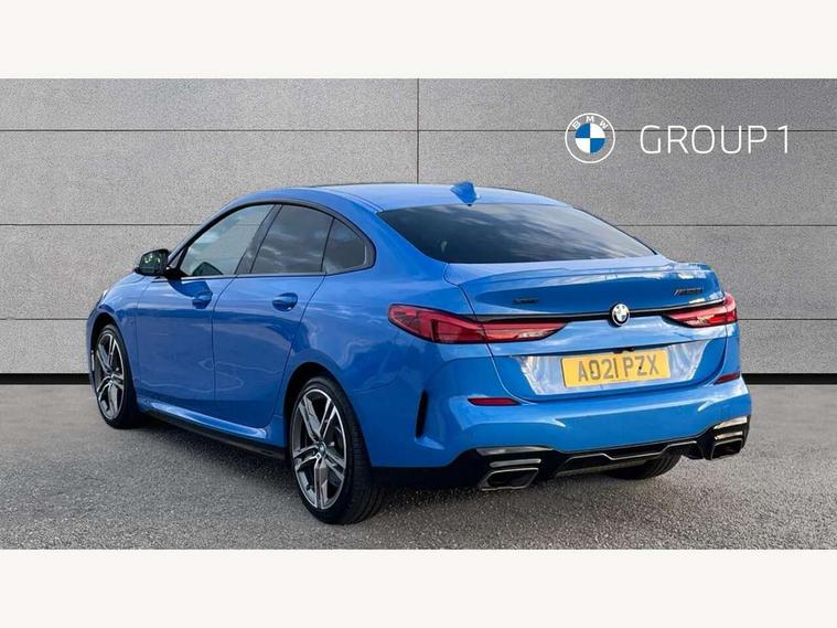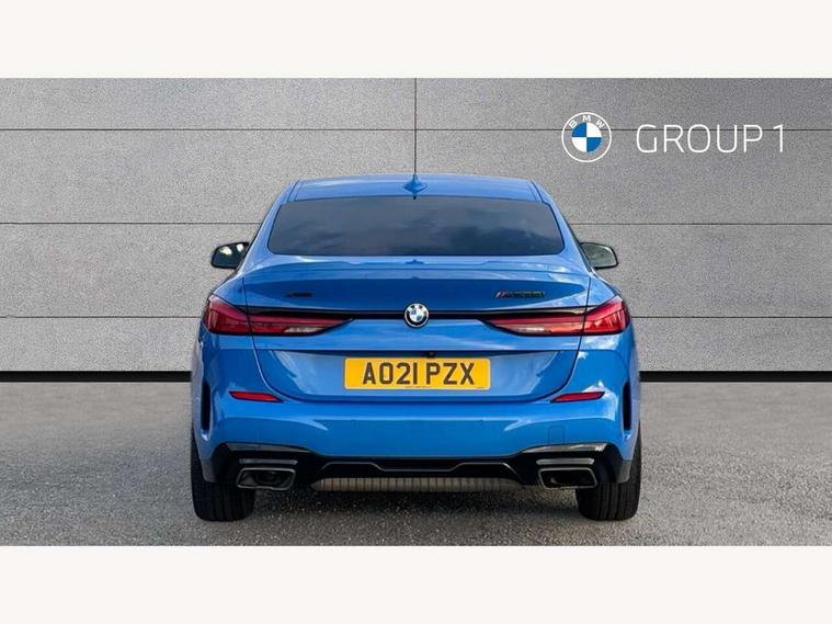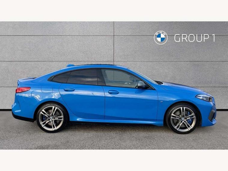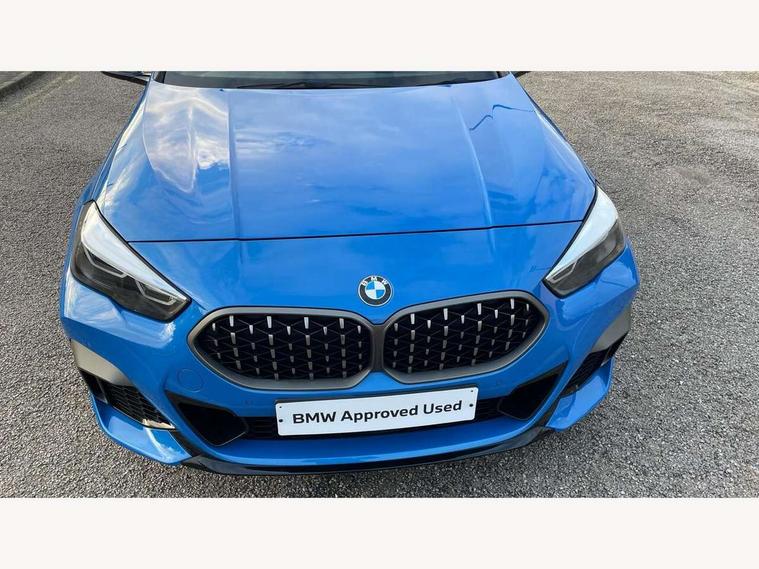 Active guard plus, Attentiveness assist, Auto start-stop, BMW Intelligent Personal Assistant, BMW Live Cockpit Professional with 10.25" high resolution instrument and control display, BMW Online services, BMW operating system with 7.0 mid interface, BMW Teleservices, Check Control warning system for monitoring of lights and door/luggage compartment open warning, Electro hydraulically controlled multi plate clutch in rear axle, Energy efficient operating strategy, iDrive controller with touch function and 7 short cut favourite buttons on centre console, Integrated navigation data with map data via USB +features such as 3D landmarks and micro city models, Integrated owners handbook, Intelligent voice assistant, M Sport steering with M235i xDrive M performance specific settings, On board computer - average speed+fuel consumption, service interval, clock/date, odometer/trip meter, outside temperature display and ice warning, Optimum shift indicator, Personal Profile, Pull away assistant, Speed limiting function, 2 balance shafts, 8 speed sport automatic transmission with electronic selector lever, auto P function, coasting idle, race track, sport, gearchange display manual mode, Aluminium lightweight construction, Double VANOS, Drive performance control with ECO PRO comfort + sport mode, Electronic differential lock, Engine cover with M performance designation, High precision injection, Larger fuel tank capacity (50 litres), Launch control, M235i specific heavily de-throttled engine intake air guide, M235i specific high-performance cooling package, M235i specific larger turbocharger with integrated divert-air valve, Performance Control, Petrol Particulate Filter, Power transmission of front wheel drive on the rear axle via angle transmission on the front axle differential and two part cardan shaft, VALVETRONIC engine management, Variable, stepless and infinitely adjustable distribution of drive torque between the front and rear axles, xDrive intelligent all wheel drive with M235i specific reinforced components, 2x USB Type C ports (for charging and data transfer), 4G LTE Connectivity with hard wied 4G network sim card, DAB digital radio, MP3 players and RDS double tuner, Automatically dimming rear view mirror, Body colour door handles, Direction indicator side lights integrated exterior mirrors, Electric windows - front and rear, with open/close fingertip control and trap release, Exterior mirrors - electrically folding with anti-dazzle, Fading support, Follow me home headlights, Front and rear bumper system with replaceable deformation elements, Front door sill finishers in black plastic with M235i designation, Heated, electrically adjustable exterior mirror aspheric on driver side, convex on passenger side, High gloss black B pillar finish, High gloss shadow line exterior trim, High level third brake light, LED daytime running lights, LED front fog lights, Lightweight engineering, M Performance exhaust system with valve control and minimised exhaust back pressure, M rear spoiler, Model designation on right side of tailgate includes xDrive designation onleft handside for M235i xDrive, Preparation for high beam assistant, Rain sensor with automatic headlight activation, Rear fog lights, Reinforced crank drive, new pistons and adapted con rods, Reversing light in rear light cluster, Welcome lighting, 12V power socket in centre console, 2 cupholders in front centre console, 3 rear seat head restraints, 3 spoke M sports design leather steering wheel finished in nappa leather with specific M badge, Additional under floor storage in luggage compartment, Anthracite finished floor mats with contrasting surround, Anthracite headlining, Automatic two zone climate control air conditioning, Child seat ISOFIX attachment for two outer rear seats and front passenger seat with anchorage points, Conditioned based service, Driver and front passenger seat heating, Front and rear door pockets including bottle trays, Front and rear side armrests integrated into door trim, Front armrest foldable with integrated storage compartment, Front centre interior light over interior mirror and rear centre automatic interior light when door is opened/ignition switched off or via remote key, Front head restraints, Front M Sport seats, Glove compartment, Glovebox with light, Luggage compartment lighting, Manually adjustment steering wheel column, Multi-function controls for steering wheel, Shift-by-wire selector shift, Steering wheel paddles, Sun visors with vanity mirrors and insert tab, Through loading system with 40/20/40 split folding rear seat, Two lashing eyes, Additional interior lighting pack - 2 Series Gran Coupe, Connected pack professional - 2 Series Gran Coupe, Extended storage pack - 2 Series Gran Coupe, M Sport exterior styling aerodynamics pack - 2 Series Gran Coupe 235i, 2 tone horn, Airbag - Front driver and passenger, front and rear head, front side, curtain head protection, manual deactivation of front passenger airbag possible, Anti lock braking system (ABS) with cornering brake control, BMW emergency call, Brake drying, Braking readiness, Crash sensor activating of airbags, Unlocking doors, hazard warning lights, interior light, safety battery terminal, Dynamic stability control + (DSC+), Dynamic Traction Control - DTC, Electrically operated hand brake, Integrated torsen mechanical limited slip differential on front axle, M Sport braking system in blue high gloss + blue painted brake calipers with M designation, M sport seatbelt, Rear brake discs, Rear child proof door locks, Seat belt security check for driver and front passenger, Seatbelt warning, Side impact protection, Three point seat belts on all seats including front belt stopper, pyrotechnic belt tensioners and belt force limiters, Trailer stability control, Tyre pressure monitoring system, Ventilated front disc brakes, Warning triangle and first aid kit, Central locking switch for all doors, fuel filler cap and luggage compartment, Deadlocking f