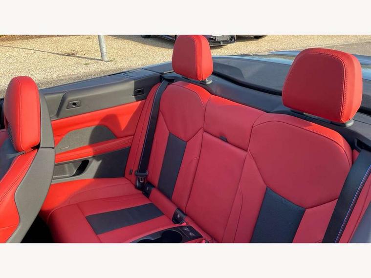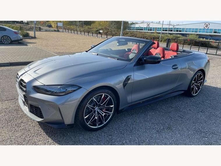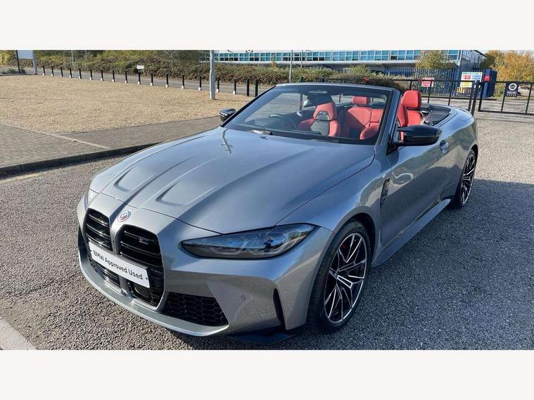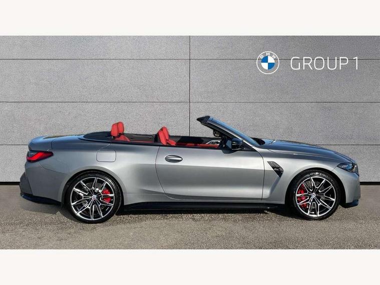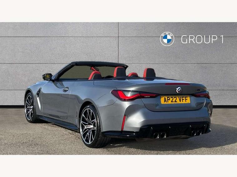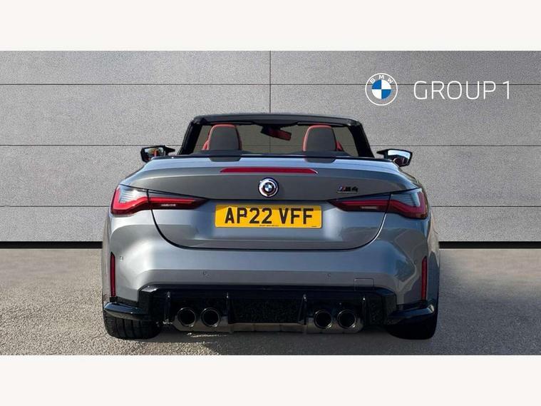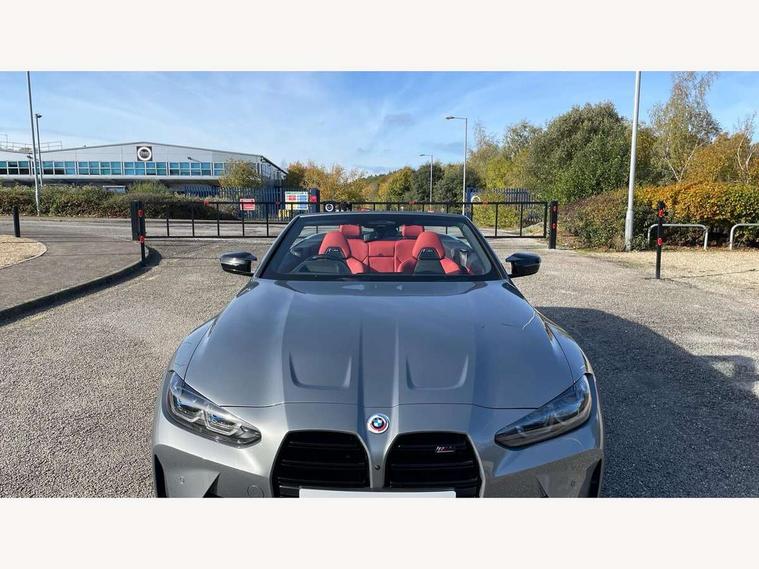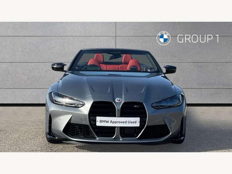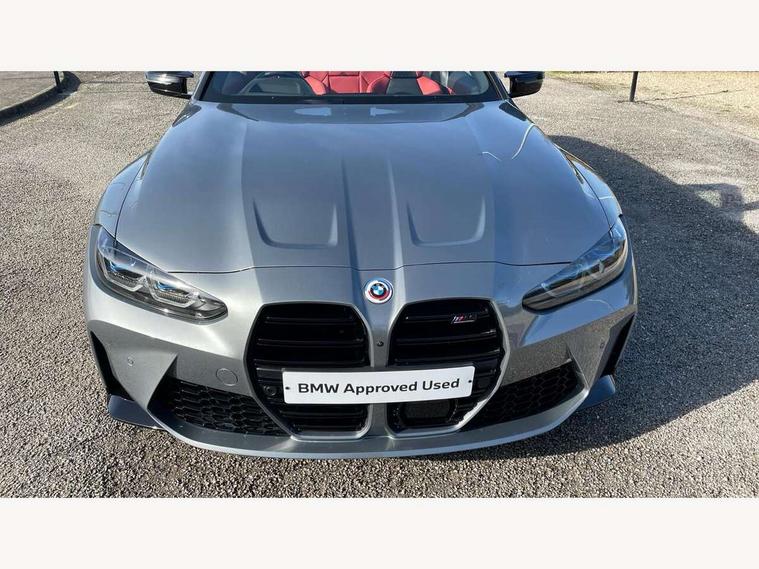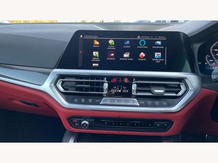 Active guard plus, Automatic start/stop system, BMW iDrive controller on centre console, BMW legal emergency call, BMW Live Cockpit Professional sat nav system with 12.3" instrument display and high resolution control display, BMW Online services, BMW Teleservices, Brake pad wear indicator warning light, Condition based service, Connected drive services, Door/boot open warning light, Driving experience switch, Electric Power Steering (EPS) with Servotronic, Enhanced bluetooth with wireless charging, Head up Display, Instrument cluster with extended contents, Lights on warning, M drive buttons, Oil sensor for level and grade, warning by check control system, Oil temperature gauge, On board computer, On board diagnostics, Optimum shift indicator, Outside temperature display, Pull away assistant, Run flat indicator, Service interval indicator, Speed limiter, Adaptive M Sport suspension, Double joint spring strut front axle, M Drive Professional including track mode, laptimer, traction control & Drift analyser, M Sport differential, M steptronic sport transmission with drivelogic, Safety battery terminal clamp, 8 programmable favourite buttons, Auxiliary point for auxiliary devices, BMW professional radio/CD/MP3, DAB Digital radio, Harman/Kardon loudspeaker system, Acoustic laminated side glass, Auto dimming driver's door mirror, Auto dimming rear view mirror, Automatic headlights + automatic windscreen wipers, Black chrome exhaust tailpipes, Black model designation badges, BMW high gloss shadow line with extended contents, BMW Individual shadowline lights, Body colour bumpers, Body colour door handles, Carbon fibre reinforced plastic (CFRP) roof, Day time running light, Door mirror integrated indicators, Door sill finishers with aluminium inserts, Dynamic brake lights, Electric adjustable heated door mirrors, Electric folding door mirrors, Follow me home headlights, Front and rear bumper system, Front electric windows with open and close fingertip control, anti trap facility and comfort closing, Headlight beam throw control, High beam assistant, High gloss black frameless kidney grille with M badge, LED number plate light, LED tail lights with 3D L-shaped LED light design, M designation, Mirror glass aspheric on driver's side, convex on passenger side, Rain sensor, Rear boot, Rear fog lights, Rear reflectors, Reversing light, Shark fin roof aerial, Third brake light, Visible VIN plate, Welcome lighting, Windscreen wipers with integrated washing jets, 2 cupholders in front centre console, 2 rear head restraints, 2 x 12 V Power sockets (luggage compartment and front centre console), 2 x USB Type C ports for charging and data transmission in front centre console, 2 x USB Type C ports for charging in rear centre console, 40:20:40 split folding rear 2 seat bench with loading system, Ambient lighting, Anthracite headlining, Battery in luggage compartment, Carbon fibre centre console incl. cover for cupholders, Carbon fibre decorative steering wheel finishers, Carbon fibre shift paddles, Carbon fibre strip in instrument panel on front passenger side, Centre console armrest with storage compartment, Compartment in front of cupholder, Driver/passenger sunvisors with illuminated vanity mirrors + covers, Electric front seats + driver memory, English handbook, Floor mats in velour, Footwell lighting, Front and rear door exit lights, Front door storage bins with bottle holder, Front interior light, Front isofix attachment + airbag deactivation, Front seat backrest width adjustment, Front seats lumbar support, Front/rear door armrests, Gearshift lever with embossed M badge, Heated front seats, Height adjustable front headrests, Interior mirror lighting, Isofix on 2nd row seats, Lockable/illuminated glovebox, Luggage compartment lighting, Rake/reach adjustable steering wheel, Single front passenger seat, Storage compartment in rear doors, Storage tray and compartment with cover in centre console, Three zone automatic air conditioning, Toolkit located in luggage compartment, Warm air collar, Additional storage compartment pack - M4, Connected package professional - M4, High gloss shadowline exterior trim pack - M4, 4 x 3 point seatbelts, ABS/EBD, Automatic Stability Control (ASC), Brake energy regeneration, Brake fade compensation, Compound structure brake discs, Cornering brake control (CBC), Crash sensor, Driver/Front Passenger airbags, Dry braking, Dynamic brake control, Dynamic Stability Control with M Dynamic mode, Dynamic Traction Control - DTC, Electromechanical parking brake, Electronic differential lock control (EDLC), Front and rear head airbags, Front seat side impact airbags, Front seatbelt pretensioners + load limiters, Hill start assist, M Sport seat belts, Seatbelt warning, Side impact protection, Two tone horn, Tyre pressure sensor, Warning triangle and first aid kit, Digital key, Electronic immobiliser, Remote central locking, Thatcham cat 1 remote alarm, Vehicle Key with 4 buttons including the integrated key, Galvanic finish to control surrounds, High gloss black interior trim, Tyre repair kit,