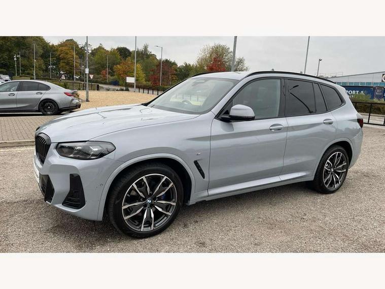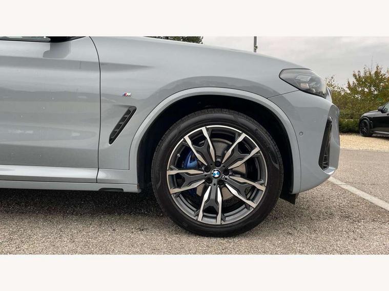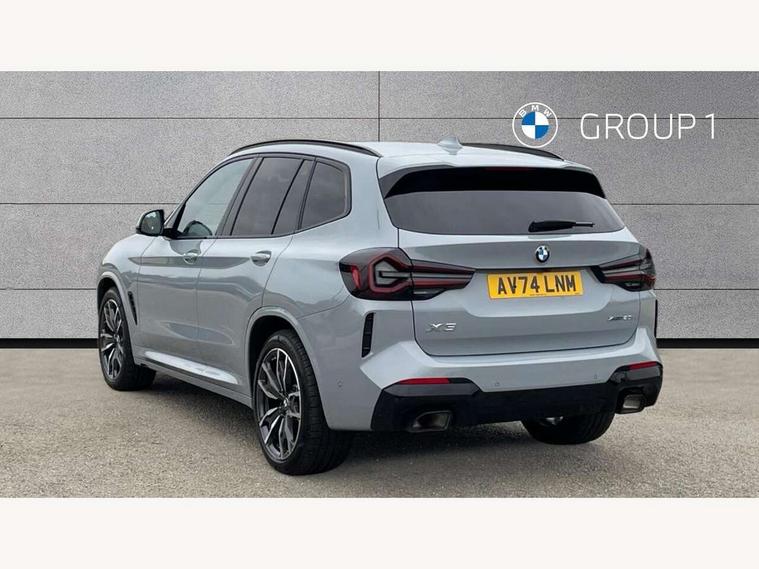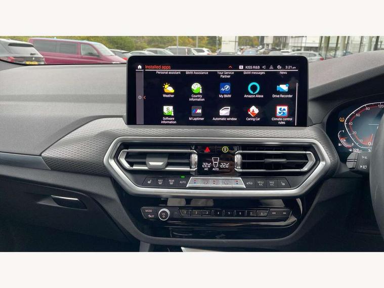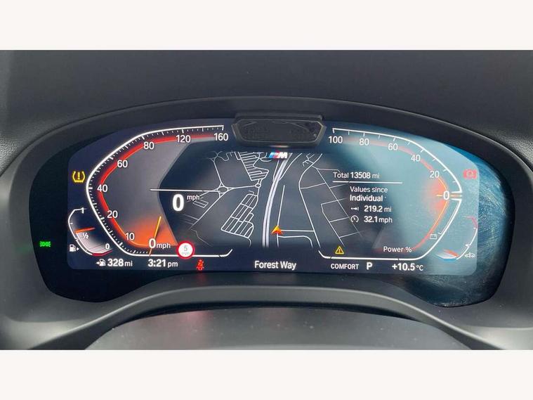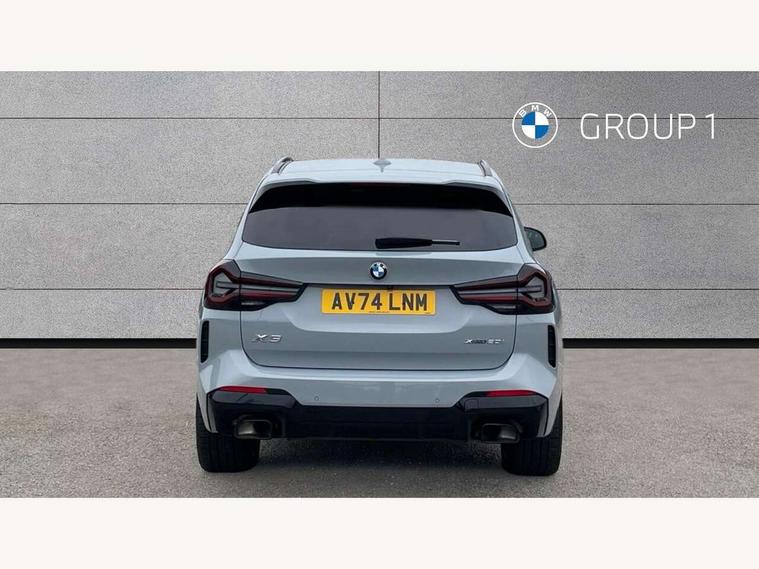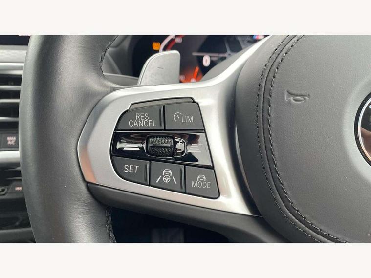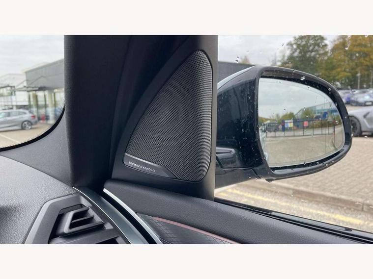 Active Guard, Attentiveness assist, BMW Live Cockpit Professional nav system including 12.3" instrument display + 12.3 high resolution control display, BMW Online services, BMW Teleservices, Brake pad wear indicator in front and rear, Check Control warning system for monitoring of lights and door/luggage compartment open warning, Condition based service - BMW service history, electronic service booklet, integrated owner's handbook, Connected drive services, Electric boot lid, Front/rear Parking distance control, iDrive touch controller with 8 favourite buttons, Instrument cluster with speedometer with mph readout, tachometer, fuel gauge and oil temperature gauge, Lights on warning by audio warning signal when ignition is switched off, Oil sensor for level and grade, warning by check control system, On board computer - average speed+fuel consumption, service interval, clock/date, odometer/trip meter, outside temperature display and ice warning, Optimum shift indicator, Personal Profile - automatic lock when driving away selectable, Run flat indicator, Stop/start system, Variable sports power steering with drive performance control Sport+ mode, Automatic transmission with gearshift paddles, Incorrect fuelling protection, M sport suspension, Multi-link rear suspension, BMW professional radio/CD/MP3, DAB tuner, Acoustic glazing, Automatic windscreen wipers and automatic headlight, Black finish on B pillars, Body colour door handles, Body colour electric adjust heated aspherical door mirrors, Body colour roof mouldings, Body coloured bumpers, Direction indicator, side repeaters, integrated in exterior mirrors, Dynamic brake lights, Exhaust tailpipes - dual, round, split left and right with chrome finisher, Fingertip control / anti-trap function on electric window, Folding wing mirrors with auto dimming, Follow me home headlights, Front and rear bumper system with replaceable deformation elements, Front and rear electric windows, Gloss chrome tailpipes finishers, Green tinted heat insulating glass, Heated windscreen washer jets, High beam assistant, High gloss black shadow line roof rails, High gloss shadowline exterior trim in decorative moulding side frame/recess cover/guide rail/B, C pillars/mirror frame and triangle with mirror base, High level 3rd brake light incorporating LED Technology, Interior rear view electrochromatic mirror with automatic anti dazzle function, LED tail lights, Lightweight engineering, M aerodynamic bodystyling, M Sport entry door sill strips, Model designation, Rain sensor, Rear side wing doors, Rear wing door, Rear wiper, Shark fin antenna, Side exterior M designation badges, Visible VIN plate, Welcome lighting, Windscreen wipers with adjustable interval, 12V power point in luggage area, 12V power socket in front centre console, 2 x USB Type C ports for charging and data transmission (front centre console) and 2 x USB Type C ports for charging (rear centre console), 3 rear headrests, 3 seat bench in 2nd row, 3 zone automatic air conditioning, 4 lashing points to secure luggage, 40:20:40 split folding rear seat with loading system, Ambient lighting, Anthracite headlining, Automatic interior light when door is opened/ignition switched off or via remote key, Floor mats in velour, Foldable storage floor with compartment, Four grab handles integrated in roof lining, Front and rear bottle holders integrated into door trim storage compartments, Front and rear side armrests integrated into door trim, Front centre armrest with storage compartment, Front footwell lights, Front head restraints, Front passenger seat, Front sports seats, Front/rear courtesy lights with soft on/off dimming, Front/rear reading lights, Heated front seats, Isofix rear child seat preparation, Leather gear knob, Lockable glove compartment, Luggage area underfloor compartment, Luggage compartment lighting, M sport leather steering wheel, Multifunction steering wheel, Parcel shelf removeable and storable under boot floor, Reach and rake adjustable steering column, Rear centre armrest with 2 cupholders, Removable / retractable luggage cover, Slope adjustable rear seats, Storage compartment in rear centre console and front/rear door trims, Sun visors with vanity mirrors and ticket pocket, Toolkit located in luggage compartment, Two front cupholders with removable oddments tray/lid, Connected pro pack - X3, ADB - Automatic Differential Brake, Anti-lock braking system (ABS) with brake assist, Automatic Stability Control (ASC), Battery safety cut-off, BMW emergency call, Brake drying, Brake energy regeneration, Braking pre-tensioning, Child locks on rear doors, Cornering brake control (CBC), Crash Sensor - activation of central locking release, hazard warning light and interior lighting, Deactivation of fuel pump in the event of a crash, Driver and front passenger front and side airbags with passenger deactivation and ITS front and rear head airbags, Driver and front passenger knee airbag, DSC+, Dynamic brake control, Dynamic Traction Control - DTC, Electromechanical parking brake, Hill descent control, Hill start assist, Seatbelt security check for front seats, Side impact protection, Three point seatbelts to all seats with front and outer rear pyrotechnic belt tensioners and seat belt force limiters, Two tone horn, Tyre pressure sensor, Ventilated front and rear disc brakes, Warning triangle and first aid kit, Central locking switch for all doors, fuel filler cap and luggage compartment, Electronic engine immobiliser, Locking wheel nuts, Remote control including two integrated key - one button for open/close all lockable content, windows and separate button for open luggage compartment, Remote control Thatcham category 1 alarm, Start/stop button with Comfort Go keyless engine start and auto Start/stop deactivation button, Low rolling resistance tyres,