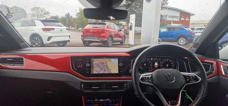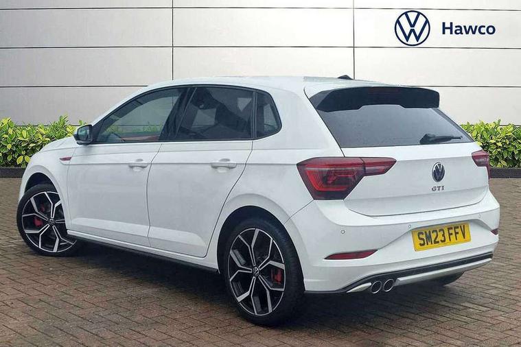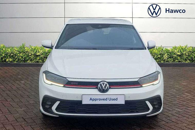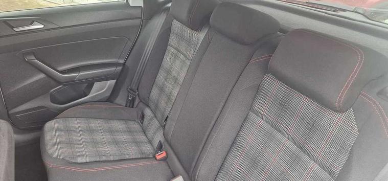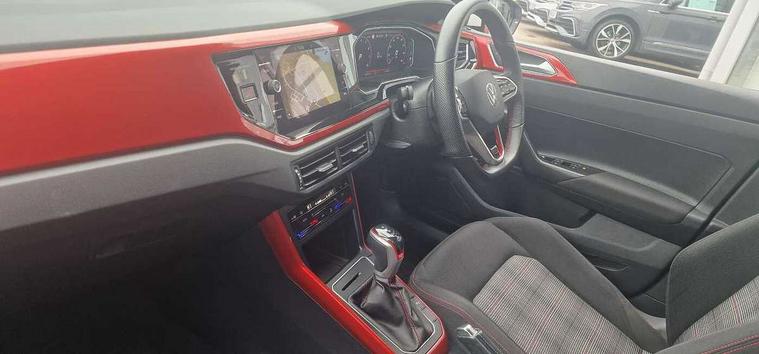 Adaptive cruise control with follow-to-stop and speed limiter, Bluetooth mobile phone interface, Digital Cockpit Pro with 10.25" Display, Driver alert system, Dynamic road sign display, Eco mode, Emergency call service, Power assisted speed sensitive steering, Preparation for We connect and We connect plus, Speedo and rev counter, electronic odometer, trip, service interval display and fuel gauge, Travel Assist - Lane keeping system and traffic jam assist, Travel assist including emergency assist, Trip computer, Warning signal and warning light for front and rear seatbelts not fastened, Washer fluid level indicator, Wireless app connect, Adaptive chassis control, Front wheel drive, Heavy duty rear axle, Rear shock absorpion sports version, Sports select suspension lowered by 15mm, Start-stop system with battery regeneration (recuperation - energy recovery during braking), DAB Digital radio, Diversity antenna for FM reception, Front and rear 6 speakers, Body colour bumpers, Body colour door handles, Electric front windows, Front scuff plates in aluminium with GTI logo, Heat insulating darkened glass in side and rear windows, Heat insulating glass windscreen, Power folding adjustable/heated exterior mirrors and front passenger exterior mirror lowering function, Rain sensor, Rear electric windows, Rear fog light, Rear side wing doors, Rear windscreen washer and wiper with interval delay, Sport bumpers with air intakes with honeycomb structure, Third brake light, Twin chrome exhaust tailpipes, 12V power socket in centre console, 2 USB-C ports in the front, 2 USB-C charging sockets on the center console in the rear, 3 rear head restraints, 60/40 split folding rear seat and rear seat bench not split, Air care climatronic air conditoning system with active combination filter and 2-zone temperature control, Black roof lining, Chrome plated radiator grille inserts, air vent surrounds and light switch surrounds, Door and side trim panel, Driver and front passenger seat height adjustment, Driver/passenger sunvisors with illuminated vanity mirrors, Front + rear carpet mats in recycled material, Front centre armrest, Front footwell illumination, Front seat backrest storage pockets, GTI sports gearshift knob in aluminium leather, Handbrake lever handle in leather, Headliner in recycled material, Isofix child seat preparation easy-fit (for two outer rear seats, and front passenger seat) compatible with I-size, LED interior light with switch off delay and dimmer, 2 reading lights front and rear, Luggage compartment cover, Luggage compartment floor, Luggage compartment lighting, Single front passenger seat, Stainless steel pedals, Standard pedal cluster, Three spoke leather wrapped multifunction sports steering wheel with shifting paddles, IQ LED matrix headlights pack - Polo, Light and sight pack - Polo GTI, 3 point height adj front seatbelts + pretensioners, 3x3 point rear seatbelts, ABS, Driver and front passenger airbag with front passenger airbag deactivation, Drivers and front passengers safety optimised head restraints, ESC (Electronic stability control) + EDL (Electronic Differntial lock) and ASR (Traction control), Extended and predictive pedestrian/ cyclist protection, Front and rear disc brakes with red brake calipers, Front curtain and side airbags with center airbag, Hill hold control, Manual child lock in rear doors, Two tone horn, Tyre pressure loss indicator, Alarm with interior protection, Anti-theft alarm system with interior monitoring, backup horn, and towing protection, Anti-theft wheel bolts, Electronic engine immobiliser, Chrome applications on rotary light, mirror adjustment, window regulator switches, outlet with frame in black, Low rolling resistance tyres,