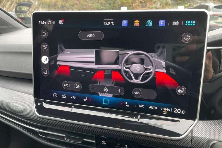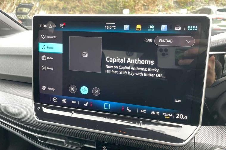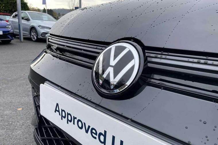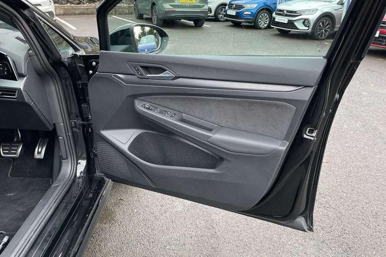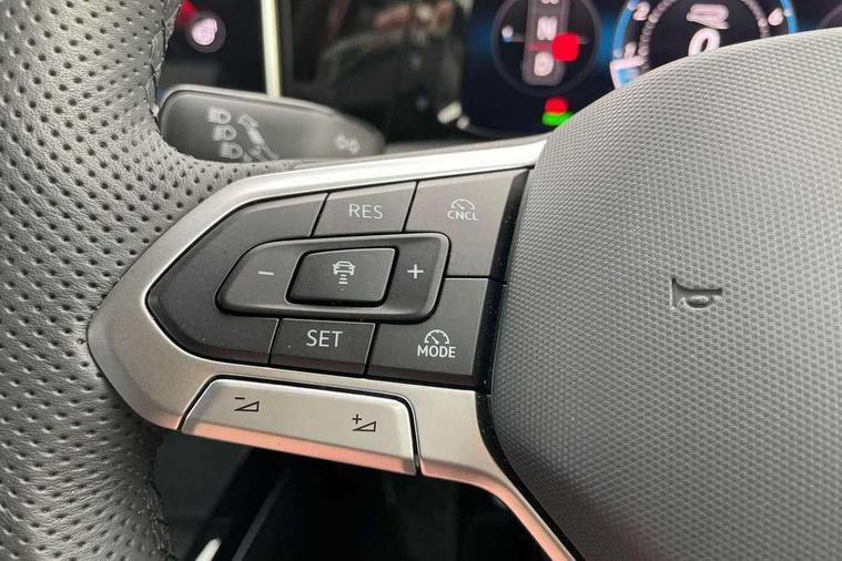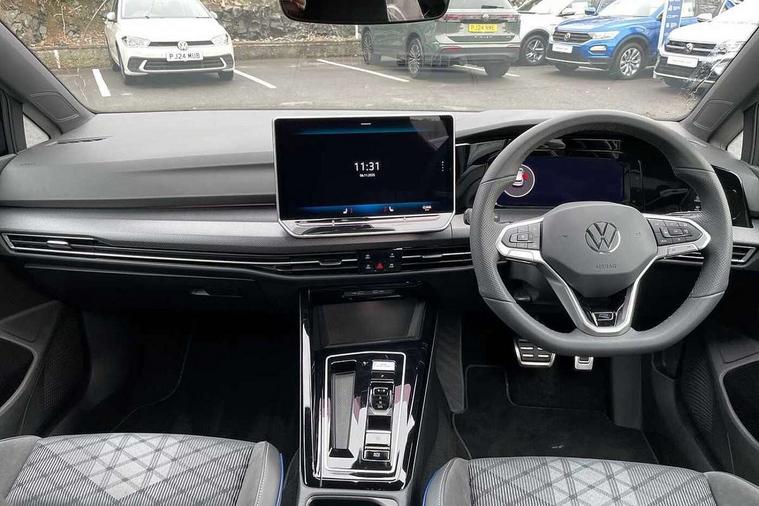 Activated carbon canister, Adaptive cruise control (ACC), Advanced driver attention and drowsiness monitor, Dynamic road sign display, Dynamic steering, E-Sim card for online connectivity, eCall emergency call system, Emergency assist, Lane keeping system Lane Assist, Multi-color Digital cockpit pro, selection of different info profile possible, Multifunction front facing camera for distance control, Navigation system, Oncoming vehicle braking when turning including swerve support, Preparation for light assist system, Speed limiter, Speedo, rev counter, electronic odometer, trip, service interval display, exterior temperature and fuel gauge, Traffic jam assist, Voice enhancer and voice control, Warning signal and warning light for front and rear seatbelts not fastened, We connect plus preparation, We connect preparation, Wireless app connect, Hybrid propulsion system, Petrol Particulate Filter, Start-stop system with battery regeneration (recuperation - energy recovery during braking), XDS electronic differential lock for improved traction and handling, 2 USB C ports in front, 2 USB charging sockets on the centre console in the rear charging capacity upto 45W, Comfort telephony + wireless charging, without wireless aerial connection, Digital radio reception (DAB), Diversity antenna for FM reception, Gaming platform via car app, Infotainment system with 12.9" display, Mobile phone interface with inductive charging feature, 3rd brake light, Auto dimming rear view mirror, Auto headlights, Automatic headlamp activation with Coming home and Leaving home feature, Body colored bumpers in R-Line style, Body colour door handles, Exterior mirrors convex on the left and aspherical on the right, Front and rear electric windows, Heat insulating windshield made of laminated glass, LED daytime running lights, Rain sensor, Rear exhaust tailpipe, Rear fog light on one side and reversing lights on both sides, Rear side wing doors, Rear windscreen washer and wiper with interval delay, Remote electrically foldable door mirrors, puddle lights and reverse activated passenger's door mirror, Volkswagen logo in front, illuminated lighting animation with wake up/goodbye scenario and illuminated door handles, Welcome light with surround lighting, 12V socket in front centre console, 12V socket in luggage compartment, 3 rear head restraints, 3 seat bench in 2nd row, Ambient lighting with 30 colour including LED light unit in front footwell with selectable light colour, Brushed stainless steel pedals, Carpet mats, front and rear, Chrome plated radiator grille inserts, air vent surrounds and light switch surrounds, Front centre armrest, Front seat lumbar support adjuster, Heated front seats, Integrated front head restraints, ISOFIX anchors for child seats on outer rear bench seats and on front passanger seat compatible for i-Size, Luggage compartment lighting, Manual height adjustable front seats, Plastic gear knob, Premium sports seats in front, Rear cupholder and loadthough, Sardegna cloth upholstery with front and outer rear seats Art Velour inner sides of bolsters, Single front passenger seat, Soul black instrument panel, Split folding backrest with centre armrest and unsplit rear seat bench, Storm grey roof lining, Sun visors with illuminated vanity mirrors, Black exterior Styling package with Matrix LED headlights - Golf, Winter package - Golf DSG Estate/Hatchback, 3 point height adj front seatbelts + pretensioners, 3 rear three point seatbelts, ABS, Autonomous emergency braking front assist with pedestrian and cyclist monitoring, Child locks on rear doors, Driver and front passenger airbag with front passenger airbag deactivation, Electronic parking brake with auto hold, ESC (Electronic Stability Control), Extended pedestrian protection measures, Hill start assist, Rear disc brakes, Two tone horn, Tyre pressure loss indicator, Volkswagen roadside assistance, Anti theft wheel bolts, Preparation for alcohol interlock, Decorative inserts carbon grey for dashboard and front door trim panels, 18" Leeds alloy wheels,