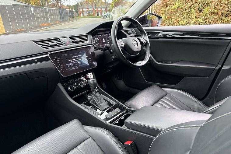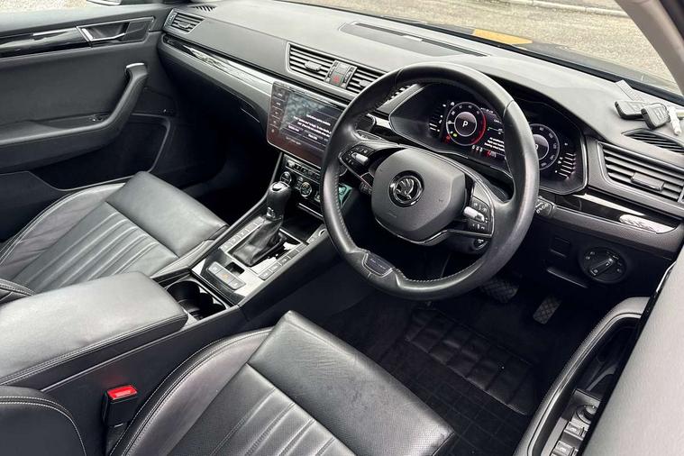 Bluetooth system, CareConnect and Emergency Call, Columbus HDD satellite 3D map navigation with 9.2" colour touch screen, web radio, integrated Wi-Fi, SmartLink+ with Apple CarPlay and Android Auto, Driver fatigue sensor, Electromechanical power steering, Front assist with pedestrian protection, Stop/start engine system and energy recovery, Voice control system, Dynamic chassis control, XDS+, 2 USB ports, Bolero radio with 8" touchscreen display, Canton sound system - 610W 10 channel digital amp with 12 speakers, 200W subwoofer, noise cancellation, digital equaliser and 3D surround sound, DAB Digital radio, Aero front windscreen wipers with intermittent function, Auto dimming rear view mirror, Body colour door mirrors and handles, Chrome grille surround with chorme rib elements, Chrome rear diffuser, Chrome strip between rear lights and lower strip on side doors, Chrome window surround, Cornering front fog lights, Electrically adjustable heated and folding door mirrors with memory function, Front and rear electric windows, Full matrix LED headlights with AFS LED DRL integrated with headlight washer LED rear lights(High function), dynamic indicators and lighting animation, Heated windscreen, Light assistant (coming/leaving home/tunnel light), Privacy glass, Rain sensor, 12v power point in centre console, Electric auxiliary air heater, Electrically adjustable front memory seats including lumbar support, Electrically operated Boot release, Front armrest with storage box, Heated front and rear seats, Height adjustable front and rear head restraints, Ice scraper, Illuminated and cooled glovebox, Interior lights with control switches, Isofix child seat fittings on outer rear seats, One umbrella compartments in driver door with one umbrella in drivers door, Overhead glasses storage compartment, Perforated leather upholstery, Rear centre armrest with cupholders, Removable parcel shelf, Split folding rear seats, Textile floor mat set, Ticket holder on A Pillar, Tri zone climate control, Ventilated front seats, Virtual pedal for boot opening, LED package plus - Superb, 3 rear seatbelts, 7 airbags - Front, front side, curtain, driver's knee airbag with front passenger deactivation switch, Driver and passenger seatbelts with warning light, Electronic parking brake, ESC including ABS, EBV, MSR, ASR, EDS, HBA, DSR, RBS, CBC, multi-collision brake (MKB) and Auto hold, Hill start assist, Tyre pressure monitor, Alarm with interior monitoring tilt sensor and back up horn, Electronic engine immobiliser, Keyless entry and start/stop, Remote central locking with SAFE system, Third remote key, Piano black inserts,