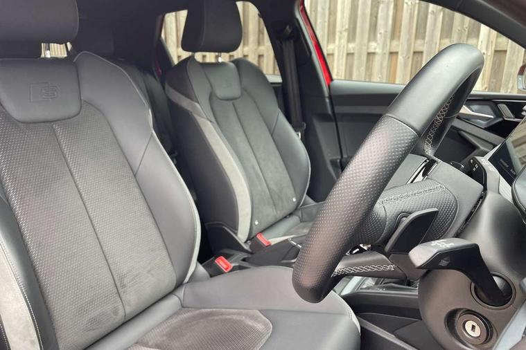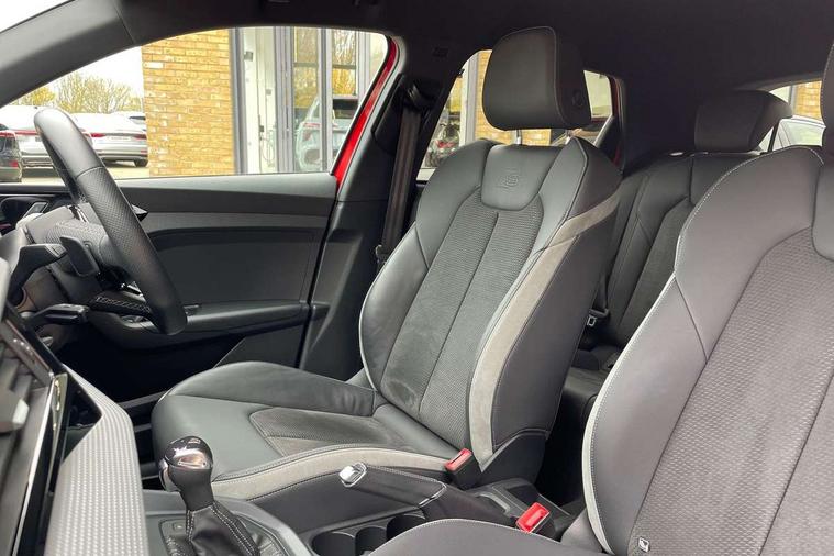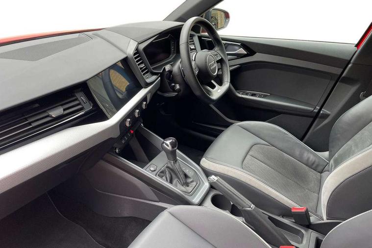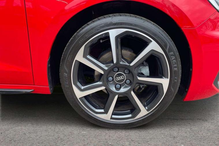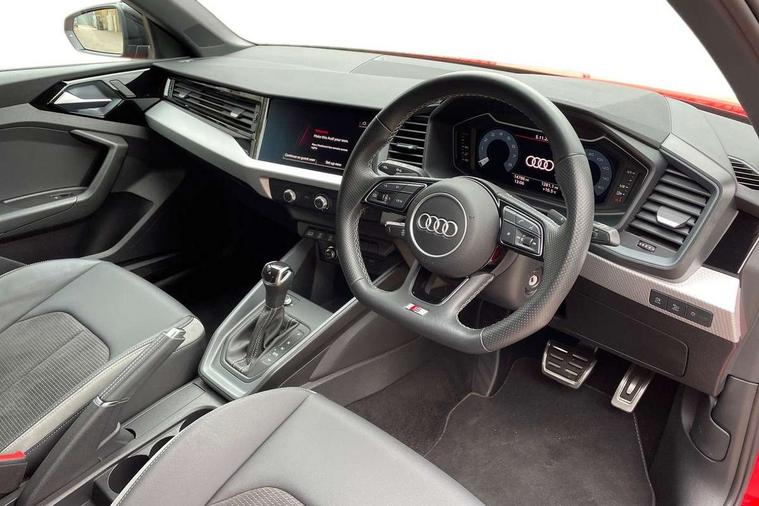 10.25" Digital instrument cluster display classis style instrument dials + speed, odometer, time, outside temperature, telephone menu + fuel level warning, Audi connect safety emergency and service including E-call, Audi drive select - power steering assistance + engine + gear shift 3 preset modes (auto, dynamic, efficiency and an Individual mode), Audi smartphone interface with connect compatible smartphone via USB directly MMI display + Nav, music, third party apps controlled via MMI controller, Automatic start/stop system, Bluetooth interface, Cruise control, Driver's information system, Electromechanical power steering, Lane departure warning system, Service interval indicator, Speed limiter, Voice control system, Washer fluid level indicator, Sports suspension, 1 x SDXC card reader, 2 x USB type C connection points, DAB Digital radio, MMI radio plus with 8.8" colour MMI display screen and MMI touch, Auto dimming rear view mirror, Black door mirrors, Black side skirts, Body coloured bumpers, Door sill trims with aluminium inlays and logo, Electric front and rear windows, Electrically adjustable, heated, folding door mirrors with integrated LED side indicator, Front side air inlets in grained matt black and C frame in titanium black, Heat insulating glass windscreen and side windows, Heated rear windscreen, LED headlights with LED rear lights + dynamic rear indicators + headlight adjustment and high beam, turning light + LED daytime running lights, Radiator protective grille frame in matt aluminium silver, Rain and light sensors, Rear diffuser strip in matt titanium black, Rear fog lights, Rear wiper, Side front spoiler lips in grained matt black, 12V socket in centre console with two cup holders, 3 rear seats with headrests, 3 spoke flat bottomed multi-function plus leather steering wheel with S badging, grips in preforated leather, contrast stitching and paddle shift, 40:60 Split folding rear seat or folded fully, Black cloth headlining, Driver and passenger seat with manual height adjust with forward and backwards adjustment, Front and rear black floor mats with contrast stitching in fine silver, Front head restraints, Height and reach adjustable steering wheel, ISOFIX child seat mounting for front passenger and outer rear seats including top tether attachment point of outer rear seats, Leather gear knob with aluminium trim, Luggage compartment light with front and rear reading lights, Manually adjustable lumbar support in front seats, Stainless steel pedals, Black styling pack - A1 Sportback Black Edition, LED interior lighting pack - A1, Luggage compartment pack - A1, 3x3 point rear seatbelts, Audi pre-sense front with pedestrain and cyclist recognition, Brake assist function, Driver and front passenger airbag with front side and head airbags, Electronic Stability Control including ABS, EBD, ASR and EDL, Front passenger airbag deactivation switch, Hill hold assist, Seatbelt height adjustment for front seats, Seatbelt monitoring, Tyre pressure warning light, Warning triangle and first aid kit, Anti theft alarm, Anti theft wheel bolts and loose wheel warning, Immobiliser, Remote central locking with 2 foldaway keys, Aluminium trim for control switches, air vents and digital instrument cluster, Silver grey inlays polygon structure in diamond paint finish, Structured grey accent areas including air vents, door handle recesses and centre console in quartz paint finish, 18" 7 spoke rotor design alloy wheels in gloss anthracite black, diamond cut finish,