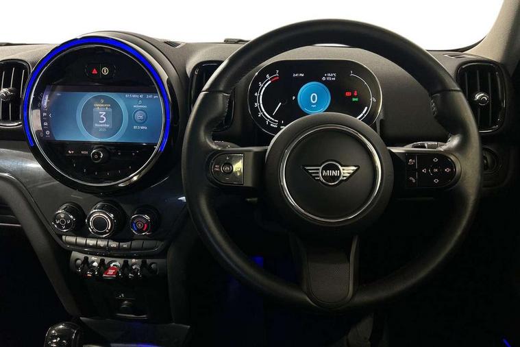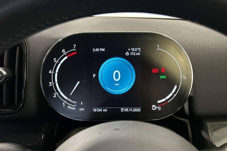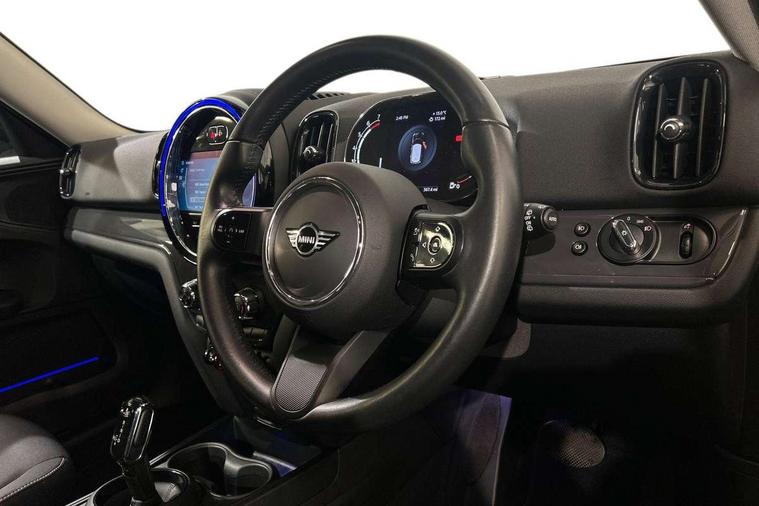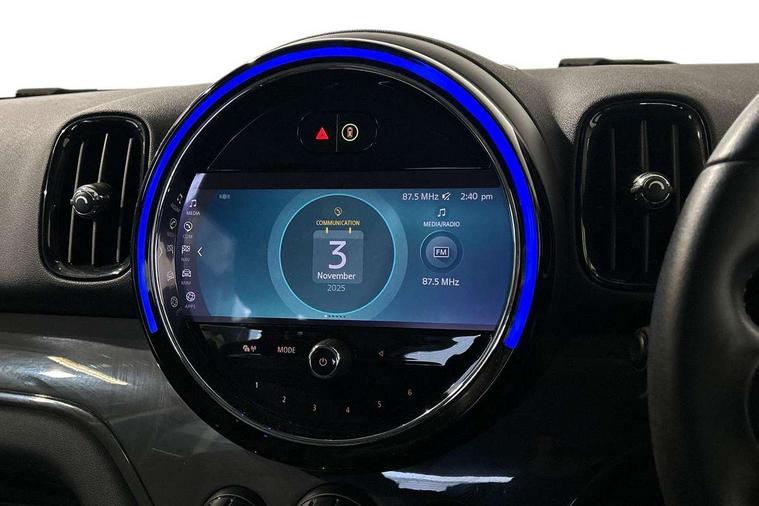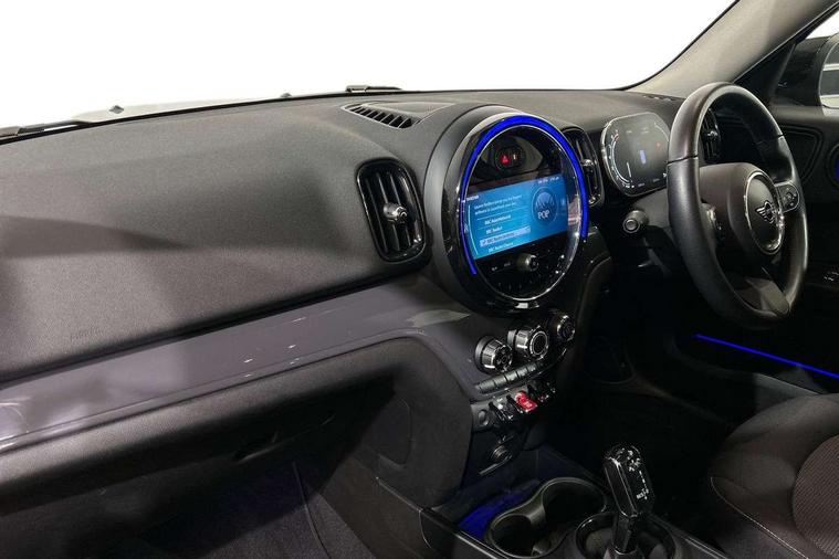 Active Guard incl speed limiting and lane departure functions with auto steering, and front collision warning with brake intervention, Automatic start/stop function with brake energy recuperation, Compatible mobile phone bluetooth with audio streaming, Cruise control with brake assist, Electro-mechanical speed dependant steering assistance, Instrument cluster, On board computer, Rear parking distance control, 51 Litre fuel tank, Double Vanos system, Fully variable valve control, High precision injection, Performance Control, Steptronic transmission with double clutch, 6 speakers, FM tuner and DAB digital radio, Body colour fuel filler cap, Day time driving lights, Door sill strips, Dynamic brake lights, Electric windows, Heated rear window, Heated windscreen washer jets, LED fog lights, LED Headlights, Left exhaust tailpipe with chrome finisher, Model logo, Model logo on Tailgate, Radiator grille, Rain sensor with auto headlights, Rear fog lights, Rear window wiper, Side scuttle panel with integrated indicator, Split rear doors, Sun/heat protection glass, White indicator lenses, 12V socket in centre console, 3 spoke sport leather steering wheel + limiter function and audio controls, 360L luggage compartment capacity, 4 lashing eyes in luggage compartment, 40:20:40 split folding rear seats, Chrome interior highlights, Colour line - Carbon black, Cupholders, English handbook, Floor mats, Front headrests, Glove compartment, Headliner with grab handles and clothes hooks, Height and length steering column adjustment, Interior lighting with 12 basic colours selectable via toggle switch in roof, Isofix rear child seat preparation, Leather gearshift lever and handbrake gaiters, LED reading lights, vanity mirror lights, front foot well light and spotlight on front seats, Manual air conditioning, Mechanical seat adjustment, driver seat height adjust, forward/back and front seats backrest, Multifunction steering wheel, Passenger seat height adjuster, Rear headrests, Storage compartments in doors, Sunvisors with vanity mirrors, Tool kit, Excitement pack - Countryman, Navigation pack - Countryman, 2 tone horn, 3 point seatbelts on all seats, 6 Airbags - front, side, head and seat belt tensioners, Anti-lock braking system (ABS), DSC - Dynamic Stability Control, Electronic handbrake, Front and rear disc brakes, Hill start assist, Tyre pressure monitoring system, Alarm system with tilt sensor, monitoring doors, bonnet interior and tailgate, Auto drive away locking, Deadlocking function, Electronic vehicle immobiliser, Locking wheel bolts, Start/stop toggle with keyless go,