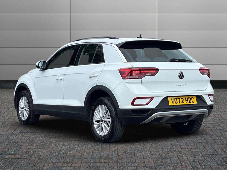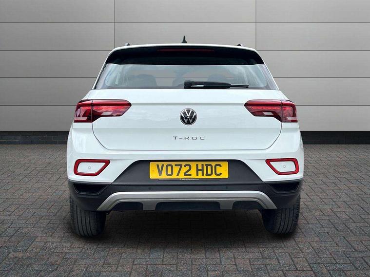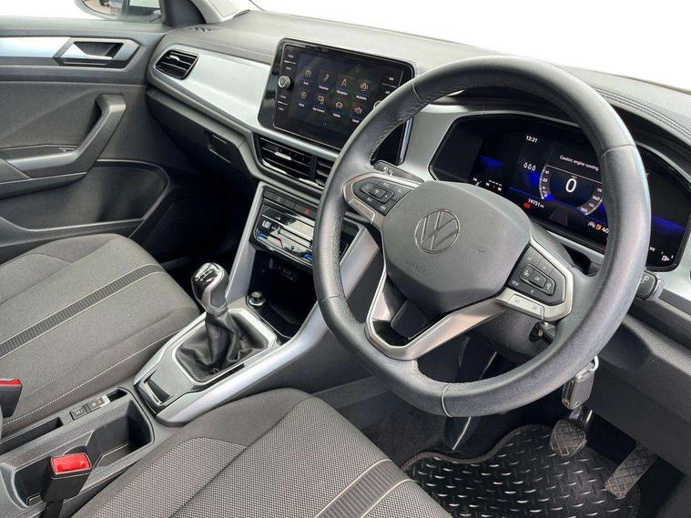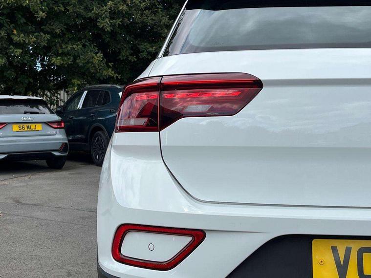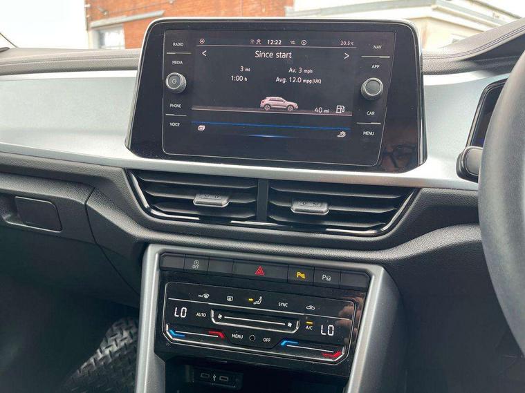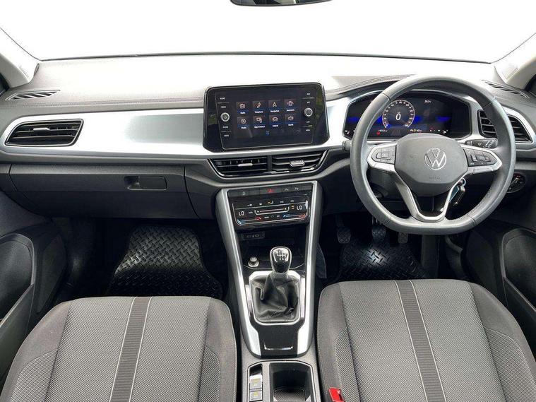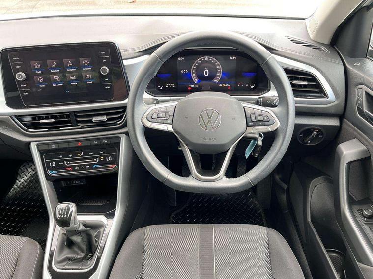 Bluetooth mobile phone interface, Driver alert system with fatigue detection, Driver tips and journey analysis, Emergency call service, Lane keeping system Lane Assist, Modified key software - reduce switch off time for key status change to Long no motion, Online services, Park assist including front and rear parking sensors, Power assisted speed sensitive steering, Service interval indicator, Tailgate/trunk lid release from outside, Think blue trainer driver tips and journey analysis, Warning sound and light for front seatbelts unfastened, Wireless app connect, Battery regeneration during braking, Front shock absorption, Rear shock absorption chassis with increased ride height, Start/stop function with battery regeneration, DAB Digital radio, Diversity antenna for FM reception, Front and rear 6 speakers, Music playback - MP3, WMA and AAC files, Premium USB cable in choice of either Apple or Android smartphone compatibility, SD card slot, Simultaneous pairing of 2 compatible mobile devices, Title and cover art display, We Connect and We Connect Plus functionality, 3rd brake light, Auto dimming interior rear view mirror, Automatic hazard lights activation under emergency braking, Automatic headlight control with LED separate daytime running lights with coming/leaving home function, Black roof rails, Body coloured bumpers and radiator grille with chrome trim and front fog lamps with chrome bezel, Body coloured exterior mirror housings and door handles, Extended roof spoiler, Exterior mirrors aspherical on driver side, convex on front passenger side, External USB type C socket and charging sockets, Front windscreen wiper with intermittent wipe and 4 position delay, Heated rear window, LED Headlights, LED rear combination lamps, LED rear number plate lights, LED tail lamp rear comination lamps, Power windows with comfort operation and circuit breaker, Rain sensor, Rear exhaust tailpipe, Rear fog light on one side and reversing lights on both sides, Rear side wing doors, Rear wash/wipe with intermittent wipe setting, Remote electrically foldable door mirrors, puddle lights and reverse activated passenger's door mirror, 12V power socket in centre console, 3 rear head restraints, 3 seat bench in 2nd row, 4 load lashing points in luggage compartment, Air care climatronic air conditoning system with active combination filter and 2-zone temperature control, Ambient lighting with mirror logo projection, Cloth upholstery, Door and side trim panel in cloth, Drawer under drivers seat, Driver/front passenger seat height adjustment, Front centre armrest, Front comfort sports seats, Front cupholders x 2, Front reading light, Instrument lighting, white adjustable panel illumination, Interior light delay, Isofix child seat preparation, Leather gearshift handle, Load-through provision with cup holder when folded down ('Unsplit rear seat bench, split folding backrest, with centre armrest), Luggage compartment lighting, Lumbar support for driver's and front passengers seat, Non-folding front passenger seat backrest, Single front passenger seat, Storage compartment in left and right luggage area, Storage compartment in rear doors, Storage compartments in driver and front passenger doors, Sunvisors with illuminated vanity mirrors, Variable boot floor, height adjustable and removable, Driver assistance pack without proactive passenger protection - T-Roc, 3 point height adj front seatbelts + pretensioners, 3 point seatbelts in outer rear with ECE label, ABS, Child locks on rear doors, Driver and front passenger airbag with front passenger airbag deactivation, Driver and front passenger safety-optimised head restraints, Drivers seatbelt reminder, Electronic parking brake, Electronic Stability Control (ESC) inc EDL (Electronic Differential Lock) and ASR (Traction Control), Front and rear passengers curtain airbag system including front side airbags, Front assist with city emergency braking and pedestrian monitoring, Front disc brakes, Front seat side impact airbags, Hill start assist, Predictive pedestrian protection, Rear disc brakes, Single tone horn, Tyre pressure loss indicator, Volkswagen roadside assistance, Alarm with interior protection, Anti-theft alarm system with interior monitoring, backup horn, and towing protection, Remote central locking with SAFELOCK, radio remote control with 2 remote control folding keys, Pewter matt decorative inserts for intrument panel, centre console and door panels at the front, Trims for alloy wheels,