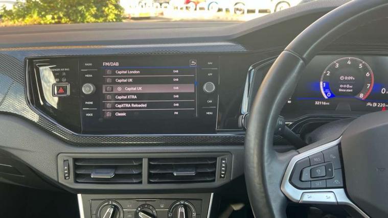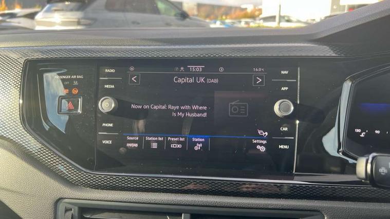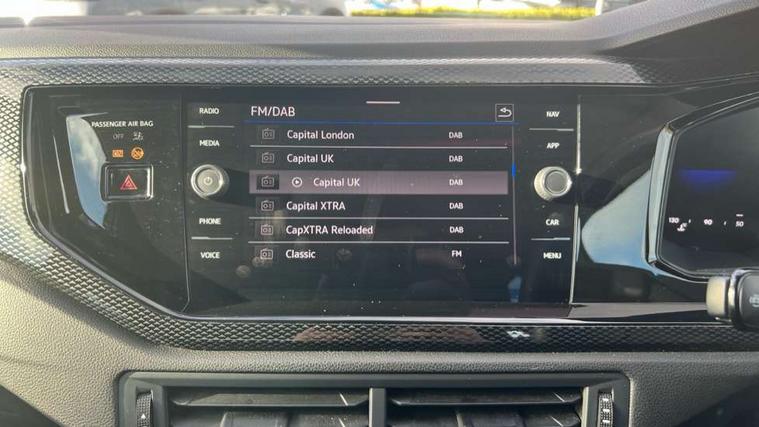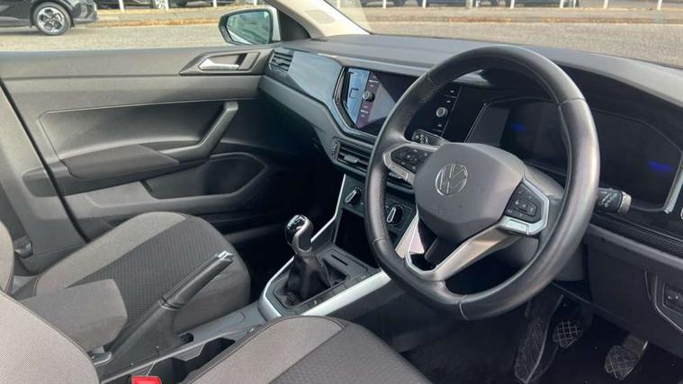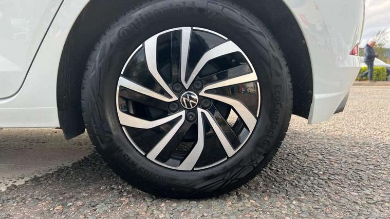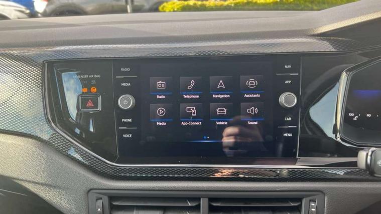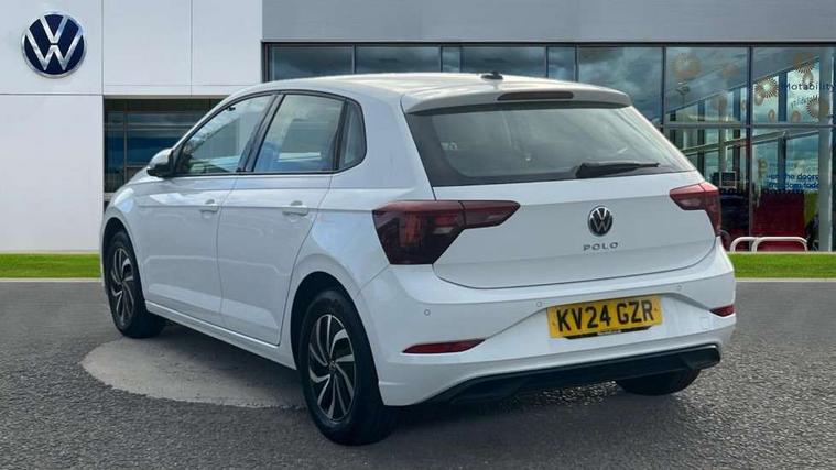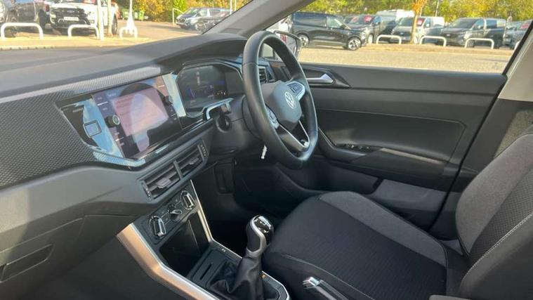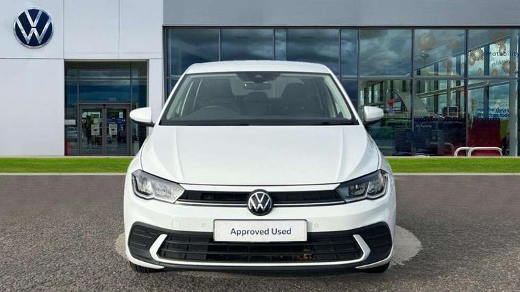 Adaptive cruise control without follow-to-stop and speed limiter, Advanced driver attention and drowsiness monitor, Bluetooth mobile phone interface, Dynamic road sign display, Emergency call service, Power assisted speed sensitive steering, Preparation for navigation system with media and internet package, Preparation for We connect and We connect plus, Speedo and rev counter, electronic odometer, trip, service interval display and exterior temperature gauge, Standard rear axle, Travel Assist - Lane keeping system and traffic jam assist, Travel assist including emergency assist, Trip computer, Warning signal and warning light for front and rear seatbelts not fastened, Washer fluid level indicator, Wireless app connect, Front wheel drive, Rear shock absorpion, Start-stop system with battery regeneration (recuperation - energy recovery during braking), DAB Digital radio, Diversity antenna for FM reception, Front and rear 6 speakers, Automatic dimming interior rear view mirror, Automatic headlight control with LED separate daytime running lights with coming/leaving home function, Body colour bumpers with chrome inserts, Body colour door handles, Body colour door mirrors, Electric front windows, Engine badge deletion, Headlight range adjustment, Heat insulating and laminated safety glass windshield, Heat insulating darkened glass in side and rear windows, Heat insulating glass windscreen, LED Headlights, LED rear combination lamps, Power folding adjustable/heated exterior mirrors and front passenger exterior mirror lowering function, Rain sensor, Rear electric windows, Rear fog light, Rear side wing doors, Rear windscreen washer and wiper with interval delay, Third brake light, 12V power socket in centre console, 2 front and 2 rear reading lights with switch off delay and dimmer, 2 USB-C ports in the front, 2 USB-C charging sockets on the center console in the rear, 3 rear head restraints, 60/40 split folding rear seat and rear seat bench not split, Ceramique roof lining, Chrome plated radiator grille inserts, air vent surrounds and light switch surrounds, Door and side trim panel, Driver and front passenger seat height adjustment, Driver/passenger sunvisors with illuminated vanity mirrors, Front centre armrest, Front seat backrest storage pockets, Front standard seats, Handbrake lever handle in leather, Hartley/Thomas cloth upholstery, Headliner in recycled material, Isofix child seat preparation easy-fit (for two outer rear seats, and front passenger seat) compatible with I-size, Leather trimmed gear knob, Luggage compartment cover, Luggage compartment lighting, Removable luggage compartment floor, Single front passenger seat, Standard climatic zones, Standard pedal cluster, Three spoke leather wrapped multifunction steering wheel, Light and vision pack - Polo, 3 point height adj front seatbelts + pretensioners, 3x3 point rear seatbelts, ABS, Driver and front passenger airbag with front passenger airbag deactivation, Drivers and front passengers safety optimised head restraints, ESC (Electronic stability control) + EDL (Electronic Differntial lock) and ASR (Traction control), Extended and predictive pedestrian/ cyclist protection, Front assist with autonomous emergency braking (for Adaptive Cruise Control ACC up to 130 mph), Front curtain and side airbags with center airbag, Front disc brakes, Hill hold control, Manual child lock in rear doors, Rear drum brakes, Single tone horn, Tyre pressure loss indicator, Alarm with interior protection, Anti-theft alarm system with interior monitoring, backup horn, and towing protection, Anti-theft wheel bolts, Electronic engine immobiliser, Lava stone black gloss/matt decorative inserts in dash and front door panels, Low rolling resistance tyres,