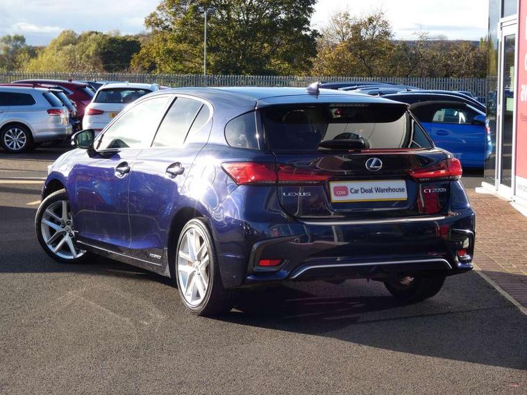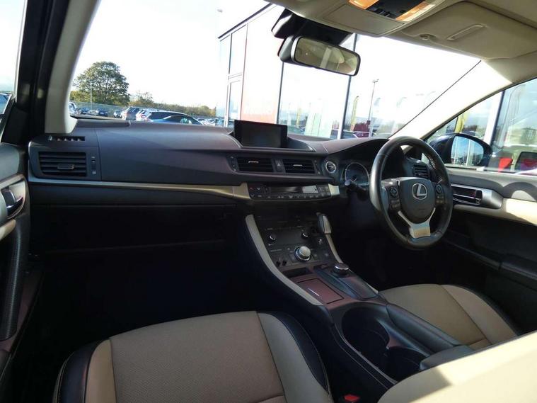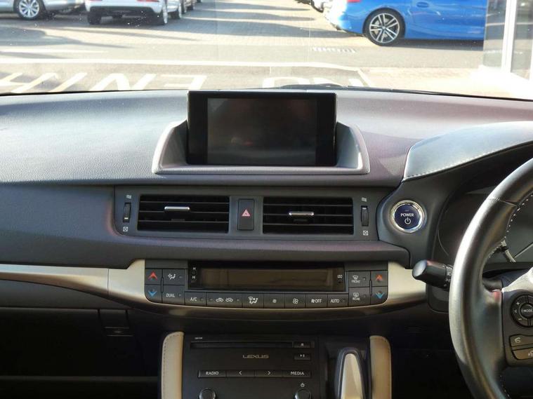 7" colour screen, Adaptive cruise control, Bluetooth telephone connectivity, Drive mode selector, Front and rear parking sensors, Lexus Navigaton System, Push button starter, Reversing camera, Speed sensitive power steering, Traffic sign recognition, Trip computer, Vehicle Dynamics Integrated Management, Vehicle Stability Control (VSC), 6 speakers, Auxiliary input socket, DAB Digital radio, Radio/CD + MP3, Steering wheel audio controls, USB connection, Adaptive rear spoiler, Auto high beam, Black scuff plates, Body colour bumpers, Door mirror puddle lights, Electric adjustable door mirrors, Electric folding door mirrors, Front and rear electric windows, Front fog lights, Green tinted UV reducing windscreen glass, Heated door mirrors, LED brake lights, LED daytime running lights, LED tail lights, Privacy glass (rear side windows and rear screen), Rain sensor windscreen wipers, Rear diffuser, Rear wiper, Shark fin roof aerial, 2 cupholders in front centre console, 4 load securing hooks in luggage area, 5 headrests, 60/40 split folding rear seat, Carpet mats, Centre arm rests, Driver/passenger sunvisors with illuminated vanity mirrors, Dual zone climate control, Fabric/Tahara leather upholstery, Front door pockets, Heated front seats, Illuminated entry system, Isofix child seat attachment, Leather steering wheel, Manually adjustable front seats - 6 way driver/4 way passenger, Map pocket on front seat backs, Rear armrest, Rear coat hook, Storage compartment in centre console, Storage compartment under load area floor, Tilt/telescopic adjustable steering wheel, ABS, Brake assist function, Curtain shield airbag, Driver and passenger side airbags, Drivers knee airbag, Dual stage driver/passenger airbags, Electronic brake force distribution, Front seatbelt pretensioner, Hill start assist control (HAC), Passenger airbag cut-off device, Passenger knee airbag, Pre crash system, Seatbelt warning, Sway warning system, Three 3 point rear seatbelts, Traction control, Tyre pressure warning, WHIPS whiplash protection system - front, Anti theft system, Double locking, Immobiliser, Intrusion sensor and alarm, Locking wheel nuts, Remote central locking, Smart entry + Smart start, Speed sensitive power door locks, VIN Window etching, Space saver spare wheel,