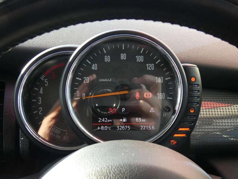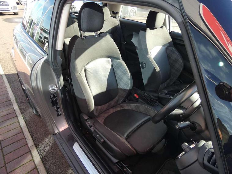 Acoustic seat-belt warning, Brake fluid level warning light, Brake pad wear indicator warning light, DTC - Dynamic traction control, Exterior temperature gauge, Intelligent emergency call, MINI TeleServices, Oil level indicator, On board computer, Push button starter, Service interval indicator, Servotronic PAS, Diesel particulate filter, Electronic differential lock, Auxiliary input socket, DAB digital radio module, 2 speed wipers+intermittent wipe, Aluminium tailgate, Anti dazzle mirror, Anti trapping/one touch open close front windows, Body coloured bumpers, Chrome bezels around rear lights and headlights, Chrome door handles, Chrome exhaust tailpipe, Chrome plated radiator grille, Chrome plated trim on bottom edge of window, Chrome strip on lower grille, Electric front windows, Electrically adjustable door mirrors, Flared wheel arches, Follow me home headlights, Green tinted heat insulating glass, Heated door mirrors/heated windscreen washers, Heated rear window with auto timer, Metal look door sill finishers, Rear wiper, Roof spoiler in roof colour, 2 rear head restraints, 4 boot load lashing points, 4 way manually adjustable passenger seat with height, reach, tilt, backrest and headrest, 6-way manually adjustable driver's seat, Active carbon filter, Air recirculation system, Auxiliary socket in centre console storage compartment, Centre console storage, Driver's seat height adjuster, Driver/passenger sunvisors, Easy entry seats, Front and rear cupholders, Front head restraints, Front interior light, Front passenger grab handle, Gear/selector and handbrake in artificial leather, Internal chrome door handles, Isofix child seat preparation, Luggage compartment lighting, Reach + rake adjustable steering column, Rear grab handles, Rear storage trays, Split folding rear seats, Storage compartments in doors, Toolkit in luggage compartment, Vanity mirrors, 3 point seatbelts, ABS/EBD, ASC+T, Cornering brake control (CBC), Crash Sensor - activates hazard/interior lighting + unlocks doors, Driver and passenger airbags, Driver/front passenger side airbags, DSC - Dynamic Stability Control, Fuel cut off safety device, Head airbags, Hill start assist, Passenger airbag deactivation system, Seatbelt pretensioners, Tyre pressure warning, Ventilated front disc brakes, Drive away door locking, Locking wheel bolts, Remote central locking/doors+fuel cap+tailgate, Second remote key, Thatcham category 1 alarm + immobiliser,
