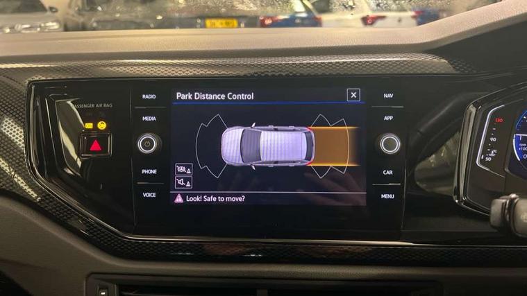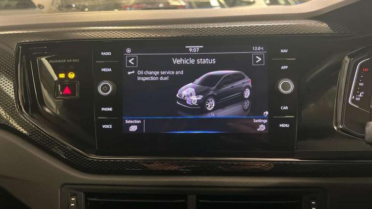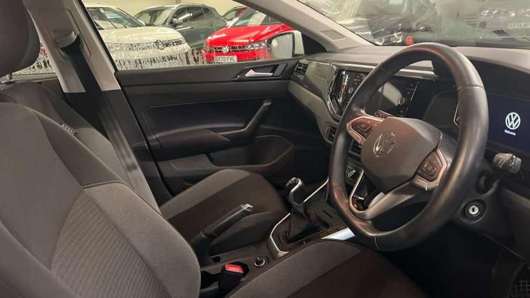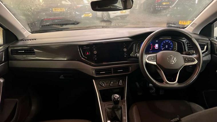 Adaptive cruise control without follow-to-stop and speed limiter, Bluetooth mobile phone interface, Driver alert system, Emergency call service, Front assist system, Power assisted speed sensitive steering, Preparation for We connect and We connect plus, Speedo and rev counter, electronic odometer, trip, service interval display and fuel gauge, Standard rear axle, Travel Assist - Lane keeping system and traffic jam assist, Travel assist including emergency assist, Trip computer, Warning signal and warning light for front and rear seatbelts not fastened, Washer fluid level indicator, Wireless app connect, Front wheel drive, Rear shock absorpion, Start-stop system with battery regeneration (recuperation - energy recovery during braking), DAB Digital radio, Diversity antenna for FM reception, Front and rear 6 speakers, Automatic dimming interior rear view mirror, Body colour bumpers, Body colour door handles, Body colour door mirrors, Electric front windows, Heat insulating darkened glass in side and rear windows, Heat insulating glass windscreen, Power folding adjustable/heated exterior mirrors and front passenger exterior mirror lowering function, Rain sensor, Rear electric windows, Rear fog light, Rear side wing doors, Rear windscreen washer and wiper with interval delay, Third brake light, 12V power socket in centre console, 2 front and 2 rear reading lights, 2 USB-C ports in the front, 2 USB-C charging sockets on the center console in the rear, 3 rear head restraints, 60/40 split folding rear seat and rear seat bench not split, Ceramique headliner, Chrome plated radiator grille inserts, air vent surrounds and light switch surrounds, Door and side trim panel, Driver and front passenger seat height adjustment, Driver/passenger sunvisors with illuminated vanity mirrors, Front centre armrest, Front seat backrest storage pockets, Front standard seats, Handbrake lever handle in leather, Hartley/Thomas cloth upholstery, Isofix child seat preparation easy-fit (for two outer rear seats, and front passenger seat) compatible with I-size, Leather trimmed gear knob, Luggage compartment cover, Luggage compartment floor, Luggage compartment lighting, Multifunction steering wheel, Single front passenger seat, Standard pedal cluster, Light and vision pack - Polo, 3 point height adj front seatbelts + pretensioners, 3x3 point rear seatbelts, ABS, Driver and front passenger airbag with front passenger airbag deactivation, Drivers and front passengers safety optimised head restraints, ESC (Electronic stability control) + EDL (Electronic Differntial lock) and ASR (Traction control), Extended and predictive pedestrian/ cyclist protection, Front curtain and side airbags with center airbag, Front disc brakes, Hill hold control, Manual child lock in rear doors, Rear drum brakes, Single tone horn, Tyre pressure loss indicator, Alarm with interior protection, Anti-theft alarm system with interior monitoring, backup horn, and towing protection, Anti-theft wheel bolts, Electronic engine immobiliser, Lava stone black gloss/matt decorative inserts in dash and front door panels, Low rolling resistance tyres,