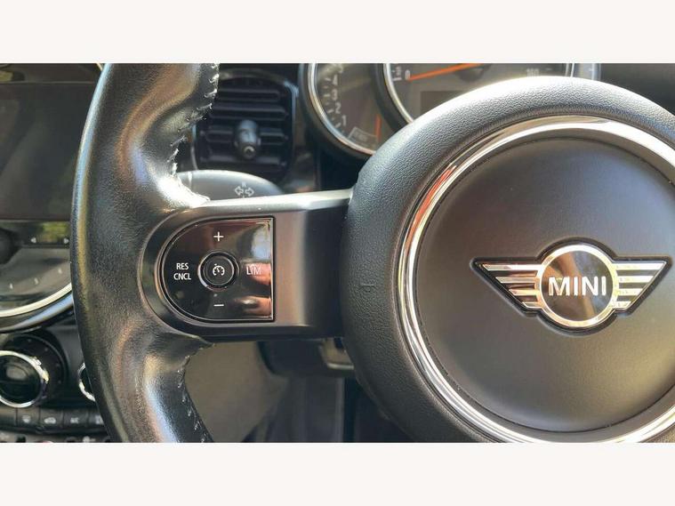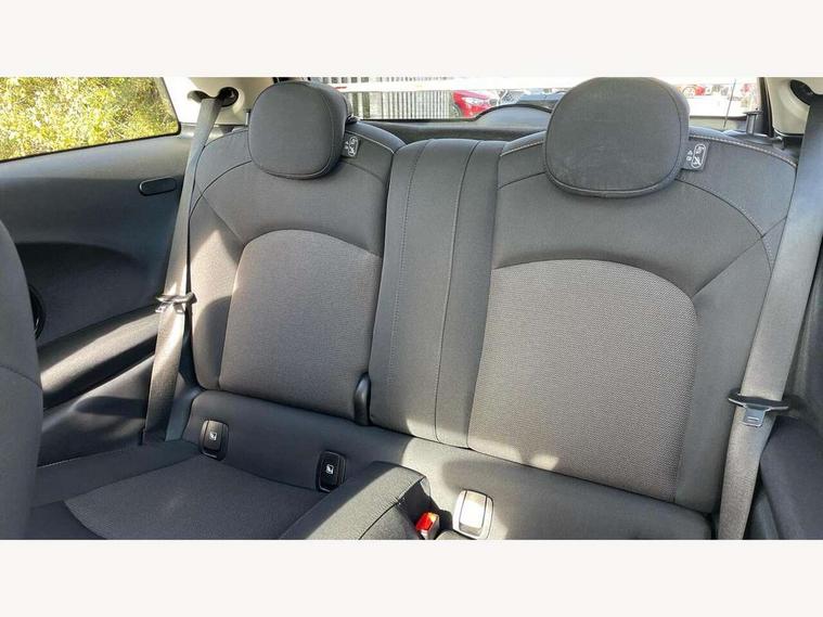 Automatic start/stop function with brake energy recuperation, Compatible mobile phone bluetooth with audio streaming, Cruise control with brake assist, Electro-mechanical speed dependant steering assistance, Flexible car sharing preparation, Instrument cluster, Mini E-call, MINI TeleServices, On board computer, Service interval indicator, 6 Speed manual transmission including gear change indicator display, Double Vanos system, Fully variable valve control, High precision injection, Performance Control, 4 speakers in front door trims and underneath front seats, 8.8" touchscreen with LED ring, FM tuner and DAB digital radio, Automatic headlight activation switch, Body colour fuel filler cap, Chrome border high gloss black slats radiator grille, Dynamic brake lights, Electric front windows, Exhaust tailpipe on left with chrome finisher, Heated rear window, Heated windscreen washer jets, LED headlight with closed ring and daytime driving lights, Metal door sill strips with MINI imprint, Model logo Cooper on right of tailgate, Rain sensor window wipers, Rear fog lights, Rear LED lights with union jack design, Rear window wiper, Side scuttle panel with integrated indicator, Sun/heat protection glass, White indicator lenses, 12V Accessory socket in centre console, 4 lashing eyes in luggage compartment, 60/40 split folding rear seat, Ambient lighting, Carbon black colour line - Knee roll and door armrest, Chrome interior highlights, Cupholders, Front and rear head restraints, Front and rear isofix with front passenger airbag deactivation, Glove compartment, Height and length steering column adjustment, Interior lighting with 12 different colours across the dashboard, underneath door bezel with illuminated laser-engraved design on central display, Leatherette gearshift lever and handbrake gaiters, LED reading lights, vanity mirror lights, front foot well light and spotlight on front seats, Manual air conditioning, Mechanical seat adjustment - forward/back & backrest for front seats and driver seat height adjust, Multifunction steering wheel, Passenger seat height adjuster, Satellite grey headlining including grab handles and clothes hooks, Sport leather steering wheel with speed limiter and audio/communication controls, Storage compartments in doors, Sunvisors with vanity mirrors, Velour floor mats, 3 point seatbelts on all four seats, 6 Airbags - front, side, head and seat belt tensioners, Anti-lock braking system (ABS), DSC - Dynamic Stability Control, Front and rear disc brakes, Single tone fanfare horn, Tyre pressure monitoring system, Alarm system with tilt sensor, monitoring doors, bonnet interior and tailgate, Electronic vehicle immobiliser, Start/stop toggle with keyless go, Piano black interior trim, Tool kit, Tyre repair kit,
