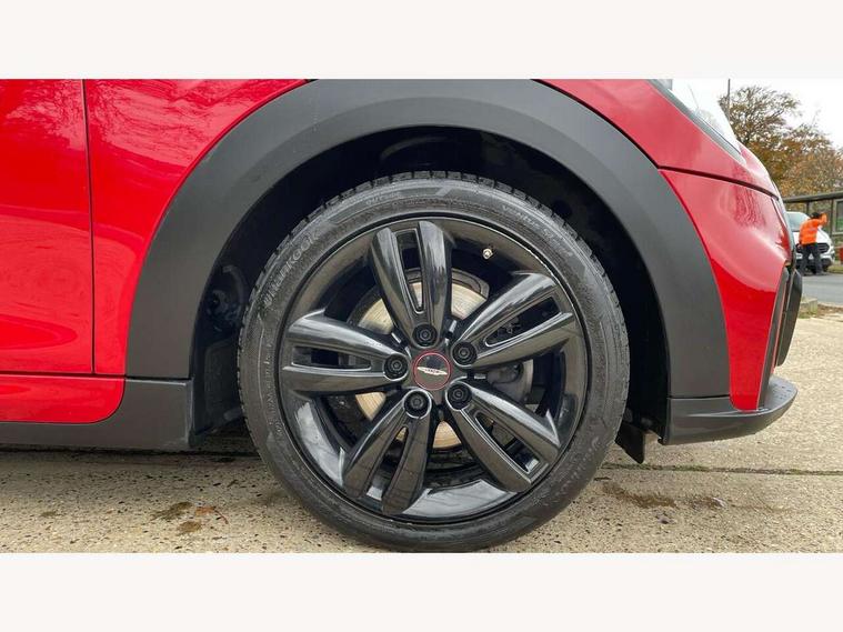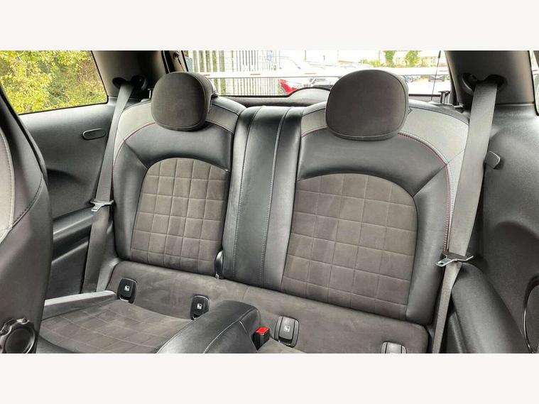 Automatic start/stop function with brake energy recuperation, Compatible mobile phone bluetooth with audio streaming, Cruise control with brake assist, Electro-mechanical speed dependant steering assistance, Flexible car sharing preparation, Instrument cluster, MINI Driving Modes - centre toggle switch to control driving setting (sport, mid and green), Mini E-call, MINI TeleServices, On board computer, Rear park distance control, Service interval indicator, 6 Speed manual transmission including gear change indicator display, Adaptive suspension, Double Vanos system, Fully variable valve control, High precision injection, Performance Control, 4 speakers in front door trims and underneath front seats, 8.8" touchscreen with LED ring, FM tuner and DAB digital radio, Automatic headlight activation switch, Body colour fuel filler cap, Chrome border high gloss black slats radiator grille, Dynamic brake lights, Electric front windows, Exhaust tailpipe on left with chrome finisher, Heated rear window, Heated windscreen washer jets, JCW Aerodynamic kit - Front and rear bumpers with sporty JCW styling and part-painted side sills with MINI John Cooper Works door sill finishers, John Cooper Works rear spoiler, LED headlight with closed ring and daytime driving lights, Metal door sill strips with MINI imprint, Model logo Cooper on right of tailgate, Rain sensor window wipers, Rear fog lights, Rear LED lights with union jack design, Rear window wiper, Side scuttle panel with integrated indicator, Sun/heat protection glass, White indicator lenses, 12V Accessory socket in centre console, 4 lashing eyes in luggage compartment, 60/40 split folding rear seat, Anthracite headliner including grab handles and clothes hooks, Carbon black colour line - Knee roll and door armrest, Chrome interior highlights, Cupholders, Front and rear isofix with front passenger airbag deactivation, Glove compartment, Height and length steering column adjustment, Interior lighting with 12 different colours across the dashboard, underneath door bezel with illuminated laser-engraved design on central display, JCW Sport seats with integrated headrests, adjustable thigh support and John Cooper Works logo, Leatherette gearshift lever and handbrake gaiters, LED reading lights, vanity mirror lights, front foot well light and spotlight on front seats, Manual air conditioning, Mechanical seat adjustment - forward/back & backrest for front seats and driver seat height adjust, Multifunction steering wheel, Passenger seat height adjuster, Storage compartments in doors, Sunvisors with vanity mirrors, Velour floor mats, Walknappa leather steering wheel with grey seam and John Cooper Works badge on Piano Black lower steering wheel spoke, Piano black exterior pack - Mini Hatchback Cooper, 3 point seatbelts on all four seats, 6 Airbags - front, side, head and seat belt tensioners, Anti-lock braking system (ABS), DSC - Dynamic Stability Control, Front and rear disc brakes, Single tone fanfare horn, Tyre pressure monitoring system, Alarm system with tilt sensor, monitoring doors, bonnet interior and tailgate, Electronic vehicle immobiliser, Start/stop toggle with keyless go, Piano black interior trim, Tool kit,