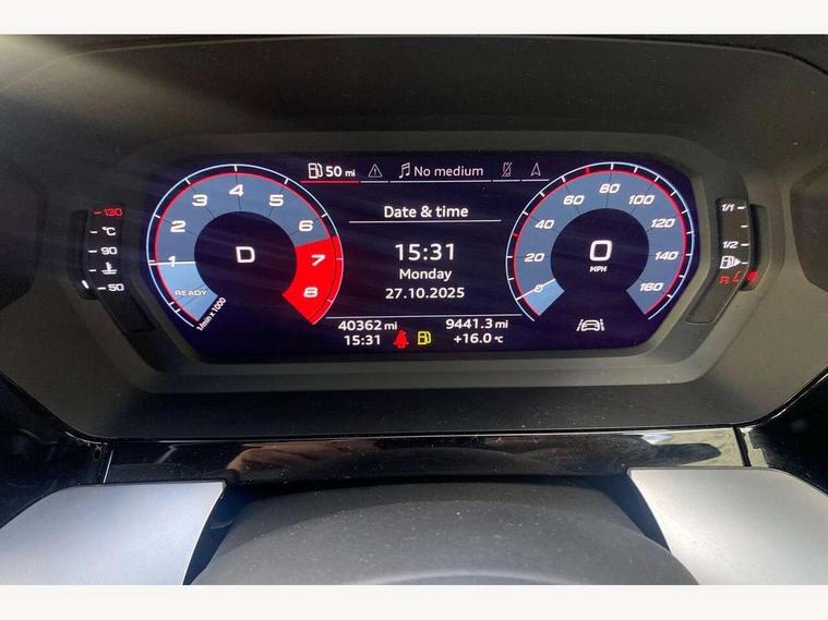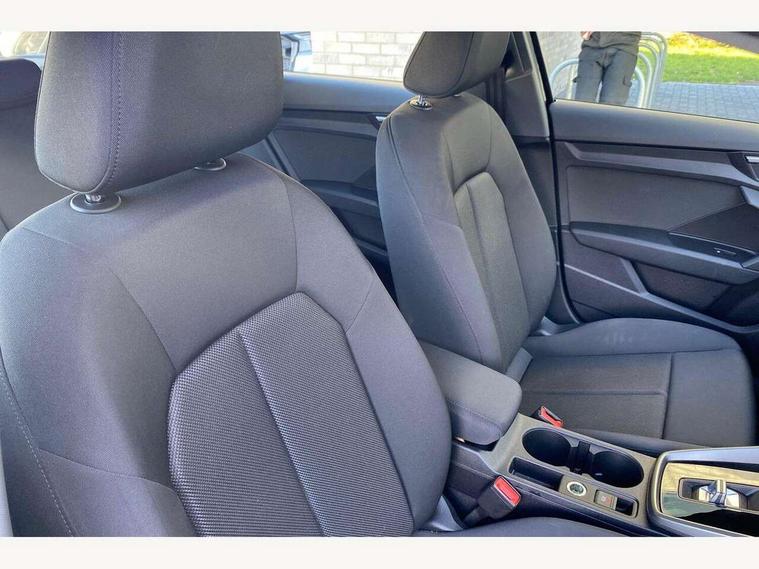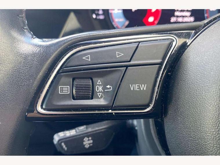 Audi connect emergency call and service, Audi smartphone interface, Audi Virtual Cockpit - 10.25" digital and colour instrument cluster, Automatic start/stop system with recuperation, Bluetooth interface, Collision avoidance assistant, Electromechanical power speed sensitive steering, Lane departure warning system, MMI Navigation Plus with high resolution 10.1" colour touch screen display, Service indicator, Trip computer, Voice control system with natural language interaction, Standard suspension, 1xUSB-A and 1xUSB-C connection, 6 passive loudspeakers, DAB Digital radio, Acoustic glass windscreen, Auto dimming frameless rear view mirror, Body colour exterior mirrors, Body colour front spoiler blade, Body colour roof spoiler, Electrically adjustable/heated/folding/auto dimming door mirrors with integrated LED indications + kerb view function for passenger side, Front electric windows, LED daytime running lights, LED headlights and halogen rear lights, Light and rain sensors, Radiator grille and frame in grained matt black and honeycomb look, Rear diffuser in grained matt black, Rear electric windows, Rear side air outlets in grained matt black, Rear window, rear door windows and rear side windows in clear glass, Rear wiper, Side air inlets in grained matt black, 12V socket and storage compartment in front centre console, 3 spoke leather multifunction steering wheel with paddle shift, 60/40 split folding rear seat bench, Front and rear headrests, Front centre armrest, Front/rear floor mats, Height and reach adjustable steering wheel, Interior lighting - Front and rear roof module including reading lights, glove compartment light and right hand side, Luggage compartment floor covering, Manual air conditioning, Manual boot compartment lid, Manually adjustable front seats, Seat side bolsters, Steel grey cloth headlining, 3x3 point rear seat belts, Driver and front passenger airbag with passenger airbag deactivation, Electronic Stabilisation Control (ESC) including ABS, ASR and EDL, First aid kit with warning triangle and 2 safety vests, Hill hold assist, Pre-sense front with pedestrian and cyclist detection, Seatbelt monitoring, Tyre pressure loss indicator, Anti theft alarm, Anti-theft wheel bolts, Electronically operated child lock, Immobiliser, Remote control central locking, Black decorative window trim, Inlays with silk effect paint in platinum grey, 16" 5 double arm alloy wheels,