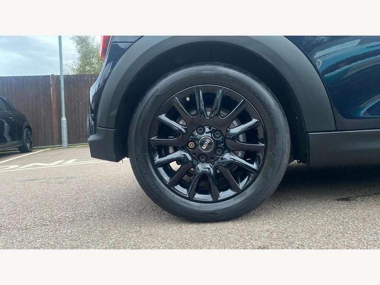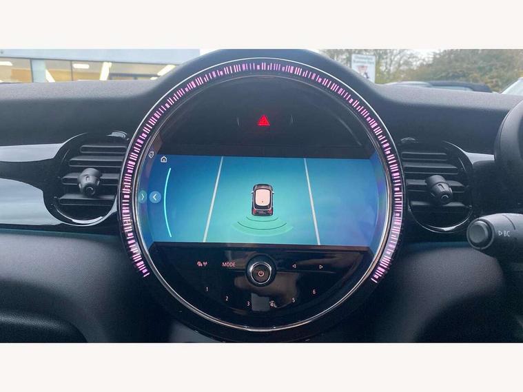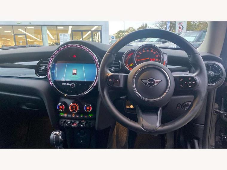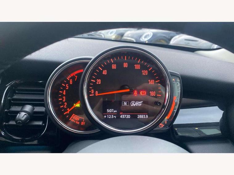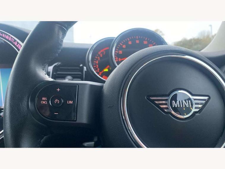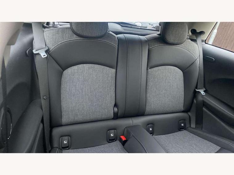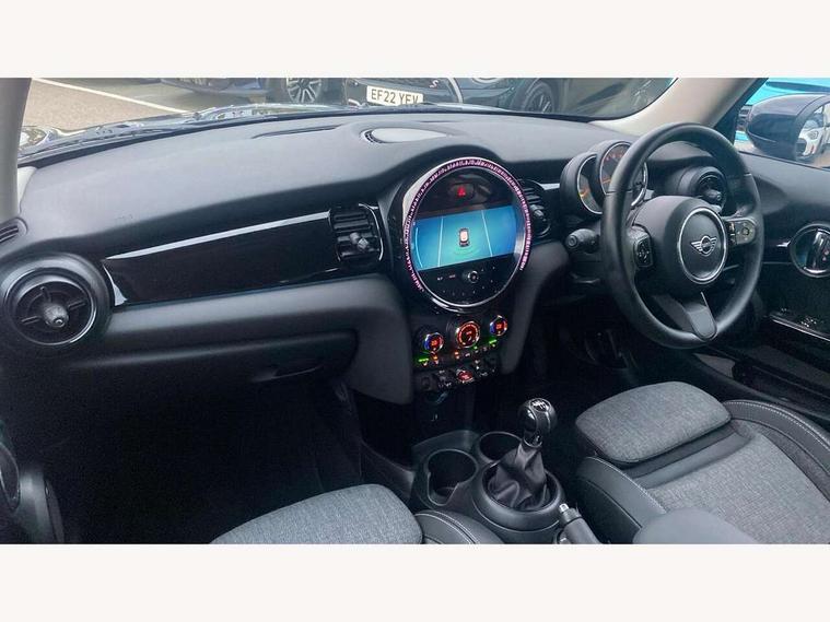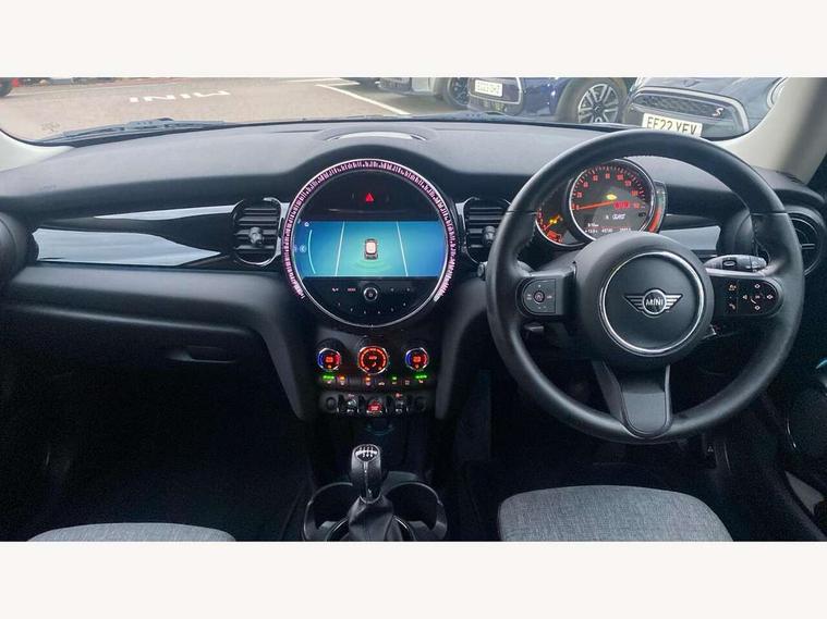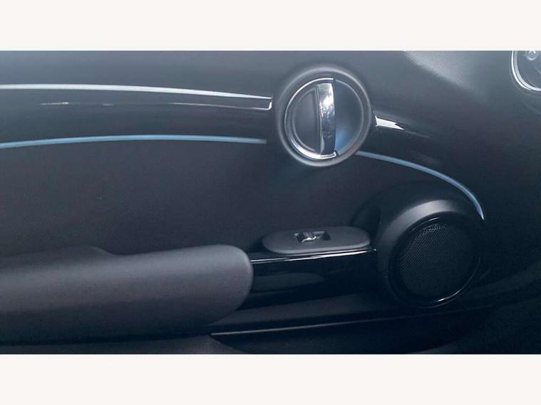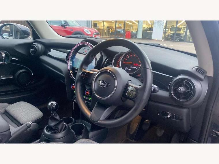 Automatic start/stop function with brake energy recuperation, Compatible mobile phone bluetooth with audio streaming, Cruise control with brake assist, Electro-mechanical speed dependant steering assistance, Flexible car sharing preparation, Instrument cluster, Mini E-call, MINI TeleServices, On board computer, Service interval indicator, 6 Speed manual transmission including gear change indicator display, Double Vanos system, Fully variable valve control, High precision injection, Performance Control, 4 speakers in front door trims and underneath front seats, 8.8" touchscreen with LED ring, FM tuner and DAB digital radio, Automatic headlight activation switch, Body colour fuel filler cap, Chrome border high gloss black slats radiator grille, Dynamic brake lights, Electric front windows, Exhaust tailpipe on left with chrome finisher, Heated rear window, Heated windscreen washer jets, LED headlight with closed ring and daytime driving lights, Metal door sill strips with MINI imprint, Model logo Cooper on right of tailgate, Rain sensor window wipers, Rear fog lights, Rear LED lights with union jack design, Rear window wiper, Side scuttle panel with integrated indicator, Sun/heat protection glass, White indicator lenses, 12V Accessory socket in centre console, 4 lashing eyes in luggage compartment, 60/40 split folding rear seat, Ambient lighting, Carbon black colour line - Knee roll and door armrest, Chrome interior highlights, Cupholders, Front and rear head restraints, Front and rear isofix with front passenger airbag deactivation, Glove compartment, Height and length steering column adjustment, Interior lighting with 12 different colours across the dashboard, underneath door bezel with illuminated laser-engraved design on central display, Leatherette gearshift lever and handbrake gaiters, LED reading lights, vanity mirror lights, front foot well light and spotlight on front seats, Manual air conditioning, Mechanical seat adjustment - forward/back & backrest for front seats and driver seat height adjust, Multifunction steering wheel, Passenger seat height adjuster, Satellite grey headlining including grab handles and clothes hooks, Sport leather steering wheel with speed limiter and audio/communication controls, Storage compartments in doors, Sunvisors with vanity mirrors, Velour floor mats, 3 point seatbelts on all four seats, 6 Airbags - front, side, head and seat belt tensioners, Anti-lock braking system (ABS), DSC - Dynamic Stability Control, Front and rear disc brakes, Single tone fanfare horn, Tyre pressure monitoring system, Alarm system with tilt sensor, monitoring doors, bonnet interior and tailgate, Electronic vehicle immobiliser, Start/stop toggle with keyless go, Piano black interior trim, Tool kit, Tyre repair kit,