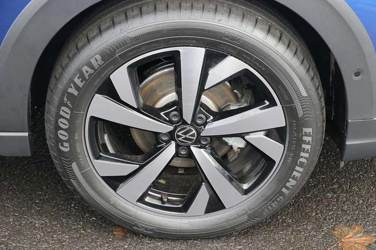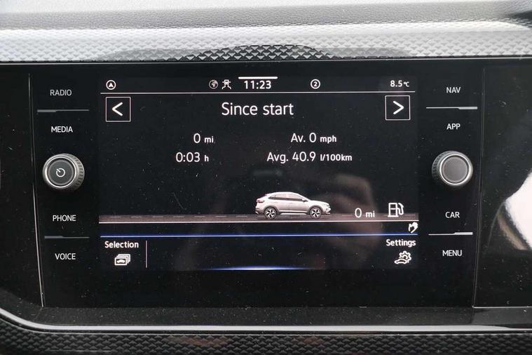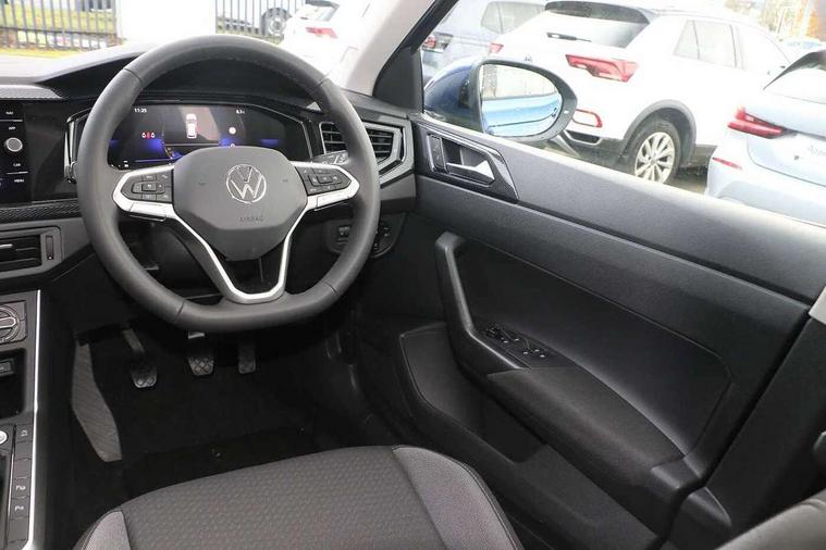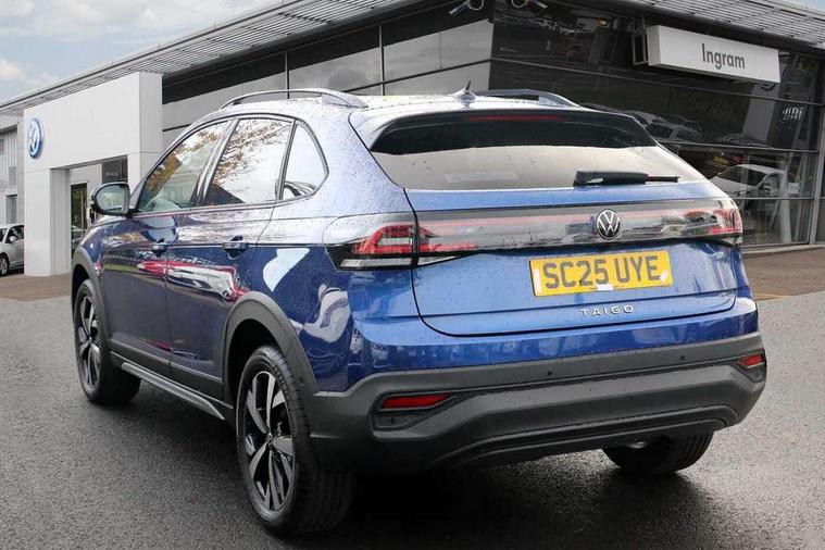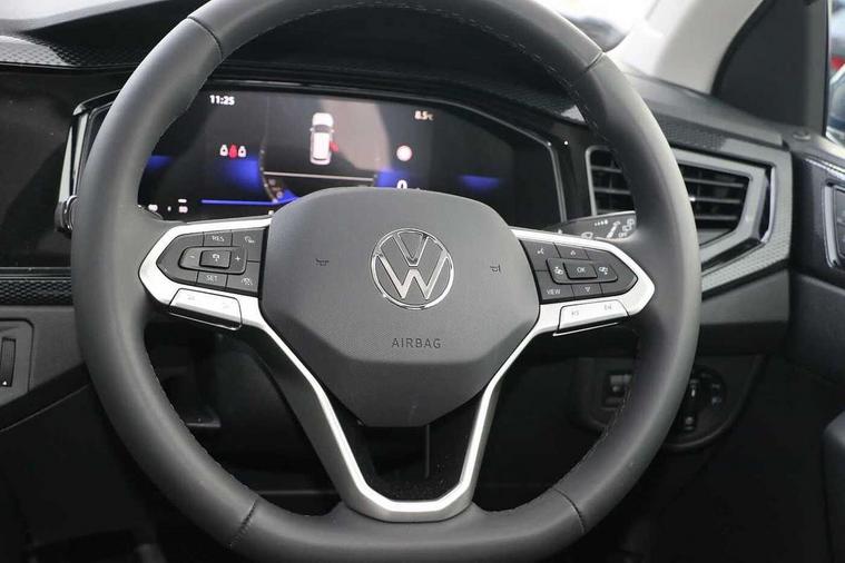 8" Digital cockpit basic display, Advanced driver attention and drowsiness monitor, Dynamic road sign display, e-Call (emergency call), Power Steering, Predictive adaptive cruise control, Rear view camera, Travel assist including emergency assist, Washer fluid level indicator, Wireless Charging including Bluetooth, Start-stop system with battery regeneration (recuperation - energy recovery during braking), Digital radio reception (DAB+), WeConnect plus, Ambient lighting with logo projection, Aspherical driver's exterior mirror, Body coloured bumpers, Body coloured exterior mirror housings and door handles, Electric windows, External USB type C socket and charging sockets, Heat insulating glass windscreen, LED rear combination lamp, LED third brake light, Left convex exterior mirror, Power folding adjustable/heated exterior mirrors and front passenger exterior mirror lowering function, Rear fog light on one side, reversing light on both sides, Rear side wing doors, Rear wash/wipe with intermittent wipe setting, Side windows in heat-insulating glass, from B-pillar and rear window dark tinted, 'Slash/ Austin' Cloth upholstery, 12V socket in centre console, 2 front reading lights, 3 rear head restraints, 3 seat bench in 2nd row, Black carpets, Ceramique headliner, Child seat anchor for child seat system i-Size, 2x top tether and child seat anchor in front on front passenger side, Door and side trim panels in titan black, Driver and front passenger seat height adjustment, Front centre armrest, Handbrake lever handle in leather, Height and reach adjustable steering wheel, Leather trimmed gear knob, Leather wrapped multifunction steering wheel, Luggage compartment floor, Luggage compartment light, Lumbar support for driver's and front passengers seat, Seat covers in titanium black, Single front passenger seat, Split folding backrest with centre armrest and unsplit rear seat bench, Storage compartment under front seats, Sun visors with illuminated vanity mirrors, Titanium black instrument panel, Chrome Package - Taigo, Drivers assistance package - Taigo, Light and sight pack - Taigo, 2 x 3-point seatbelts/outer rear seats with ECE label, 3-point seat belts in front with pretensioner and height adjustment, 3-point seatbelt for centre rear seat, Driver and front passenger airbag with front passenger airbag deactivation, Driver and front passenger safety-optimised head restraints, Electronic stability control, Extended and predictive pedestrian/ cyclist protection, Front and rear disc brakes, Front curtain and side airbags with center airbag, Hill start assist, Manual rear child locks, Single tone horn, Tyre pressure loss indicator, Anti-theft alarm system with interior monitoring, backup horn, and towing protection, Keyless locking and starting system keyless access with safelock, Black (slush) Dashboard, Lava stone black gloss/matt decorative inserts in dash and front door panels, Low rolling resistance tyres,