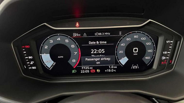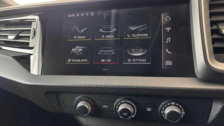 10.25" Digital instrument cluster display classis style instrument dials + speed, odometer, time, outside temperature, telephone menu + fuel level warning, Audi connect safety emergency and service including E-call, Audi drive select - power steering assistance + engine, Audi smartphone interface with connect compatible smartphone via USB directly MMI display + Nav, music, third party apps controlled via MMI controller, Automatic start/stop system, Bluetooth interface, Cruise control, Driver's information system, Electromechanical power steering, Emergency services call system, Lane departure warning system, Service interval indicator, Speed limiter, Voice control system, Washer fluid level indicator, Dynamic suspension, 1 x SDXC card reader, 2 x USB type C connection points, DAB Digital radio, MMI radio plus with 8.8" colour MMI display screen and MMI touch, Auto dimming rear view mirror, Body coloured bumpers, Body coloured door mirrors, Electric front and rear windows, Electrically adjustable, heated, folding door mirrors with integrated LED side indicator, Front side air inlets in grained matt black and C frame in titanium black, Heat insulating glass windscreen and side windows, Heated rear windscreen, High level LED brake light, LED headlights with LED rear lights + dynamic rear indicators + headlight adjustment and high beam, turning light + LED daytime running lights, Radiator grille and rear diffuser in matt titanium black, Radiator protective grille frame in matt aluminium silver, Rain and light sensors, Rear fog lights, Rear side wing doors, Rear wing door, Rear wiper, Side front spoiler lips in grained matt black, 12V socket in centre console with two cup holders, 3 rear seats with headrests, 3 seat bench in 2nd row, 40:60 Split folding rear seat or folded fully, Door sill trims with aluminium inlay, Driver and passenger seat with manual height adjust with forward and backwards adjustment, Front head restraints, Front passenger seat, Front/rear floor mats, Height and reach adjustable steering wheel, ISOFIX child seat mounting for front passenger and outer rear seats including top tether attachment point of outer rear seats, Leather gear knob with aluminium trim, Leatherette handbrake grip, Luggage compartment light with front and rear reading lights, Manually adjustable lumbar support in front seats, Novum cloth upholstery with front sport seats, Titanium grey cloth headlining, Luggage compartment pack - A1, 3x3 point rear seatbelts, Audi pre-sense front with pedestrain and cyclist recognition, Brake assist function, Driver and front passenger airbag with front side and head airbags, Electronic Stability Control including ABS, EBD, ASR and EDL, Front passenger airbag deactivation switch, Hill hold assist, Manual rear child locks, Seatbelt height adjustment for front seats, Seatbelt monitoring, Tyre pressure warning light, Warning triangle and first aid kit, Anti theft alarm, Anti theft wheel bolts and loose wheel warning, Immobiliser, Remote central locking with 2 foldaway keys, Aluminium trim for control switches, air vents and digital instrument cluster, Silver grey accent areas including air vents, door handle recesses and centre console in diamond paint finish, Slate grey inlays polygon structure in fine paint finish,