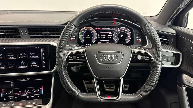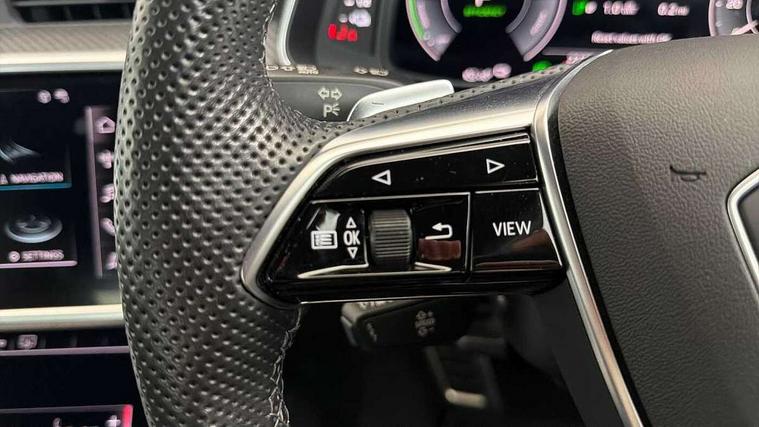 7" high resolution colour driver information display system, Audi connect safety and service (e-call), Audi connect with Amazon Alexa Integration, Audi drive select, Audi parking system plus - acoustic and visual park assist system for front and rear, Audi smartphone interface includes wireless Apple carplay/Android Auto, Automatic start/stop system with coasting functionality, Bluetooth interface, Electric boot lid release, Lane departure warning system, Progressive steering, Rear view camera, Service interval indicator, Voice control system, 3 pin 10 amp domestic charging cable, 52 litre fuel tank, 7.4 kW onboard charger, Hybrid propulsion system, Quattro on demand, Sports suspension, Type 2 mode 3 32 amp charging cable, Type 2 socket for AC charging, Audi front music interface, Audi sound system, Auxiliary input socket, DAB Digital radio, USB connection, All weather LED headlights, Electric front/rear windows, Frameless auto dimming interior rear view mirror, Front intermittent wipers, Gloss black highlights on the exterior area of the Audi Single frame, Gloss black highlights on the front and rear bumpers, Gloss black highlights on the radiator grille, Gloss black highlights on the side windows trim strips, Headlight washers, Heat insulating glass in side and rear windows, Heat insulating glass in windshield, LED rear lights, LED signature front daytime running light, LED third brake light, Matt black rear diffuser with diffuser strip and tailpipes in chrome, Matt black side air intake grille with inlay in matt aluminium, Privacy glass, Rain and light sensors, Rear boot, Rear side wing doors, 4 way electric lumbar support for driver and front passenger, 4 zone deluxe automatic climate control, 40/20/40 split folding 3 rear seat bench in 3 parts with rear centre armrest, Black cloth headlining, Black front and rear carpet floor mat, Black steering wheel insert, Electrically adjustable front seats with driver memory, Front centre armrest, Front head restraints, Heated front seats, Height/reach adjust steering wheel, Illuminated door sill trims with S logo, Illuminated sun visors with vanity mirrors, ISOFIX child seat mounting and Top Tether with front passenger airbag deactivation, Leather gear knob, Rear headrests, Single front passenger seat, Stainless steel pedals and foot rest, Tool kit, LED Interior Ambient Lighting Pack - A6, Non smoking pack - A6, Technology pack - A6, 3 point seatbelts on all seats, Airbags - Front side, front and rear including head, Audi pre-sense front, Black seatbelts, EBD - Electronic brakeforce distribution, Electromechanical parking brake, Electronic Stability Control (ESC) including ABS, ASR and EDL, Extended pedestrian protection measures, Manual child proof rear door locks, Seatbelt monitoring, Tyre pressure warning light, Warning triangle and first aid kit, Anti theft alarm with tow away protection, Anti-theft wheel bolts and wheel loosening detection, Immobiliser, Keyless Go, Remote central locking, Carbon twill inlays, 20" 5 V spoke star design Audi sport cast aluminium alloy wheels in matt titanium look, Tyre repair kit,