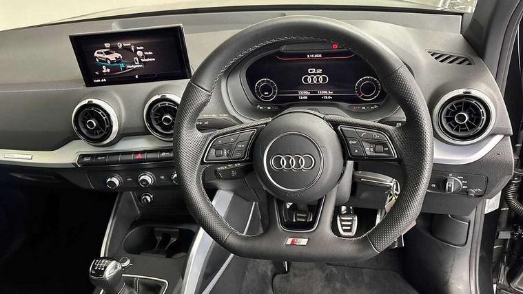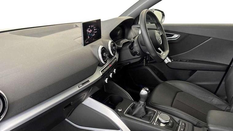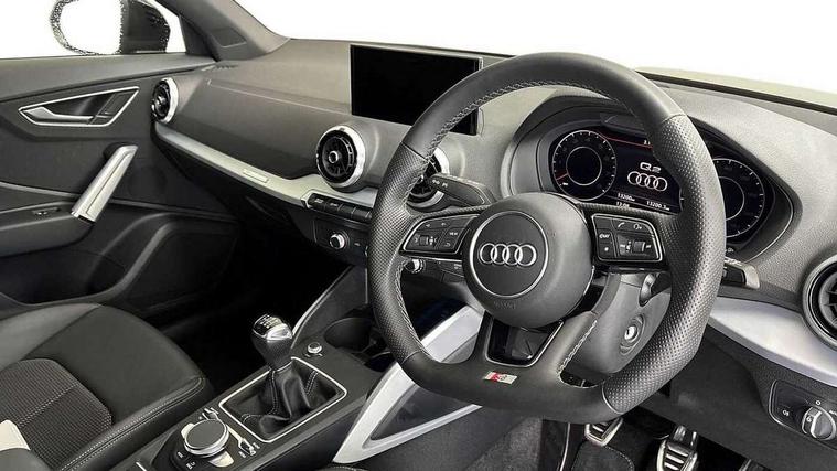 Audi connect navigation and infotainment includes innovative services, Audi connect remote and control connects your vehicle to your smartphone, Audi drive select, Audi drive select with efficiency, Audi smartphone interface, Audi virtual cockpit, Automatic start/stop system with recuperation, Bluetooth interface includes bluetooth audio streaming, Cruise control, E-call, MMI navigation plus with MMI touch, Power operated tailgate, Progressive steering, Rear parking sensors, 2 x SDXC card reader, 6 passive loudspeakers, DAB Digital radio, Auto dimming rear view mirror, Black window trims, Bumper in full body colour paint finish, Electrically adjustable, folding, auto dimming and heated door mirrors with integrated LED side indicators, Front windscreen with grey tinted sunband, LED daytime running lights, LED headlights with LED rear lights, LED third brake light, Privacy glass - dark tinted rear and rear side windows from B-pillar backwards, Rear side wing doors, Rear wiper, Variable front intermittent wipers, Wheel arch trims in manhattan grey, 12v socket in front, 3 seat bench in 2nd row, 3 spoke flat bottomed multi-function leather sport steering wheel, 4-way electric lumbar support for front seats including seat height adjustment for both front seat, 60/40 split folding rear seat bench, Black cloth headlining, Front and rear head restraints, Front centre armrest, Front/rear floor mats, Height/reach adjust steering wheel, Illuminated door sill trims with S logo, ISOFIX child seat mounting in front passenger and rear outer seats, Manual air conditioning, Single front passenger seat, Stainless steel pedals, Tool kit, Black styling pack - Q2, 3x3 point rear seatbelts, 6 airbags - Front, curtain and front side airbags, Electromechanical parking brake, Electronic stabilisation control including ABS, ASR and EDL, Front passenger airbag deactivation, Hill hold assist, Pre-sense front with pedestrian recognition, Seatbelt monitoring, Tyre pressure warning light, Warning triangle and first aid kit, Anti theft alarm, Anti theft wheel bolts, Electronically operated child locks, Remote central door locking, Aluminium interior element, Matt brushed aluminium trim inlays,