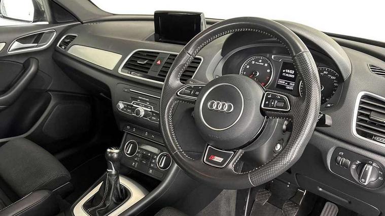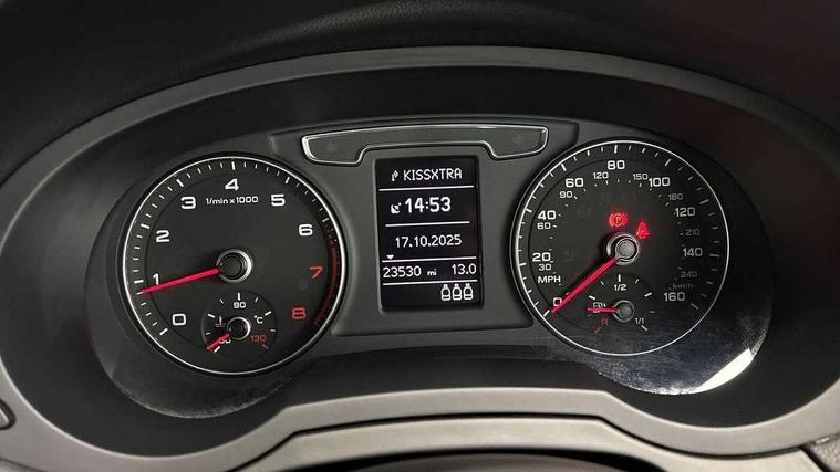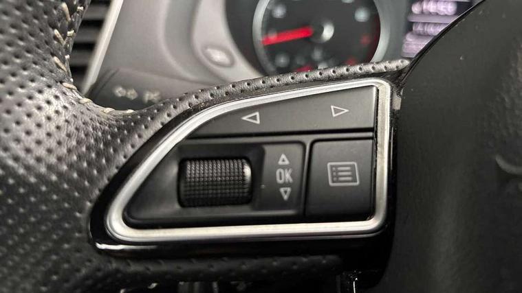 6.5" colour display screen, Audi drive select, Cruise control, Electro-mechanical PAS, Low washer fluid indicator, MMI - Multi Media Interface control system, On board computer, Remote electric boot opening/closing, Service interval indicator, Voice control system, Dynamic suspension, Audi music interface, DAB digital radio module, Acoustic windscreen, Aluminium window surround, Auto dimming rear view mirror, Body colour door mirrors, Body coloured bumpers, Chrome exhaust tailpipe, Coming home function, Door mirror integrated indicators, Front and rear electric windows, Front fog lights, Front lip spoiler, Heated windscreen washer jets, LED daytime running lights, LED headlights with headlight washers, LED rear lights, Light and rain sensor for auto activation of lights and windscreen wipers, Loading sill protector in stainless steel, Rear diffuser with platinum insert, Rear wiper, S Line body styling, Sunband for windscreen, 12V socket in rear centre console, 3 spoke multi-function Q design steering wheel, Aluminium door sill trims, Black cloth headlining, Door sill trim strips, Dual zone climate control, Electric front lumbar adjustment, Front and rear headrests, Front and rear velour floor mats, Front centre armrest with storage compartment and angle adjustment, Front sports seats, Height/reach adjust steering wheel, ISOFIX on front passenger and rear outer seats, Jack and tool kit, Perforated leather gearknob, Retractable luggage cover, Split fold rear seat, Storage compartment and 12V socket, Under floor storage in luggage area, 3x3 point rear seatbelts, ABS+Electronic Brake force Distribution, Curtain airbags, Driver and passenger airbags, Driver and passenger side airbags, EDL + ASR, Electrically operated child locks on rear doors, Electromechanical parking brake, ESP, First aid kit, Front passenger airbag deactivation, Head airbags, Seatbelt warning light, Tyre pressure monitoring system, Warning triangle, Locking wheel bolts, Remote central locking, Thatcham category 1 alarm + immobiliser, Matt brushed aluminium fascia and door trim inlays,
