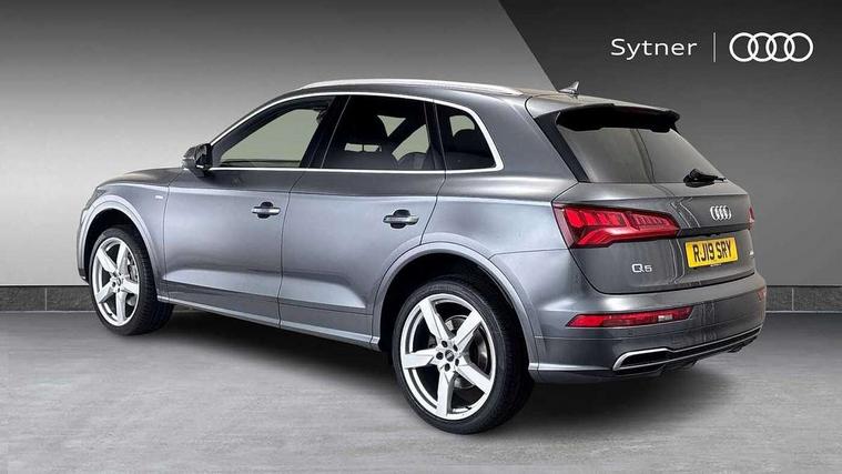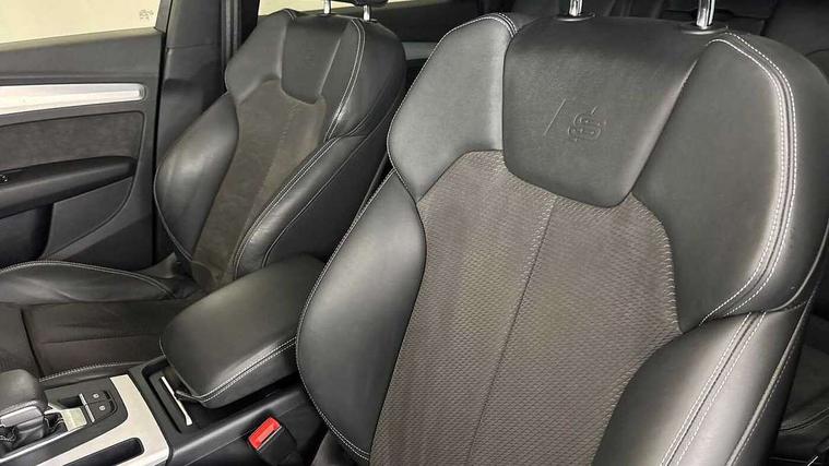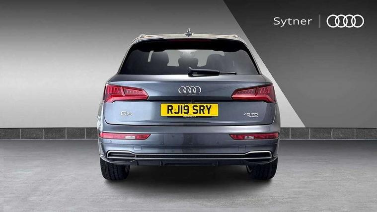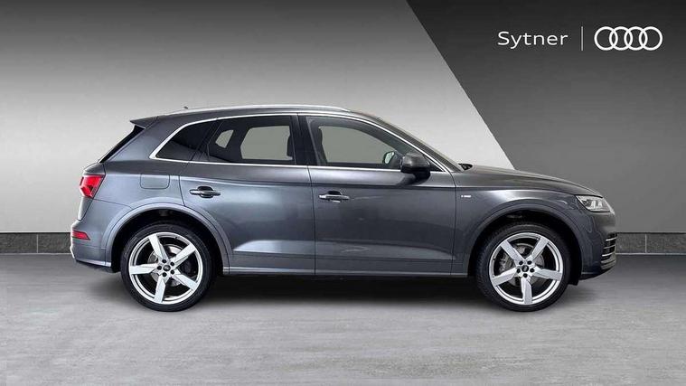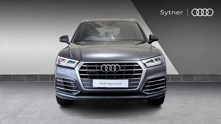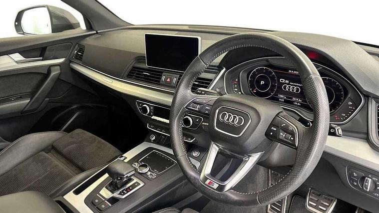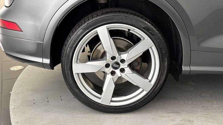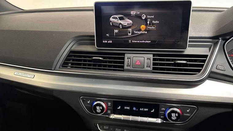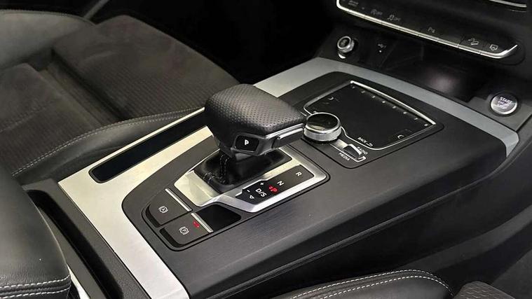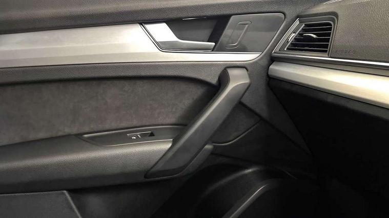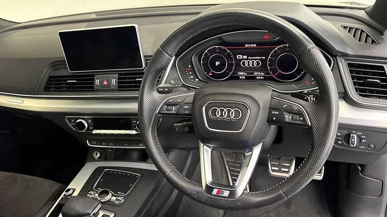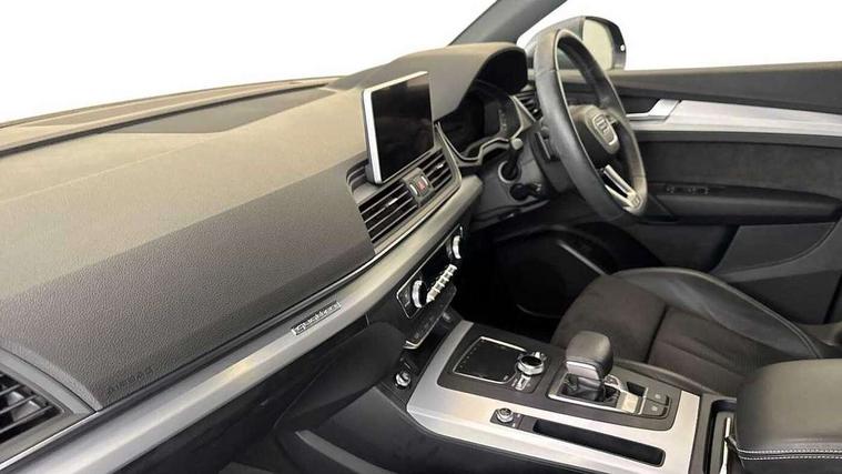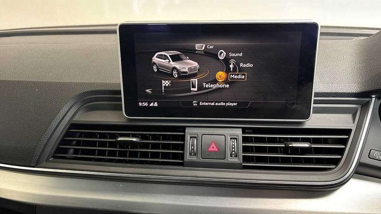 7" Colour driver information system, Audi drive select, Audi parking system plus with front and rear sensors, Audi smartphone interface, Electro - mechanical power assisted steering, MMI Navigation, Mobile telephone preparation - bluetooth interface, Power tailgate, Service interval indicator, Voice control system, Diesel particulate filter, 2 x USB charging port with aux input socket, 2x SD card slot, CD player, DAB Digital radio, MMI radio plus with 7" colour MMI screen and MMI controller, Acoustic windscreen, Air inlets in matt titanium black with blades in matt aluminium silver, Aluminium roof rails, Auto dimming rear view mirror, Automatic headlight levelling, Body colour bumpers, Body colour door mirrors, Body colour rear diffuser with matt aluminium silver surrounds, Body colour S Line side skirts, Body colour underbody protection, Chrome exhaust tailpipe, Front and rear electric windows, High beam assistant, Light and rain sensor for auto activation of lights and windscreen wipers, Loading sill protector in stainless steel, Privacy glass with front acoustic glazing, Rear wiper, S Line badges on the front wings, S Line front and rear bumpers/side air inlets and diffuser, S Line rear spoiler, Twilight grey matt radiator grille with matt aluminium horizontal chrome struts, 3 rear headrests, 3 zone climate control, 40:20:40 split folding rear seat with rear centre armrest, Black cloth headlining, Contrast stitching on seats, steering wheel and gear lever gaiter, Front centre armrest, Front sport seats with S embossed logo, Front/rear floor mats, Height adjustable front head restraints, Illuminated door sill trims with S logo, ISOFIX child seat mounting and top tether, Luggage compartment carpet, Perforated leather gearknob, Removable luggage compartment floor, Stainless steel pedals, Sunvisors with vanity mirrors, Trunk roller cover, High gloss pack - Q5, Non Smokers pack, 3 point seatbelts on all seats, 6 airbags - Driver, front passenger, curtain and side airbags, Electromechanical parking brake, Electronic stabilisation control including ABS, ASR and EDL, Front passenger airbag deactivation, Hill descent control, Hill hold assist, Multi collision brake assist, Pop-up bonnet for pedestrian protection, Pre sense city, Seat belt force limiter, Seatbelt monitoring, Tyre pressure warning, Warning triangle and first aid kit, Anti theft alarm, Anti-theft wheel bolts, Keyless Go access/ignition system, Remote central locking, Tool kit,