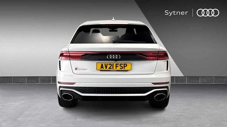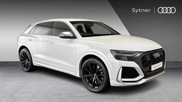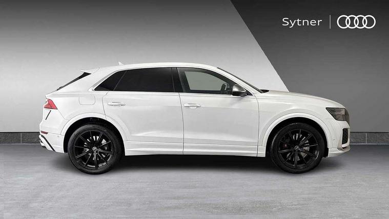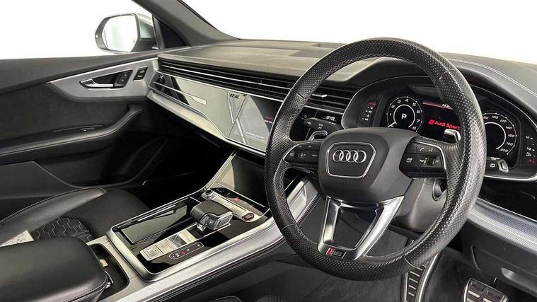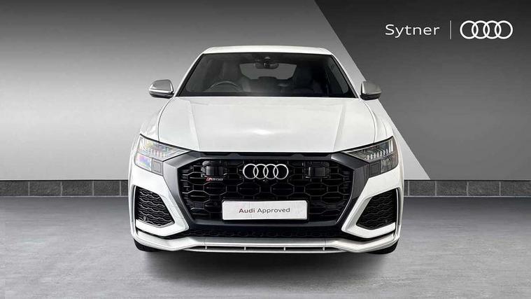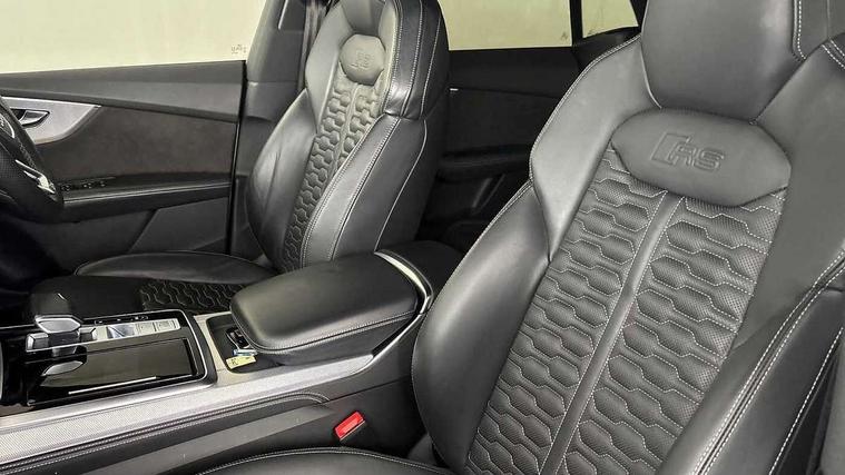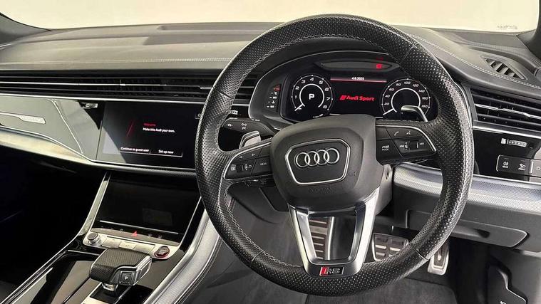 10.1" and 8.6" Dual colour touchscreens, All wheel steering, Audi connect safety and service (e-call), Audi parking system plus with front and rear sensors, Audi phone box with wireless charging, Audi smartphone interface with wireless Apple CarPlay, Audi virtual cockpit - 12.3" high resolution LCD display with fully customisable instrument cluster and RS specific menus and options, Automatic start/stop system, Electro-mechanical PAS, MMI navigation plus with MMI touch, Natural voice recognition, On board computer, Operating buttons in black, glass look with haptic feedback, Power operated tailgate, Rear view camera, RS Audi drive select, Service interval indicator, 48V Mild hybrid technology, Electromechanical active roll stabilisation, Quattro all wheel drive with sport differential, RS specific Adaptive air suspension, Audi music interface with 2 USB ports with charge and data functions, Audi sound system with 6 channel amplifier, 180 watt amplifying capacity and 10 loudspeakers including subwoofer, Aux-in socket, DAB Digital radio, Adaptive windscreen wipers with integrated washer jets, Aluminium look door mirrors, Aluminium window trim, Audi Beam uses LEDs to project the Audi logo, Audi HD Matrix LED headlights in RS specific design with dynamic front and rear indicators, Auto dimming frameless rear view mirror, Electric front+rear windows, Electrically adjustable/heated/folding/dimming door mirrors with kerb view includes integrated LED indications + kerb view function for passenger side, Headlight washers, Heat insulating glass in windshield, Illuminated door sill trims with RS logo, LED signature daytime running lights, Privacy glass - dark tinted rear and rear side windows from B-pillar backwards, Rain and light sensors, Rear wiper, RS badges on front wings, RS coming/leaving home animations in front and rear, RS manhattan grey front spoiler lip and rear diffuser insert, RS manhattan grey grille surround with honeycomb grille insert in black, RS specific bumpers in full body colour paint finish, 4 zone automatic climate control, 4-way lumbar support for front seats, 40:20:40 split folding rear bench seat, Comfort front centre armrest, Double sun visor with illuminated vanity mirror on driver and passenger side extendable, Driver and front passenger seat memory function for electrically adjustable front seats, Electric adjustable steering column with memory functionality, Front and rear head restraints, Front seat ventilation operated through MMI system, Front/rear floor mats, Heated front and outer rear seats for the second row, Heated front seats, ISOFIX child seat mounting for front passenger seat and 2 outer rear seats with top tether child seat mounting for all 3 rear seats, Luggage compartment sill protection in stainless steel, Perforated Valcona leather upholstery + RS front super sports seats + honeycomb pattern with RS embossed logo, Rear seat bench plus, Stainless steel pedals, Tool kit, Air quality package - RS Q8, Multi-coloured extended LED interior lighting pack - RS Q8, RS specific styling pack - RS Q8, 3 point seatbelts on all seats, Audi pre sense front, Driver and front passenger, front side and curtain airbags, Electromechanical parking brake, Electronic Stability Control (ESC) including ABS, ASR and EDL, Hill descent control, Hill hold assist, Predictive pedestrian protection, Seatbelt monitoring, Tyre pressure loss indicator, Warning triangle and first aid kit, Advanced key, Anti theft alarm with tow away protection, Anti-theft wheel bolts and wheel loosening detection, Immobiliser, Tyre repair kit,