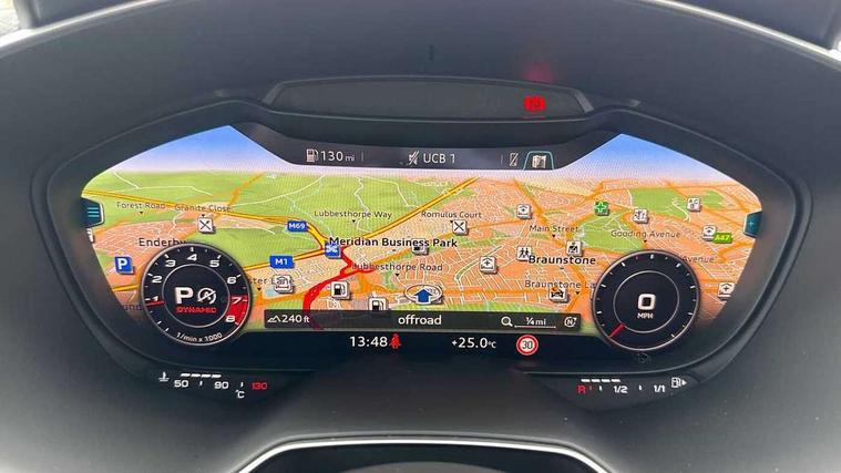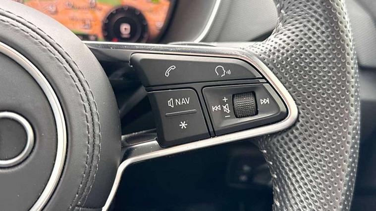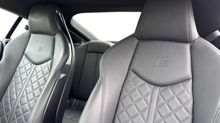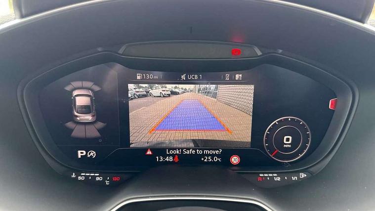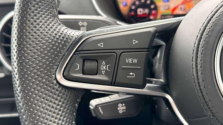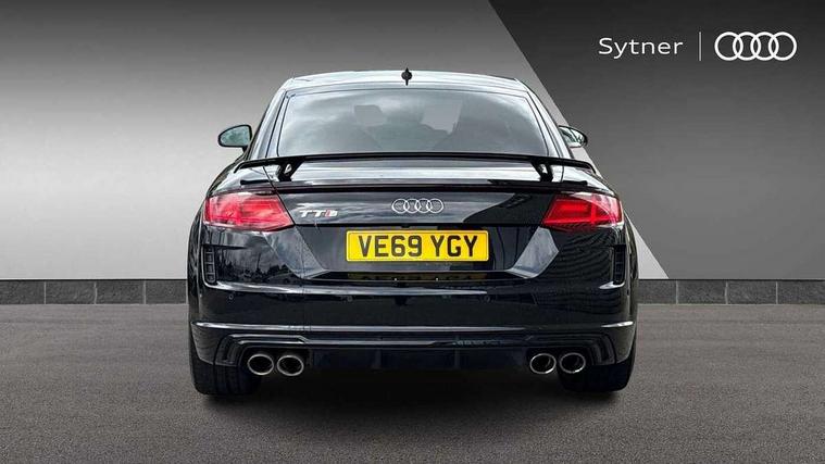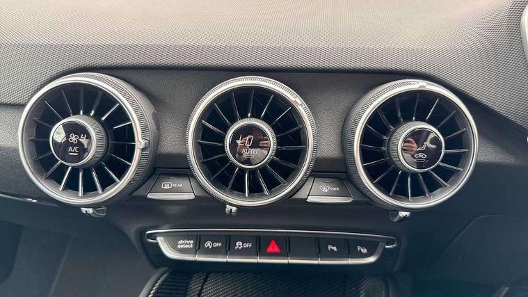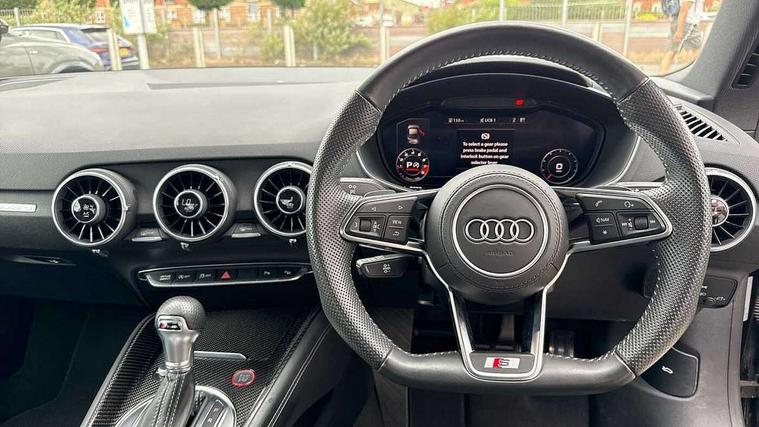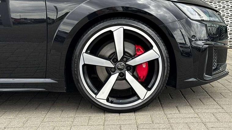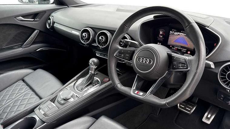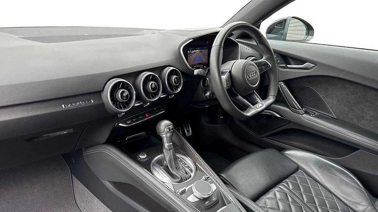 Audi active lane assist, Audi connect, Audi drive select with 4 Pre configured modes, Audi phone box, Audi side assist, Audi smartphone interface, Audi Virtual Cockpit with sport gauge, Camera based traffic sign recognition, Cruise control + speed limiter, MMI Navigation plus, MMI touch panel, Mobile phone preparation with bluetooth interface, Park assist system, Progressive power assisted steering, Rear view camera, Service interval indicator, Start/Stop system with energy recuperation, TP memo, Audi magnetic ride, AM/FM radio, Audi music interface, Bluetooth audio streaming, DAB Digital radio, MMI Radio with CD player and SD/XC card slot, Audi Beam uses LEDs to project the Audi Sport logo, Black chrome tailpipe, Dark privacy glass from B-pillar backwards, Electric front windows, Electrically adjustable, foldable and heated auto dimming on driver side and automatic kerb view dipping function on the passenger side, Green tinted heat insulating glass, High beam assist, Light and rain sensors, Matrix LED light+LED daytime running light, LED Indicator, Headlightclean, auto dynm headlight range+dynamic cornering light, Motorwaybeam/Manoeuvre light, Platinum grey rear diffuser, Sunband for windscreen, 12V socket, 3 spoke flat bottomed high multi-function leather sport steering wheel with gearshift paddles, 4 way electric lumbar support for driver and front passenger, Black headlining, Deluxe auto air conditioning with integrated digital display, Door sill trims with aluminium inlay and TTS logo, Electrically adjustable front seats with pneumatic backrest side bolster adjustment, Extended aluminium look with stainless steel pedals, Fine Nappa leather upholstery with Super Sport seats + "S" embossing, Front centre armrest, Heated front seats, Height adjustable front head restraints, Interior elements in quartz anthracite, ISOFIX child seat mounting for front passenger seat with airbag deactivation, Perforated leather gearknob, Rear head restraints, Comfort and sound pack - TT with park assist, Driver assistance - TTS Vorsprung, Leather pack - TTS, LED interior light pack - TT/TT RS, 3 point front seat belts, ABS, ASR traction control, Brake energy regeneration, Curtain airbags, Driver and front passenger airbag with front passenger airbag deactivation, EDL traction control, Electromechanical parking brake, ESP, First aid kit, Front side airbags, Head airbags, Hill hold assist, Seatbelt warning, Tyre pressure warning, Warning triangle, Anti theft alarm, Anti theft wheel bolts, Immobiliser, Keyless Go, Remote central locking, Carbon inlays, 20" 5 arm cutter design in gloss anthracite black Audi sport cast aluminium alloy wheels, Tool kit, Tyre repair kit,