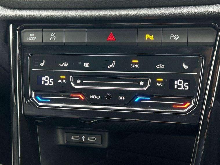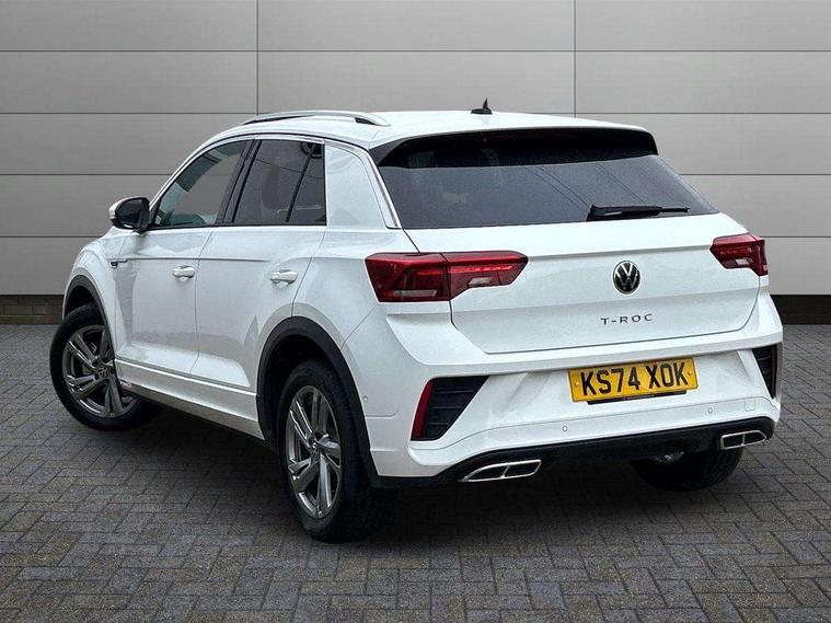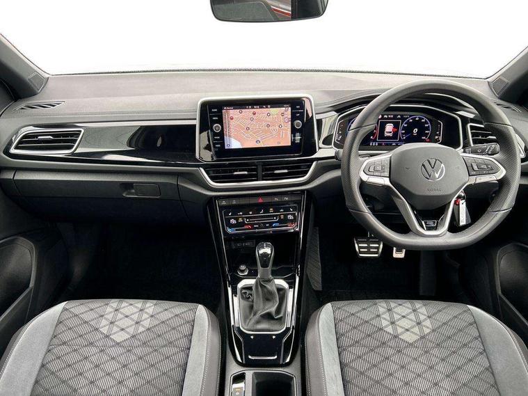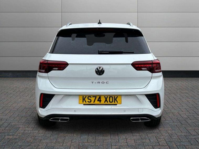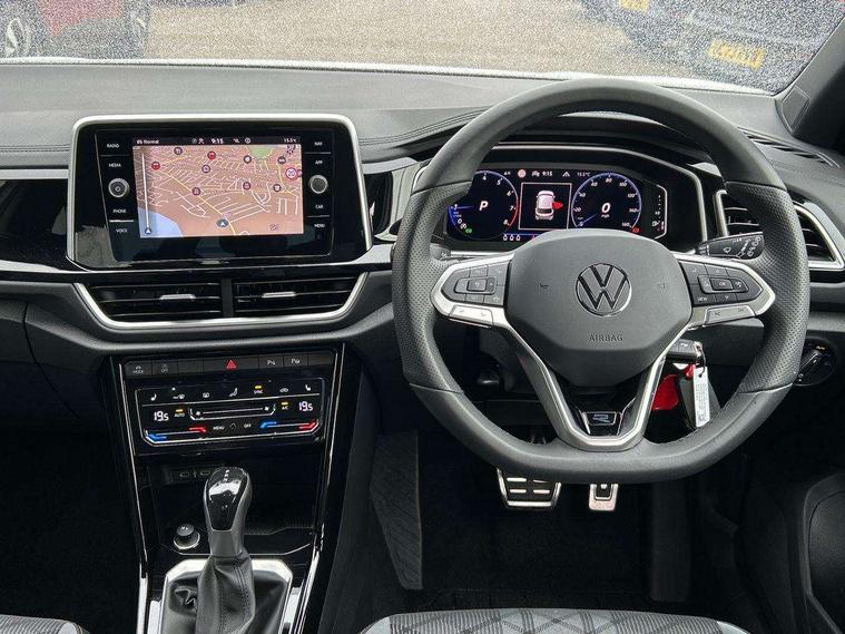 10.25" Digital cockpit pro, Advanced driver attention and drowsiness monitor, Emergency call service, Lane keeping system Lane Assist, Mobile phone interface, Modified key software - reduce switch off time for key status change to Long no motion, Online services, Park assist including front and rear parking sensors, Service interval indicator, Tailgate/trunk lid release from outside, Think blue trainer driver tips and journey analysis, Warning sound and light for front seatbelts unfastened, Wireless app connect, Battery regeneration during braking, Start/stop function with battery regeneration, DAB Digital radio, Diversity antenna for FM reception, Front and rear 6 speakers, Music playback - MP3, WMA and AAC files, Premium USB cable in choice of either Apple or Android smartphone compatibility, SD card slot, Simultaneous pairing of 2 compatible mobile devices, Title and cover art display, We Connect and We Connect Plus functionality, Auto dimming interior rear view mirror, Automatic hazard lights activation under emergency braking, Automatic headlight control with LED separate daytime running lights with coming/leaving home function, Body coloured exterior mirror housings and door handles, Electrically adjustable and heated door mirrors, Extended roof spoiler, Exterior mirrors aspherical on driver side, convex on front passenger side, External USB type C socket and charging sockets, Front windscreen wiper with intermittent wipe and 4 position delay, Heated rear window, LED 3rd brake light, LED rear combination lamps, LED rear number plate lights, Power windows with comfort operation and circuit breaker, Privacy glass for rear side windows and rear window, R-Line design body coloured bumpers, Rain sensor, Rear exhaust tailpipe, Rear fog light on one side and reversing lights on both sides, Rear side wing doors, Rear wash/wipe with intermittent wipe setting, Remote electrically foldable door mirrors, puddle lights and reverse activated passenger's door mirror, 12V power socket in centre console, 3 rear head restraints, 3 seat bench in 2nd row, 4 load lashing points in luggage compartment, Air care climatronic air conditoning system with active combination filter and 2-zone temperature control, Black roof lining, Chrome plated decorative trims, Chrome plated radiator grille inserts, air vent surrounds and light switch surrounds, Door and side trim panel with leatherette insert, Front + rear carpet mats, Front centre armrest, Front cupholders x 2, Front footwell illumination, Front reading light, Front scuff plates with R Line logo, Front seat back storage pockets, Glove compartment door with light, Instrument lighting, white adjustable panel illumination, Interior ambient lighting and surround lighting, Interior light delay, Isofix child seat preparation, Leather gearshift handle, Load-through provision with cup holder when folded down ('Unsplit rear seat bench, split folding backrest, with centre armrest), Luggage compartment lighting, Single front passenger seat, Stainless steel pedals, Storage compartment in left and right luggage area, Storage compartment in rear doors, Storage compartments in driver and front passenger doors, Sunvisors with illuminated vanity mirrors, Variable boot floor, height adjustable and removable, Driver assistance pack without proactive passenger protection - T-Roc, 3 point height adj front seatbelts + pretensioners, 3 point seatbelts in outer rear with ECE label, ABS, Child locks on rear doors, City emergency braking and pedestrian monitoring, Driver and front passenger airbag with front passenger airbag deactivation, Driver and front passenger safety-optimised head restraints, Drivers seatbelt reminder, Electronic parking brake, Electronic Stability Control (ESC) inc EDL (Electronic Differential Lock) and ASR (Traction Control), Front and rear passengers curtain airbag system including front side airbags, Hill start assist, Predictive pedestrian protection, Rear disc brakes, Two tone horn, Tyre pressure loss indicator, Volkswagen roadside assistance, Piano black decorative inserts in dashboard and front door trim panels, Trims for alloy wheels,
