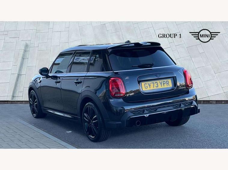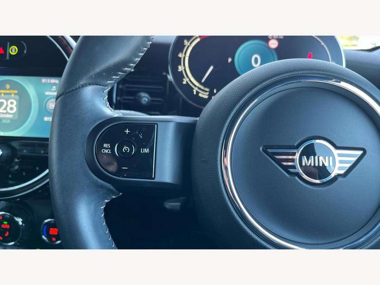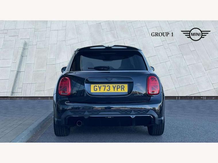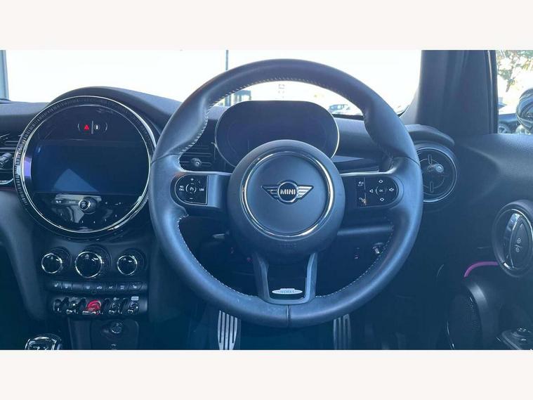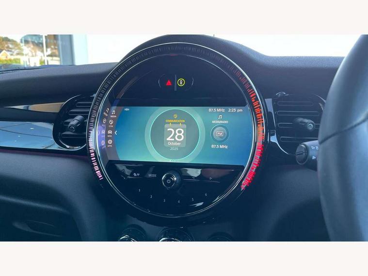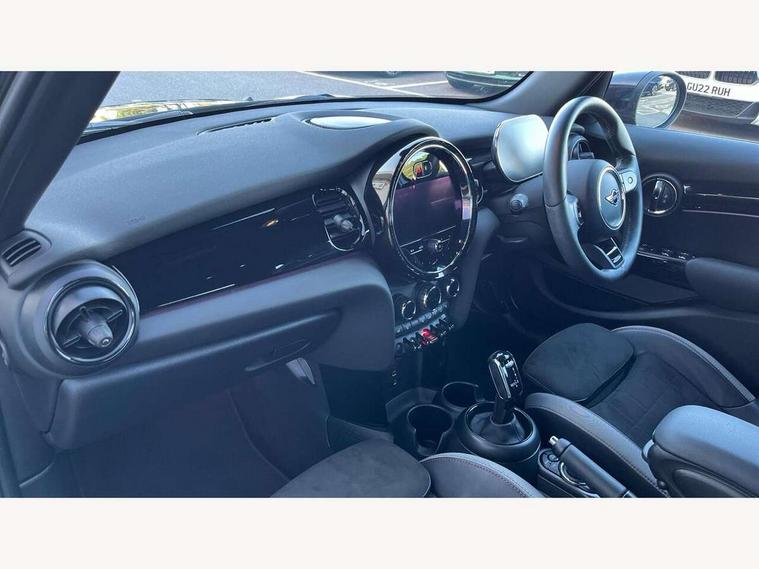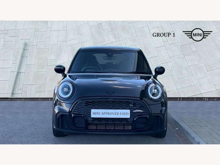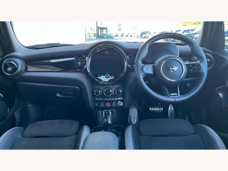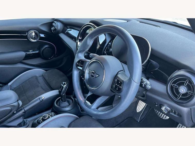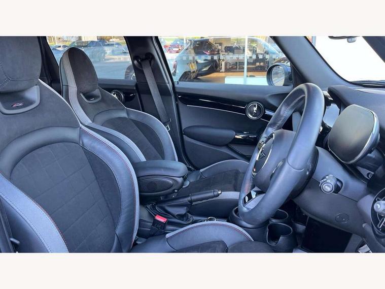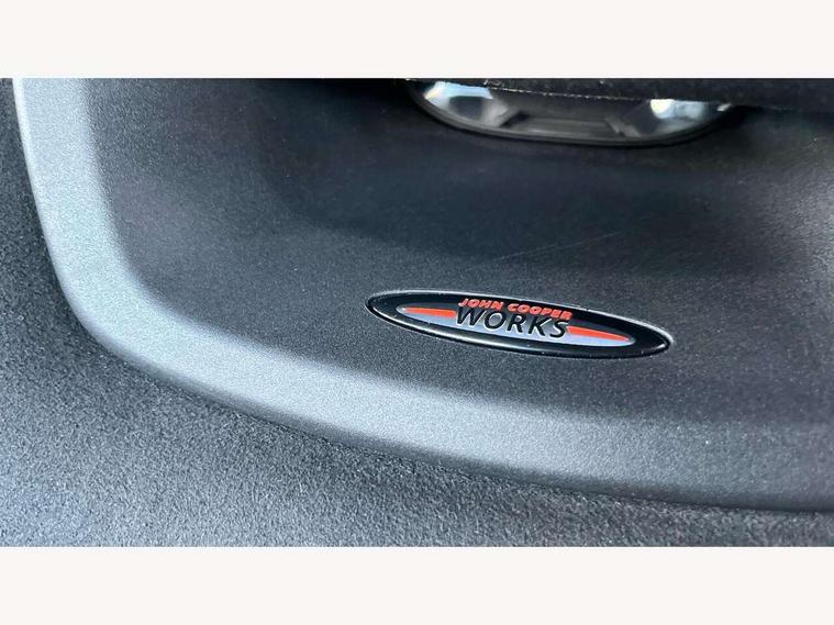 Apple CarPlay, Automatic start/stop function with brake energy recuperation, Compatible mobile phone bluetooth with audio streaming, Electro-mechanical speed dependant steering assistance, Flexible car sharing preparation, MINI Driving Modes - centre toggle switch to control driving setting (sport, mid and green), Mini E-call, MINI TeleServices, On board computer, Rear park distance control, Service interval indicator, Adaptive suspension, Double Vanos system, Fully variable valve control, Gear change indicator display, High precision injection, Performance Control, Steptronic transmission with double clutch, 8.8" touchscreen with LED ring, FM tuner and DAB digital radio, 3rd brake light, Automatic headlight activation switch, Body colour fuel filler cap, Chrome border high gloss black slats radiator grille, Dynamic brake lights, Electric front+rear windows, Exhaust tailpipe on left with chrome finisher, Heated rear window, Heated windscreen washer jets, JCW Aerodynamic kit - Front and rear bumpers with sporty JCW styling and part-painted side sills with MINI John Cooper Works door sill finishers, John Cooper Works rear spoiler, Metal door sill strips with MINI imprint, Model logo Cooper on right of tailgate, Rain sensor window wipers, Rear fog lights, Rear LED lights with union jack design, Rear side wing doors, Rear window wiper, Side scuttle panel with integrated indicator, Sun/heat protection glass, White indicator lenses, 12V Accessory socket in centre console, 3 seat bench in 2nd row, 4 lashing eyes in luggage compartment, 60/40 split folding rear seat, Anthracite headliner including grab handles and clothes hooks, Carbon black colour line - Knee roll and door armrest, Chrome interior highlights, Cupholders, Front and rear isofix with front passenger airbag deactivation, Front and rear velour floor mats, Glove compartment, Height and length steering column adjustment, Interior lighting with 12 different colours across the dashboard, underneath door bezel with illuminated laser-engraved design on central display, JCW Sport seats with integrated headrests, adjustable thigh support and John Cooper Works logo, Leatherette gearshift lever and handbrake gaiters, LED reading lights, vanity mirror lights, front foot well light and spotlight on front seats, Mechanical seat adjustment - forward/back & backrest for front seats and driver seat height adjust, Multifunction steering wheel, Single front passenger seat, Storage compartments in doors, Sunvisors with vanity mirrors, Walknappa leather steering wheel with grey seam and John Cooper Works badge on Piano Black lower steering wheel spoke, Piano black exterior pack - Mini Hatchback Cooper, 3 point seatbelts on all five seats, 6 Airbags - front, side, head and seat belt tensioners, Anti-lock braking system (ABS), Child locks on rear doors, DSC - Dynamic Stability Control, Front and rear disc brakes, Hill start assist, Single tone fanfare horn, Tyre pressure monitoring system, Alarm system with tilt sensor, monitoring doors, bonnet interior and tailgate, Electronic vehicle immobiliser, Start/stop toggle with keyless go, Piano black interior trim, Tool kit,