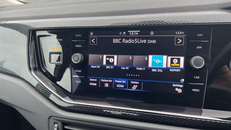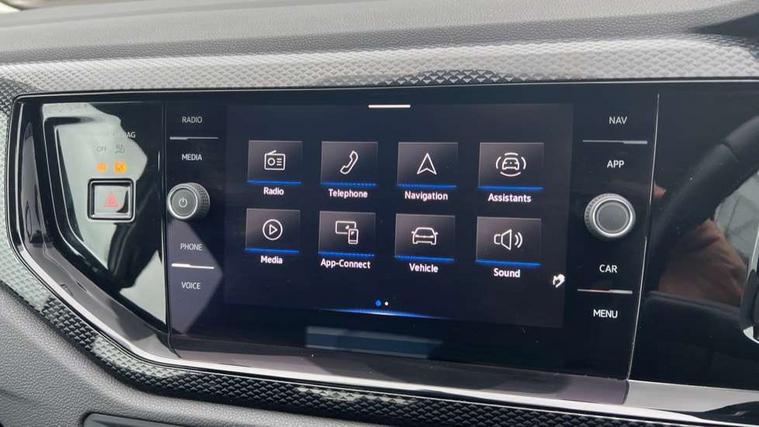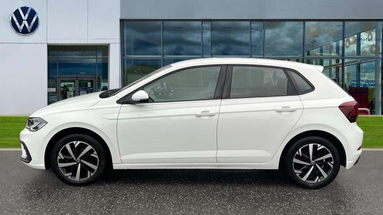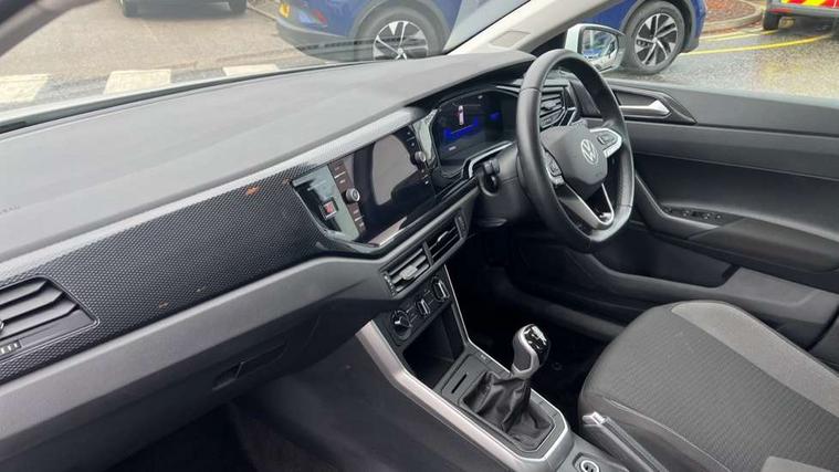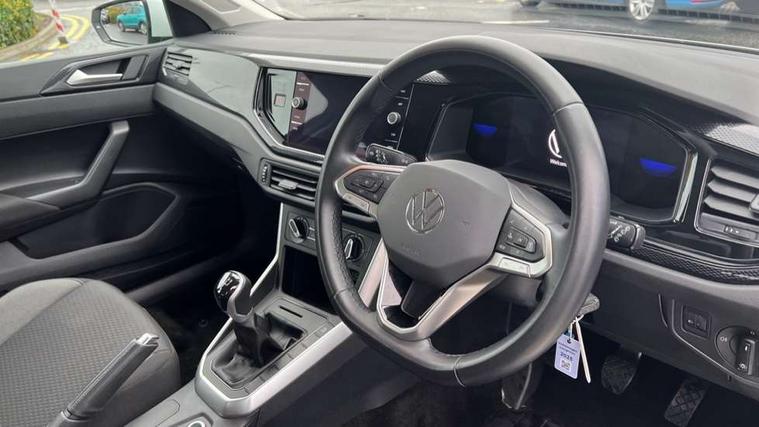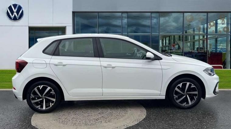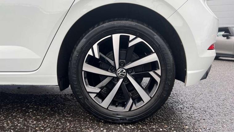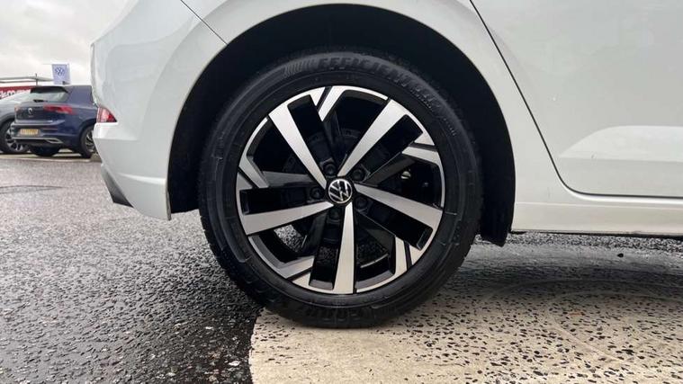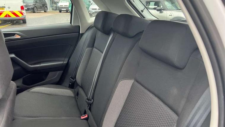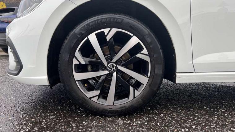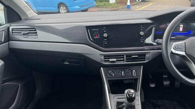 Adaptive cruise control without follow-to-stop and speed limiter, Advanced driver attention and drowsiness monitor, Bluetooth mobile phone interface, Dynamic road sign display, Emergency call service, Power assisted speed sensitive steering, Preparation for navigation system with media and internet package, Preparation for We connect and We connect plus, Speedo and rev counter, electronic odometer, trip, service interval display and exterior temperature gauge, Standard rear axle, Travel Assist - Lane keeping system and traffic jam assist, Travel assist including emergency assist, Trip computer, Warning signal and warning light for front and rear seatbelts not fastened, Washer fluid level indicator, Wireless app connect, Front wheel drive, Rear shock absorpion, Start-stop system with battery regeneration (recuperation - energy recovery during braking), DAB Digital radio, Diversity antenna for FM reception, Front and rear 6 speakers, Automatic dimming interior rear view mirror, Automatic headlight control with LED separate daytime running lights with coming/leaving home function, Body colour bumpers with chrome inserts, Body colour door handles, Body colour door mirrors, Electric front windows, Engine badge deletion, Headlight range adjustment, Heat insulating and laminated safety glass windshield, Heat insulating darkened glass in side and rear windows, Heat insulating glass windscreen, LED Headlights, LED rear combination lamps, Power folding adjustable/heated exterior mirrors and front passenger exterior mirror lowering function, Rain sensor, Rear electric windows, Rear fog light, Rear side wing doors, Rear windscreen washer and wiper with interval delay, Third brake light, 12V power socket in centre console, 2 front and 2 rear reading lights with switch off delay and dimmer, 2 USB-C ports in the front, 2 USB-C charging sockets on the center console in the rear, 3 rear head restraints, 60/40 split folding rear seat and rear seat bench not split, Ceramique roof lining, Chrome plated radiator grille inserts, air vent surrounds and light switch surrounds, Door and side trim panel, Driver and front passenger seat height adjustment, Driver/passenger sunvisors with illuminated vanity mirrors, Front centre armrest, Front seat backrest storage pockets, Front standard seats, Handbrake lever handle in leather, Hartley/Thomas cloth upholstery, Headliner in recycled material, Isofix child seat preparation easy-fit (for two outer rear seats, and front passenger seat) compatible with I-size, Leather trimmed gear knob, Luggage compartment cover, Luggage compartment lighting, Removable luggage compartment floor, Single front passenger seat, Standard climatic zones, Standard pedal cluster, Three spoke leather wrapped multifunction steering wheel, Light and vision pack - Polo, 3 point height adj front seatbelts + pretensioners, 3x3 point rear seatbelts, ABS, Driver and front passenger airbag with front passenger airbag deactivation, Drivers and front passengers safety optimised head restraints, ESC (Electronic stability control) + EDL (Electronic Differntial lock) and ASR (Traction control), Extended and predictive pedestrian/ cyclist protection, Front assist with autonomous emergency braking (for Adaptive Cruise Control ACC up to 130 mph), Front curtain and side airbags with center airbag, Front disc brakes, Hill hold control, Manual child lock in rear doors, Rear drum brakes, Single tone horn, Tyre pressure loss indicator, Alarm with interior protection, Anti-theft alarm system with interior monitoring, backup horn, and towing protection, Anti-theft wheel bolts, Electronic engine immobiliser, Lava stone black gloss/matt decorative inserts in dash and front door panels, Low rolling resistance tyres,
