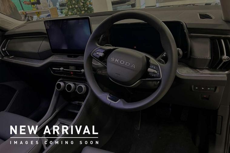 13" satellite navigation touchscreen display, Blind spot detection with door exit warning, Bluetooth system, ChatGPT functionality, Driver alert - Fatigue and drowsiness monitor, Dry display cleaner, Emergency call, Front and rear parking sensors, Front cross traffic assist, Lane assist, PAS, Rear traffic assist, Tailgate unlocking from outside, Traffic sign recognition, USB C Port x 2 in front centre console, Virtual Cockpit - 10.25" digital display, Voice control system, Wireless charging for two smartphones (15W) with cooling function, Wireless SmartLink for Apple CarPlay and Android Auto, Stop/start function, 2x USB-C in the rear, DAB Digital radio, Aero front windscreen wipers with intermittent function, Auto dimming rear view mirror, AWL (all weather lighting) and all weather light with cornering function, Black wheel arch surrounds, Body colour bumpers, Body colour door mirrors and handles, Cornering light and poor weather light, Electric folding /adjustable/separted heated/folding door mirrors, auto dimming with boarding sports and memory function, Electric front and rear windows, Exterior black decorative trims, Heat insulating glass in windshield, Heated rear window, Ice scraper in fuel tank cap, Invisible tailpipe, LED daytime running lights, LED third brake light in rear spoiler, Light assistant with automatic headlight control and coming home feature, Logo projection in door mirrors, Privacy glass, Rear roof spoiler, Rear side wing doors, Rear window wiper, Red decorative strip between rear LED lights, Safety reflectors on front and rear doors, Unique dark chrome design logo on alloy wheels, Window control switches with black trim, Windscreen wipers with rain sensor, Without engine designation, 1.5l bottle holder points in all door, 1x centre rear reading light, 2 seat bench in 3rd row, 3 configurable smart dials with 32mm coloured display, 3 seat bench in 2nd row, 4 foldable roof handles with rear coat hooks, Ambient interior lighting - Dashboard, front-door stowage compartments, front and rear door panels and footwell lighting, Automatic gear selector on steering column, Chrome interior door handles, Driver/front passenger reading lights, Fabric headlining, Fixed bench 40:60:40 split folding backrests, Front and rear floor mats, Front centre armrest with jumbo box storage compartment, cup holder and 12V socket, Height adjustable front headrests, Isofix child seat fittings in outer middle row rear seats and front passenger with top tether, Manually adjustable steering column, Pollen filter, Rear centre armrest with cupholders, Rear seat boot backrest release, Single front passenger seat, Skoda lettering on steering wheel, Storage pocket including mobile phone pockets on the backs of the front seats, Sunvisors with illuminated vanity mirrors, Three rear height adjustable headrests, Ticket holder on A Pillar, Tri zone climate control, Umbrella in door panel x1 made from sustainable materials, Upper and lower glovebox with card holder and coin compartment, USB C port by rear view mirror for charging only (15W), Exterior styling pack - Kodiaq, Auto door release and activation of warning lights in the event of an accident, Driver and front passenger airbag with knee airbag and front passenger airbag deactivation, Electric child locks, Electronic parking brake, ESC (incl. ABS+EMD+MSR+ASR+EDL+HBA+DSR+RBS+ESBS+MCB+TSA+XDS), Front assist with braking reaction to vehicles, pedestrians and cyclists, Front disc brakes, Fuel cut off safety device, Height adjustable front 3 point seatbelts + pretensioners, Hill hold assist, Junction assist with automatic emergency braking, Rear disc brakes, Safety vest holder in door, Seat belt reminder for all seats, Three point rear seat belts, Two tone horn, Tyre pressure monitor, Anti-theft wheel bolts, Immobiliser, Remote central locking with 2 keys,