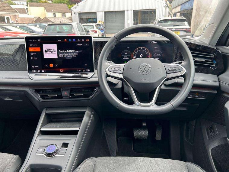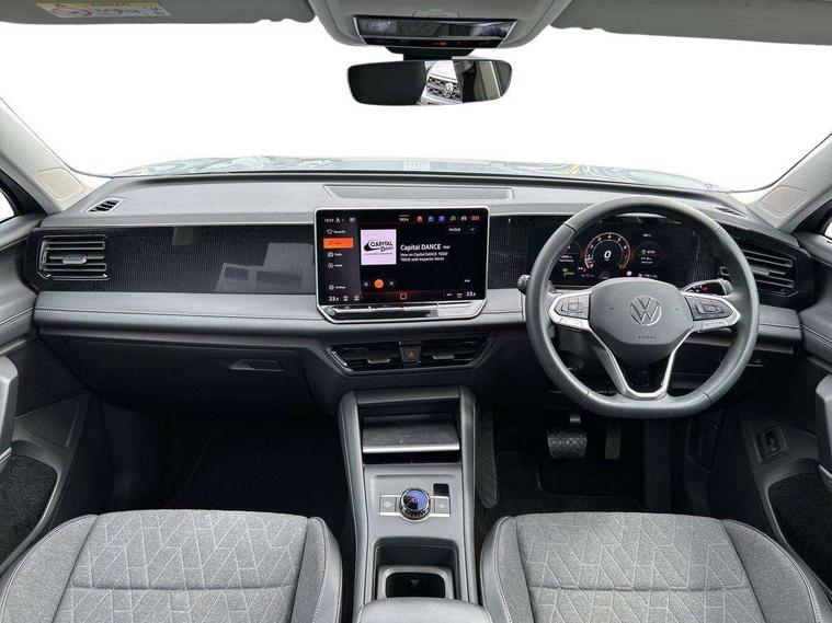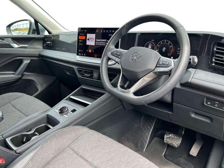 Adaptive cruise control (ACC), Advanced driver attention and drowsiness monitor, Bluetooth mobile phone interface, Digital Cockpit Pro - 10.25" high resolution dash display screen with customisable menus and information, Dynamic road sign display, E-Sim card for online connectivity, eCall emergency call service, Front Assist - Autonomous emergency braking with pedestrian and cyclist monitoring, Lane change system, Side assist, Rear traffic alert and Exit warning system, Lane keeping system Lane Assist, Multifunction front facing camera, Oncoming vehicle braking when turning including swerve support, Park assistance plus with front and rear parking sensors, Power assisted steering with speed sensitive, Start/stop system with regenerative braking, Warning signal and warning light for front and rear seatbelts not fastened, Wireless App-Connect, Front wheel drive, Digital radio reception (DAB), Diversity antenna for FM reception, Ambient lighting with logo projection, Auto dimming interior rear view mirror, Automatic headlight control system, Body coloured bumpers and air intake with chrome trim, Body coloured door handles, Body-coloured exterior mirror housings, Coming/leaving home lighting function, Heat insulating glass in side and rear windows, Heat insulating windshield, Heated rear window, High level 3rd brake light, Illuminated door handle recesses, Illuminated lightline between headlamps, Rain sensor windscreen wipers, Rear fog light on one side, reversing light on both sides, Rear side wing doors, Rear wiper, 12V outlet in center console rear and in luggage compartment, 12V socket in centre console, 3 bench rear seats in 2nd row, Air care climatronic 3 zone air conditioning system with rear air conditioning control panel, Carpet mats, front and rear, Centre console with illuminated storage compartment with sliding cover and two drinks holders, Ceramique headlining, Door and side trim panel in foam film and woven fabric, Front centre armrest, ISOFIX anchors for child seats on outer rear seats and front passenger seat compatible with i-Size, Mechanical rear seat release, Power adjustable lumbar support in front, Rear bench seat, split folding, longitudinally movable and folding with load-through hatch and centre armrest, Safety optimised front head restraints, Single front passenger seat, Sun visors with illuminated vanity mirrors, Three rear head restraints, Variable luggage compartment floor, Comfort package incl. Memory feature for Park assist and Safelock - Tiguan, Design package - Tiguan, 3 point seat belt for centre rear seats, 3 Point seat belts in front with pretensioners, 3 point seatbelts in outer rear with ECE label, Driver and front passenger airbag with front passenger airbag deactivation, Electronic parking brake with auto hold, Front and rear curtain airbags, Front and rear side airbags, Front centre airbag, Front disc brakes, Manual child proof rear door locks, Rear disc brakes, Two tone horn, Warning triangle, Anti theft wheel bolts, Soul instrument panel,