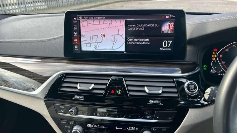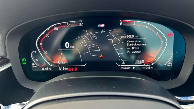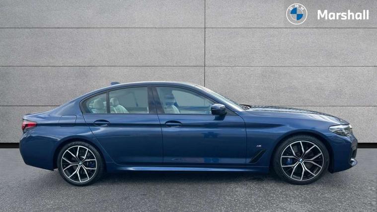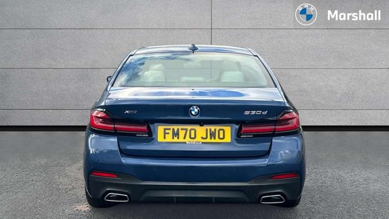 32GB hard disc drive (HDD) memory, Active Guard, BMW ConnectedDrive online services, BMW Live Cockpit Professional sat nav system with 12.3" instrument display and high resolution control display, BMW Teleservices, Brake pad wear indicator, Cruise control with brake assist, Driving experience switch, Electric Power Steering (EPS) with Servotronic, iDrive touch controller with shortcut buttons, Intelligent emergency call, Multifunctional instrument panel, Oil sensor for level and grade, On board computer inc. average speed, fuel consumption, liquid crystal Info display, journey computer, outside temperature display, personal profile, On-board diagnosis - OBD, Powered by Operating System 7.0, Service interval indicator, Speed limiting function, Stop/start button, 48V Mild hybrid technology, Diesel particulate filter, Drive performance control with ECO PRO comfort + sport mode, Engine cover with twin turbo designation, M sport suspension, Steptronic sport transmission with gearshift paddle switches on steering wheel, DAB Digital radio, Favourite buttons, Acoustic glazing, All round anti-corrosion system, Automatically dimming rear view mirror, BMW Individual high gloss shadow line includes exterior mirror frame, window frame surround, B pillar finish, air breather in high gloss black, Body colour door handles, Body coloured bumpers, Door handle illumination, Dynamic brake lights with LED technology, Electric front and rear windows with fingertip open/close + anti-trap facility and comfort closing function, Electrically adjustable and heated exterior mirrors includes integrated direction indicators and automatic parking function, Follow me home headlight function, Heated windscreen washer jets, High gloss black active air stream kidney grille, Interior rear view electrochromatic mirror with automatic anti dazzle function, LED daytime running lights, LED third brake light, M designation on front side panels, left and right in chrome, Rain sensor with automatic headlight activation, Trapezoidal visible exhaust tailpipes, xDrive designation on tailgate, 12V power socket in front and rear, Armrest - front and rear integrated door trim, centre console includes storage compartment, rear centre includes 2 cupholders, Child seat ISOFIX attachment with rear outer seats includes top tether, Cup holders (2 front and 2 rear), Front and rear footwell lights, Front reading lights, Height and length adjustable steering column and activation via lateral lever on the steering column, Illuminated M door sill finishers, Lockable glove compartment with light, M specific pedals, M specific velour floor mats, Multifunction controls for leather steering wheel, Rear headrests, Three spoke sport M leather steering wheel, Ambient lighting pack - 5 Series, Connected package professional - 5 Series, Expanded exterior mirror pack - 5 Series, M Aerodynamic pack - 5 Series, 3x3 point rear seatbelts, Airbags - driver/front passenger, rear and side, first and second row seats head airbags, front passenger seat airbag deactivation + knee airbag, Anti-lock braking system (ABS), Automatic Stability Control (ASC), Brake assist function, Brake energy regeneration, Cornering brake control (CBC), Crash sensor activating central locking release, hazard warning lights, fuel cut off and interior lighting, Deformation zones - front and rear with door reinforcements and bumpers up to 2.5 mph, DSC - Dynamic Stability Control, Dynamic brake control, Dynamic Traction Control - DTC, Electromechanical parking brake with automatic drive away release and auto hold function, Electronic brake force distribution, Engine drag torque control, Front and rear brake discs with interior ventilation, Front head restraints with anti-whiplash, Hill start assist, M Sport brake in high gloss blue painted brake callipers with M designation, Mechanical child proof lock on rear doors, Passive protection for pedestrians, Side impact protection, Three point seat belts for all four seats, Two tone horn, Tyre pressure indicator, Warning triangle and first aid kit, Alarm system (Thatcham 1) with remote control and electronic engine immobiliser, Locking wheel bolts,