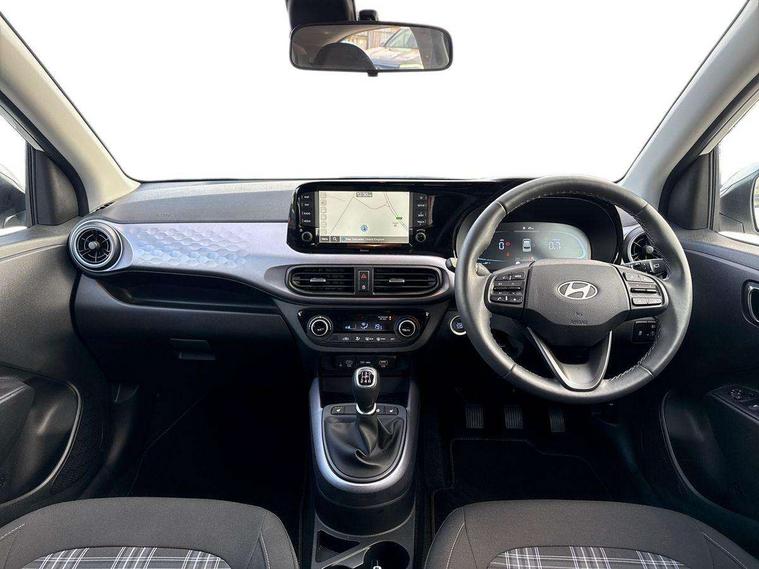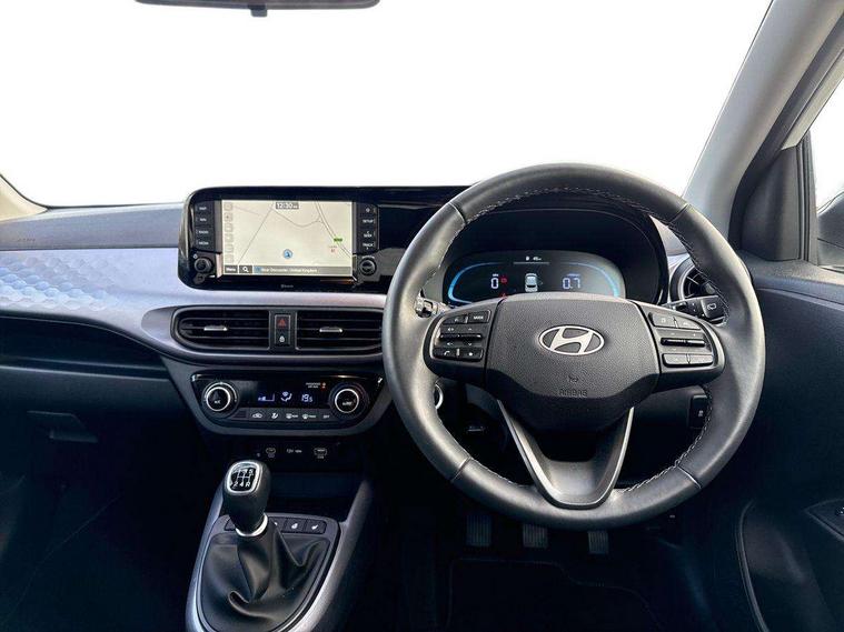 Apple car play/Android Auto, Bluelink mobile remote connectivity, Bluetooth connectivity with voice recognition, Cruise control, Driver attention alert system, eCall emergency call system, Forward Collision-Avoidance Assist (FCA) - Pedestrian/Cyclist, Front USB-C charging and USB-A data, Full-width 4.2" LCD instrument cluster, Intelligent speed limit assist, Lane departure warning system with lane keep assist - LKAS, Lane follow assist, PAS, Rear parking sensors, Rear view camera with guidelines, Roadside assistance, Start/Stop function, Tailgate, Trip computer, Wireless charging pad, 2 front/2 rear speakers, Rear USB-C device charger, Steering wheel audio, phone and cruise controls, 1 speed non intermittent rear windscreen wiper, Black finish on B pillars, Body colour door handles, Body coloured bumpers, Body coloured door mirrors, Electric folding door mirrors, Electric front windows, Electric rear windows, Electrically adjustable and heated door mirrors, Flat metal emblem, Front fog lights, Front grille in glossy black, Front intermittent wipers, Halogen bi-function headlights, Headlights inner with Black Blade design, Heated rear window, High beam assist, Indicator light on door mirrors, LED DRLs diamond mesh design, Privacy glass - Rear windows and tailgate, Rear roof spoiler with integrated LED brake light, Rear side wing doors, 12v power outlet - front, 3 seat bench in 2nd row, 60/40 split folding flat to floor rear seats, Air conditioning, Auto light control, Bottle holders in front/rear doors + front centre console, Cabin and luggage compartment interior lighting, Cloth upholstery, Driver + passenger vanity mirrors, Driver's seat height adjustment, Driver/passenger sunvisors with ticket holders, Floor mats, Front door pockets, Front Head Restraints - Vertical and Horizontal Adjustment, Front LED blue mood lighting, Glove compartment, Heated front seats, Heated steering wheel, Height adjustable steering column, Isofix child seat preparation, Leather multifunction steering wheel, Rear door pockets, Single front passenger seat, Vertical adjustment rear head restraints, 3x3 point rear seatbelts, Airbags - front, front side and curtain airbags, Anti-lock brake system (ABS), Autonomous emergency braking (AEB) with forward collision warning system, Brake assist function, Childproof rear door locks, Electronic stability control, Front and rear seatbelt reminder, Front seatbelt pretensioners, Hill start assist control (HAC), Passenger airbag deactivate switch, Traction control, Tyre pressure monitoring system, Immobiliser, Perimeter alarm, Rear occupant alert, Remote central locking, Second remote key, Smart key with motion sensor, Speed sensitive auto door locking, 16" alloy wheels, Tyre repair kit,