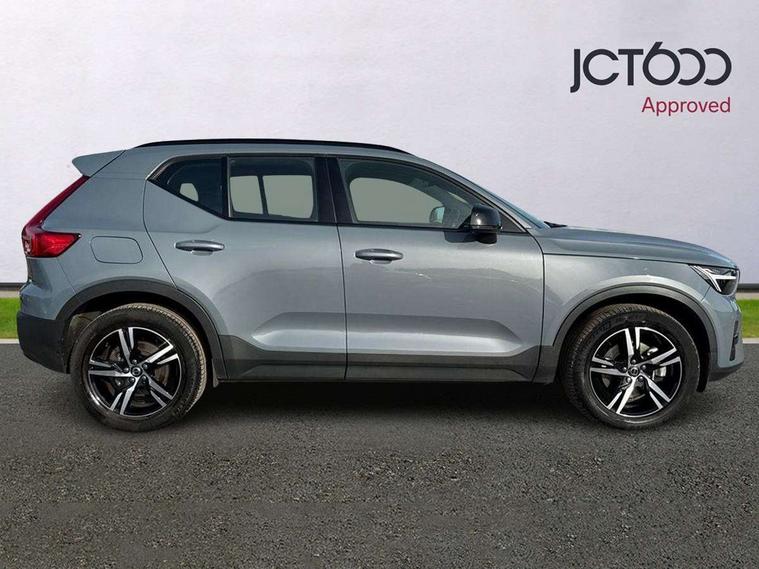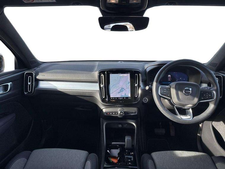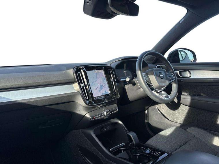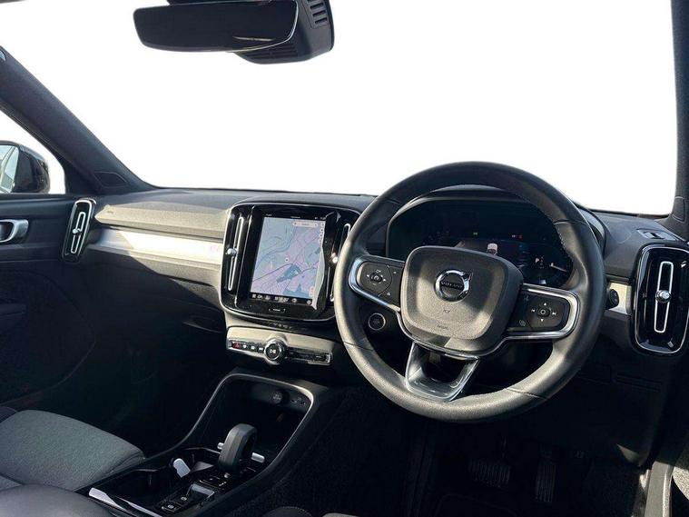 12.3" Progressive Driver Display, 9" centre console portrait touch screen, Adjustable steering wheel force, Bluetooth hands free telephone kit, E-call, eCall emergency call system, Front park assist, Google automatic services - Nav with google maps, apple carplay/android auto, voice recognition with google assistant, Hands free power tailgate, Lane keep assist with driver alert control, Oncoming Lane Mitigation, Rear park assist, Speed limiter, Speed sensitive steering, Wireless/Inductive Mobile Phone Charging, Dynamic chassis, DAB Digital radio, High performance sound, 8 speakers/250W, front USB and 2 rear type C USB, Steering wheel mounted remote controls, Adaptive brake lights with high level LED brake lights, Auto dimming interior mirror, Automatic headlamp levelling, Automatic LED Headlights + Active high beam incorporating daytime running lights, Front aluminium tread plates, Front and rear electric windows, High gloss black front and rear skid plate, High gloss black mesh front grille with high gloss black surround, High gloss black window trim, Home safe and approach lighting, Integrated roof rails in high gloss black, LED front fog lights, Puddle lights, Rain sensor with automatic windscreen wiper activation, Rear side wing doors, Rear wiper, Roof antenna, Roof spoiler, Visible VIN plate, 12V socket in front tunnel console and luggage compartment, 2-Zone electronic climate control with CleanZone air quality system and pollen filter, 3 seat bench in 2nd row, 3 Spoke tailored steering wheel with chrome trim, 60/40 versatile split folding rear seat, A-pillar parking ticket holder, Ambient front door and instrumental panel lighting, Centre console cupholders and storage, Flexible load floor and grocery bag holder, Floor mats, Front door pocket and front cupholder illumination, Front footwell illumination, Front headrests, Front reading light and theatre lighting, Front seat cushion extensions, Front tunnel pocket, Glovebox bag hook, Height adjustable passenger seat, Height/reach adjustable steering column, High gloss centre tunnel deco, Illuminated glovebox, Illuminated luggage compartment, Illuminated tailgate, Illuminated vanity mirrors, Integrated waste bin, Isofix attachments on outer rear seats, Load protection net, Multi directional lumbar support, Power driver seat with memory + exterior mirrors memory, Rear armrest / integral cup holders / storage tray, Rear headrests, Rear reading and courtesy lights, Single front passenger seat, Underfloor cargo storage, Climate pack - XC40, 3x3 point rear seatbelts, City safety with steering support with Pedestrian + cyclist + front collision warning with full auto brake and rear auto brake, Drivers knee airbag, Dual stage driver/passenger airbags, Electronic parking brake with auto hold, First aid kit, Front and outer rear seatbelt reminder and pretensioners, Front seats SIPS airbags, Hill descent control, Hill start assist, Inflatable curtain, Passenger airbag cut-off device, Power child locks on rear doors, Road sign information display, Run off Road Mitigation, Run off Road Protection, SIPS (Side Impact Protection System), Slippery road and hazard light alert, Stability and Traction Control with Spin control, Engine Drag Control and Corner Traction Control, Tyre pressure monitoring system, Vehicle deceleration control with Anti-lock Brake System, Electronic Brake Distribution and Emergency Brake Assist, Warning triangle, WHIPS whiplash protection system - front, Anti-theft alarm including immobiliser/volume sensor + level sensor, Care key with user defined top speed, Key integrated remote control central locking + fuel flap with deadlocking system and auto open/close power windows, Keyless drive includes keyless entry and keyless start, Locking wheel nuts, Private locking for tailgate,